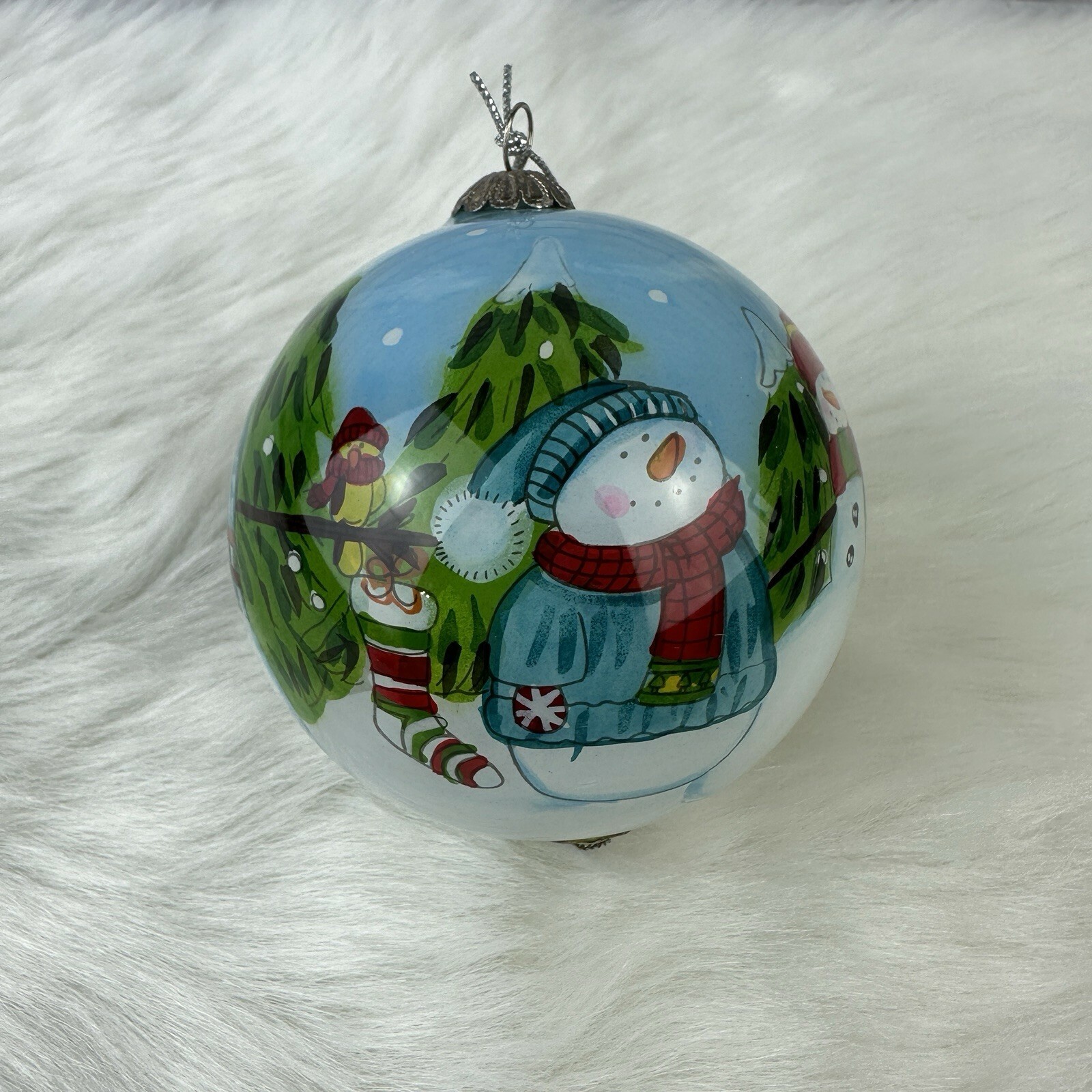 Pier 1 Li Bien 2013 Snowman Glass Christmas Ornament 3? Blue And Red