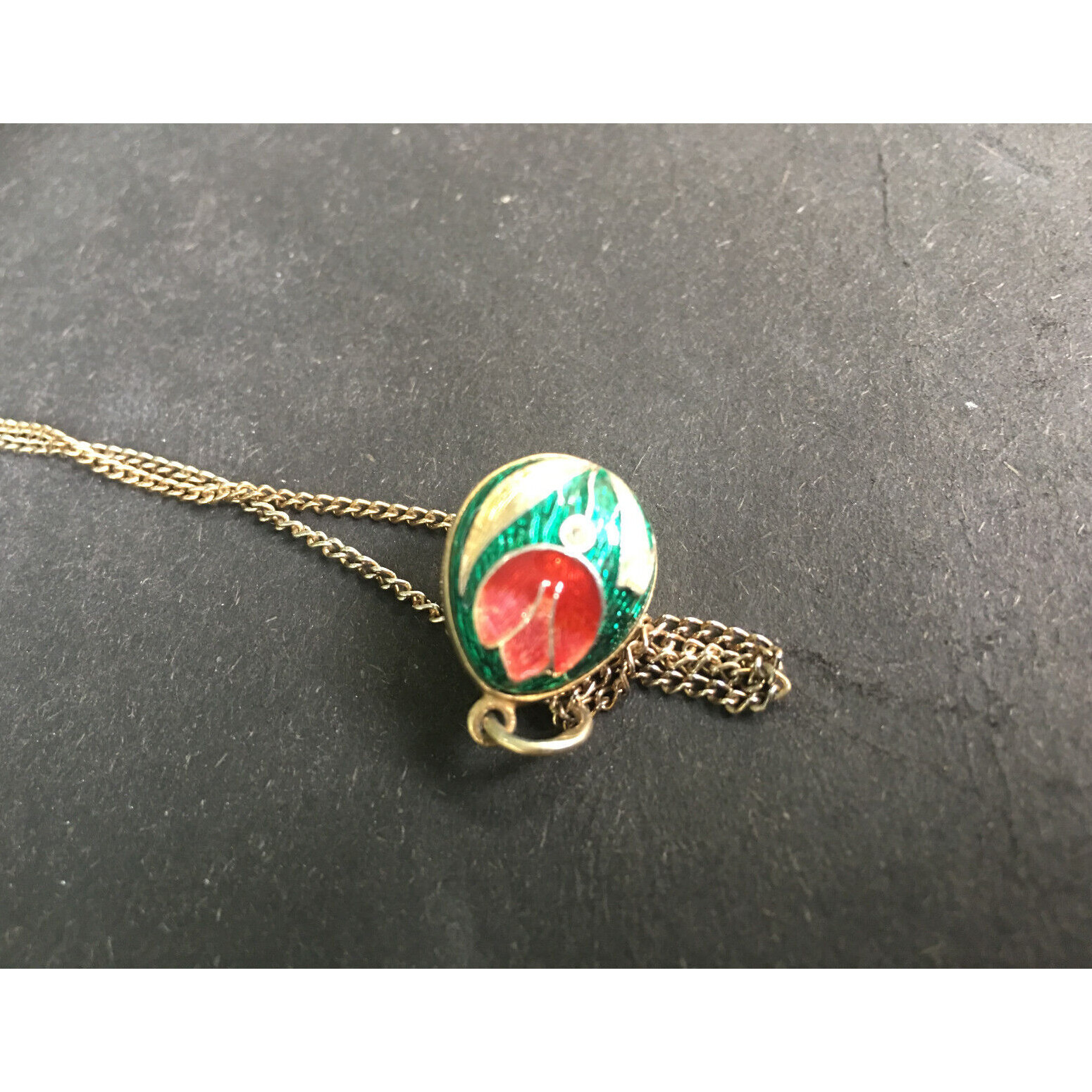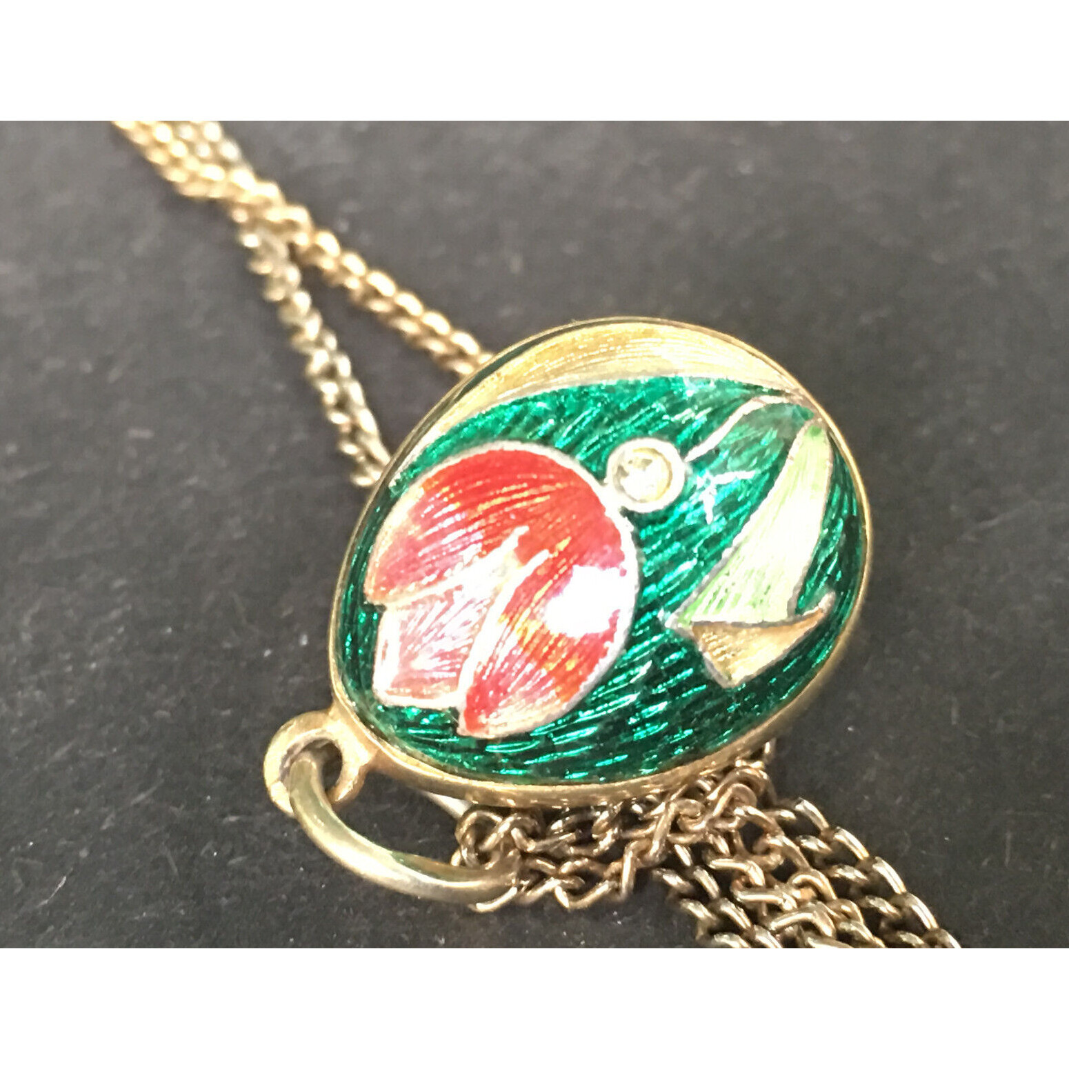 STERLING SILVER VERMEIL GUILLOCHE ENAMEL EGG WITH TULIPS PENDANT ON CHAIN SKY