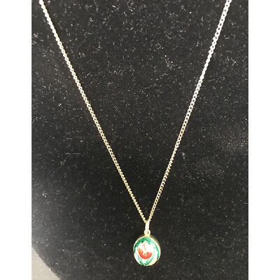 SIZE: APPROX.1" LONG INCLUDING BALEMARKED: 925,V.S.NO DAMAGE TO THE ENAMEL,THE SPOTS ON THE PICTURES ARE DUE TO MY PHOTOGRAPHY SKILLS.THE CHAIN IS STAINLESS STEELPA residents add 7% (6% PA + 1% county) sales tax.