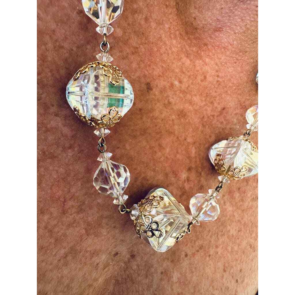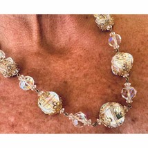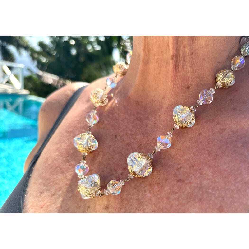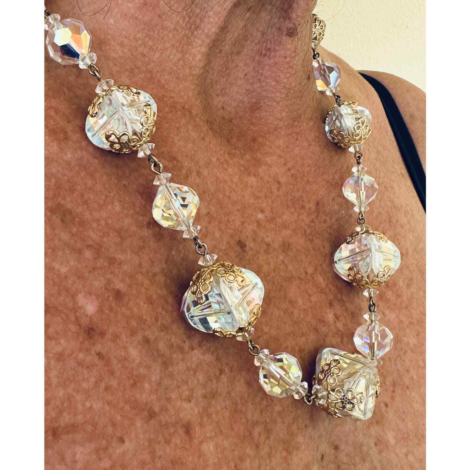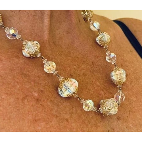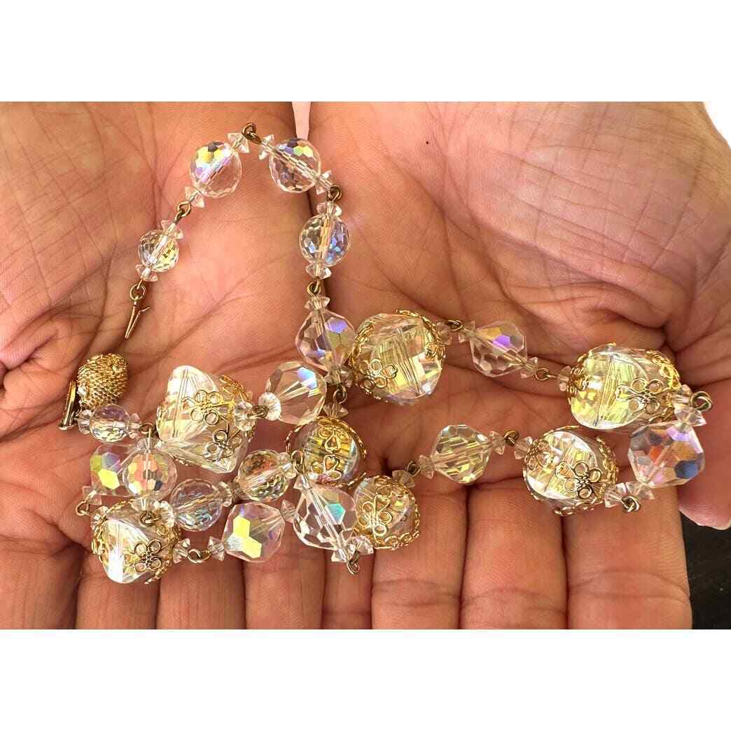 Stunning 50s VTG Vendome Graduated Crystal Beaded Necklace Gold Filigree Wrapped