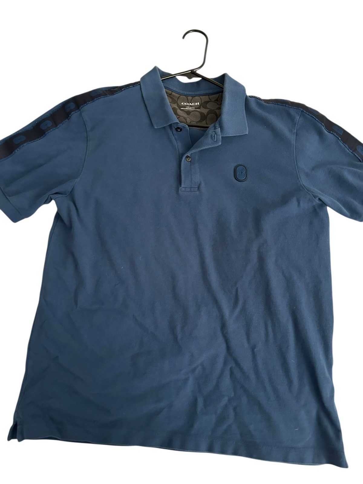 COACH Men’s Signature Polo Size Large Blue Tape Logo