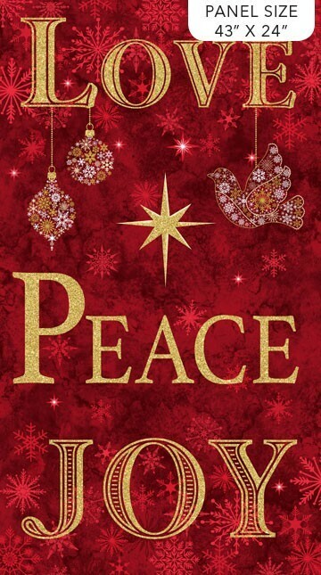 24" X 44" Panel Christmas Joy Stonehenge Love Peace Joy Holidays Red Cotton Fabric Panel (24771M-26)