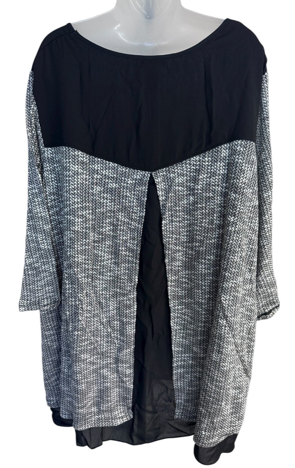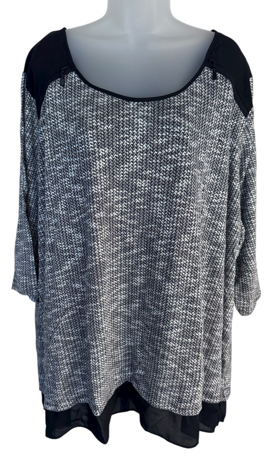 Catherines Black White Gray 26/28 Hi Low Short Sleeve Blouse NWOT sz 3X