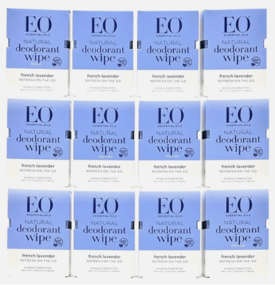 EO Natural Deodorant Wipes French Lavender 12 Packs (72 Towelettes Total)