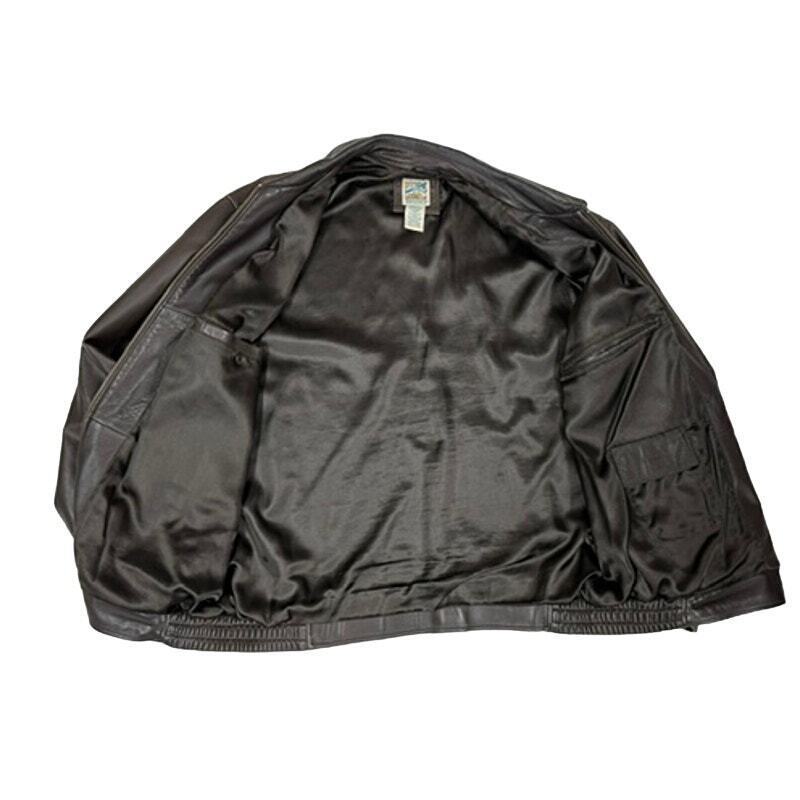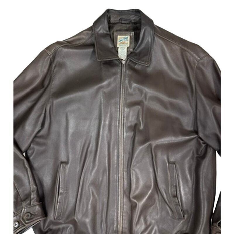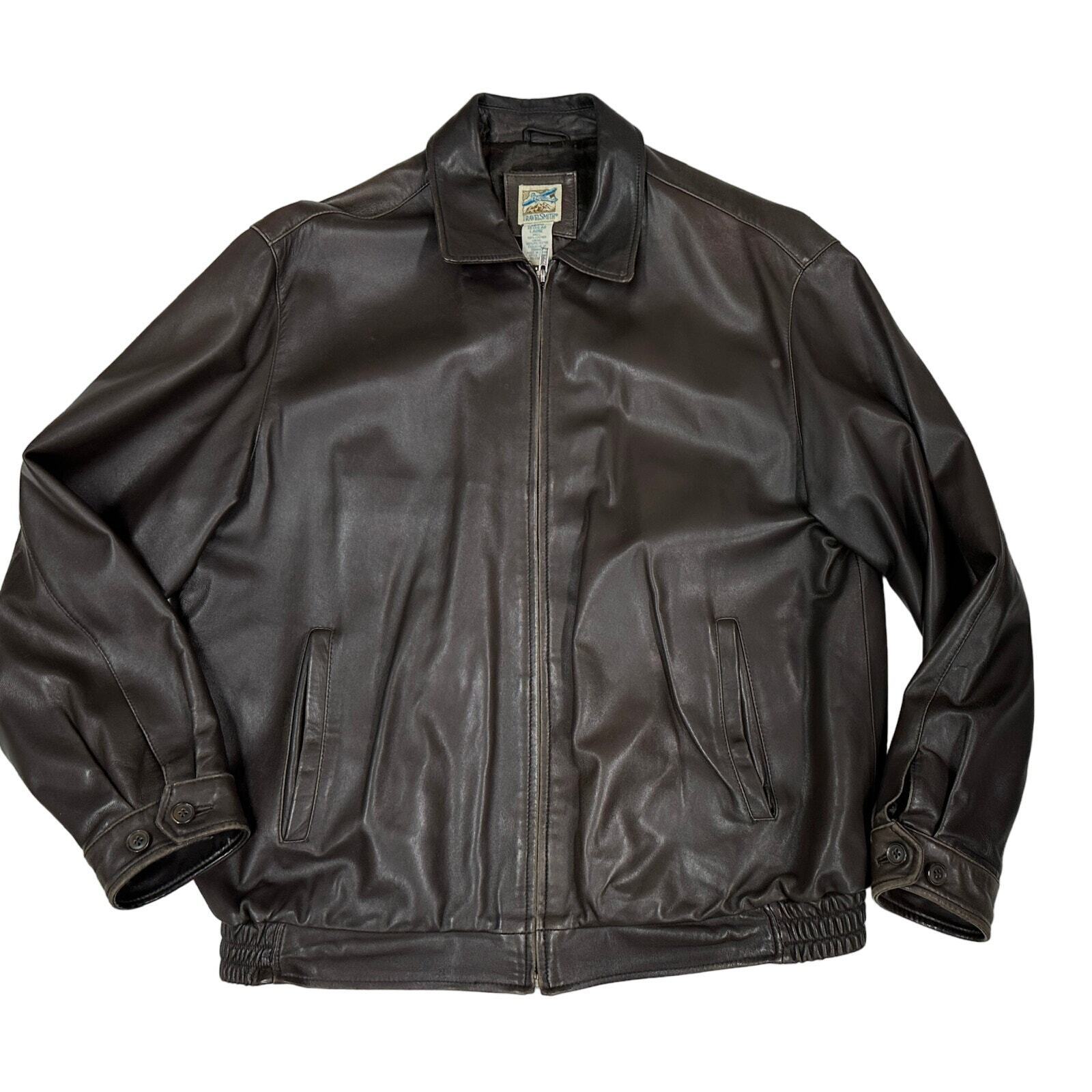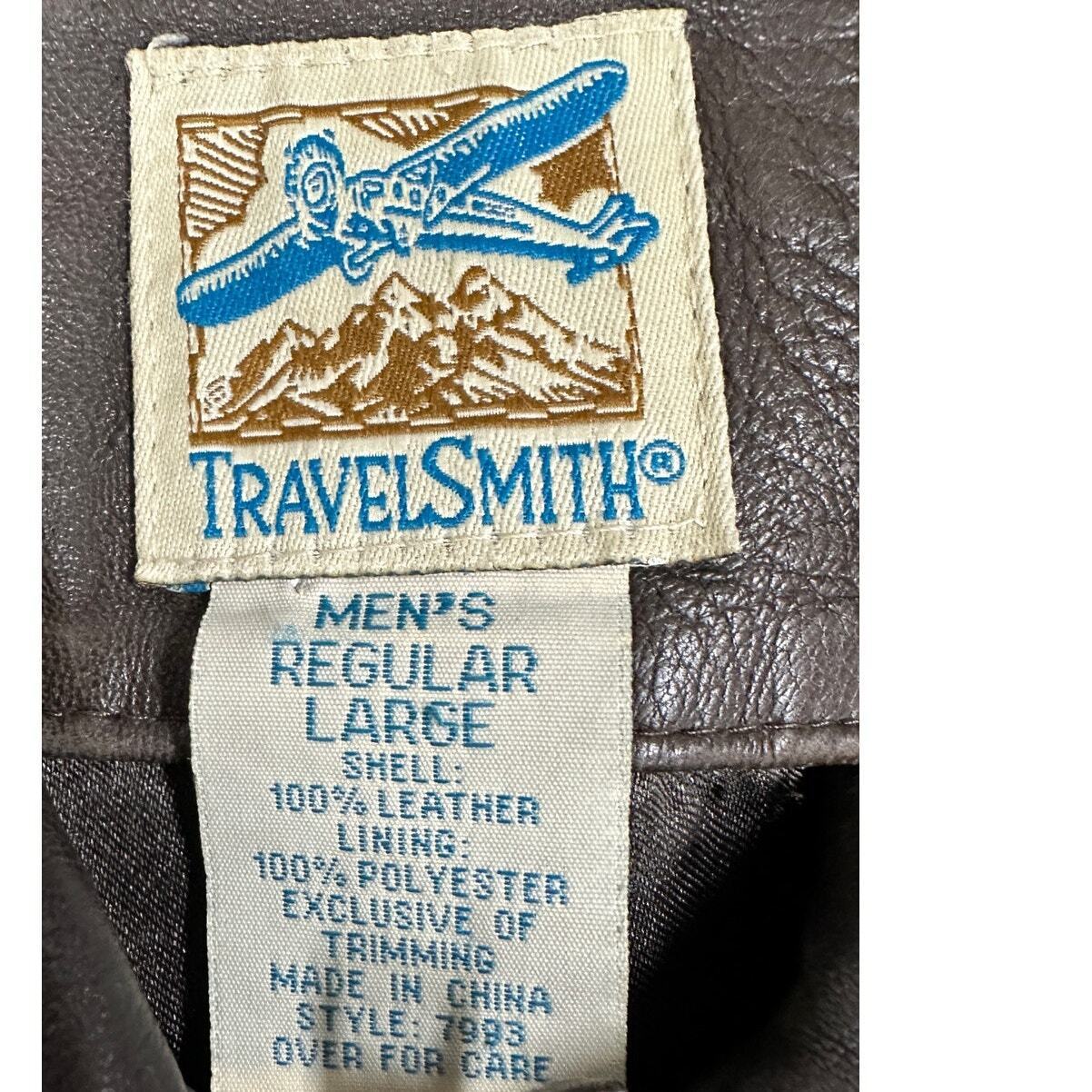 Vintage TravelSmith, Regular Large Brown Leather Bomber Jacket, Poly Liner, Metal YKK Pull,