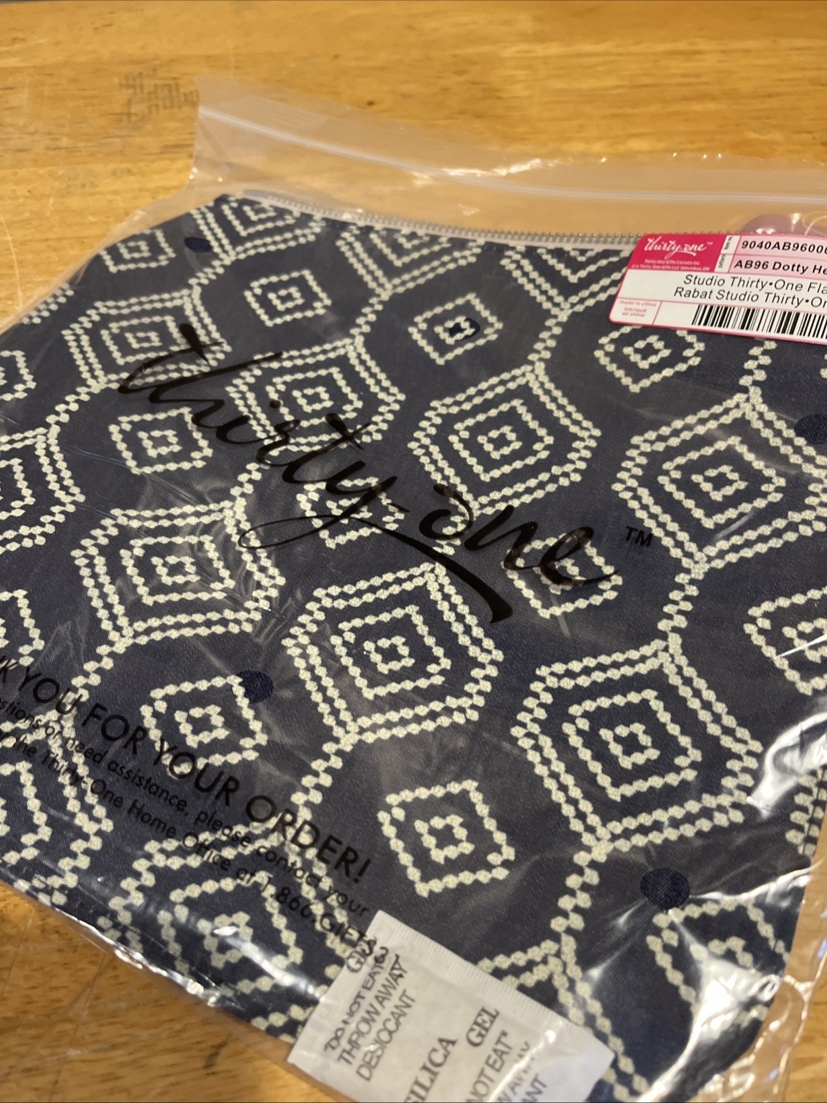 Thirty One 31 Bags Studio One Flap AB96 Dotty Hexagon Blue Cream Flap Zip New