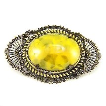 Vintage RETRO Brooch Large Art Deco Filigree Mustard Yellow Stone 1920S