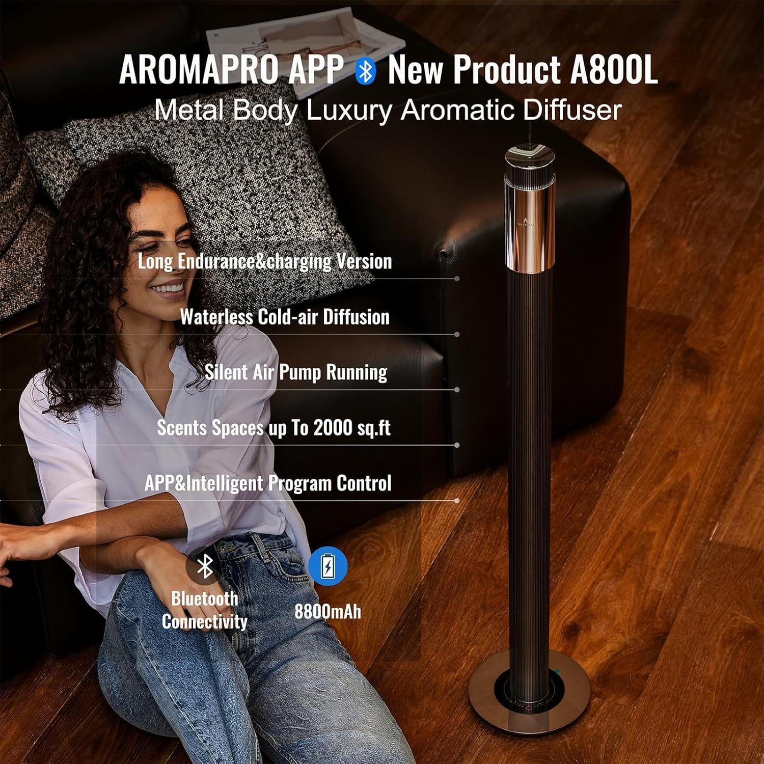 ?Mobile App Control , Wide Area Fragrance Diffusion?Simply download our AROMA PRO app and connect your phone to the diffuser via Bluetooth to embark on your smart aromatherapy journey. This programmable app allows you to easily adjust the working and intermittent times throughout the day to meet your varying fragrance needs. Additionally, the soundproofed booster pump operates quietly, and you can set a dedicated schedule to avoid wasting precious essential oils during unnecessary times. With a fragrance diffusion area of up to 2,000 square feet, it creates a fine mist from a small amount of essential oil, saving every drop of your valuable essence compared to ordinary machines.