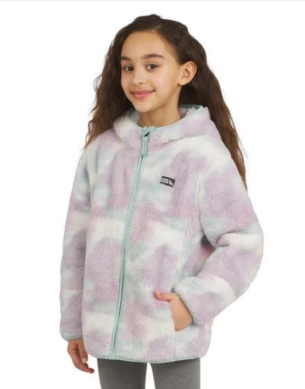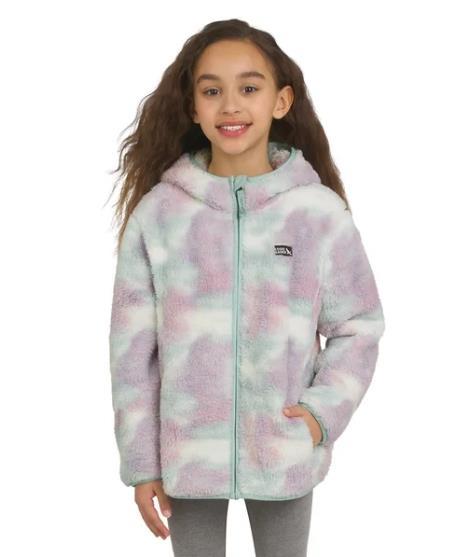 Eddie Bauer Boys Girls Jacket Light Blue Multicolor Tie-Dye Hood Full-Zip Plush