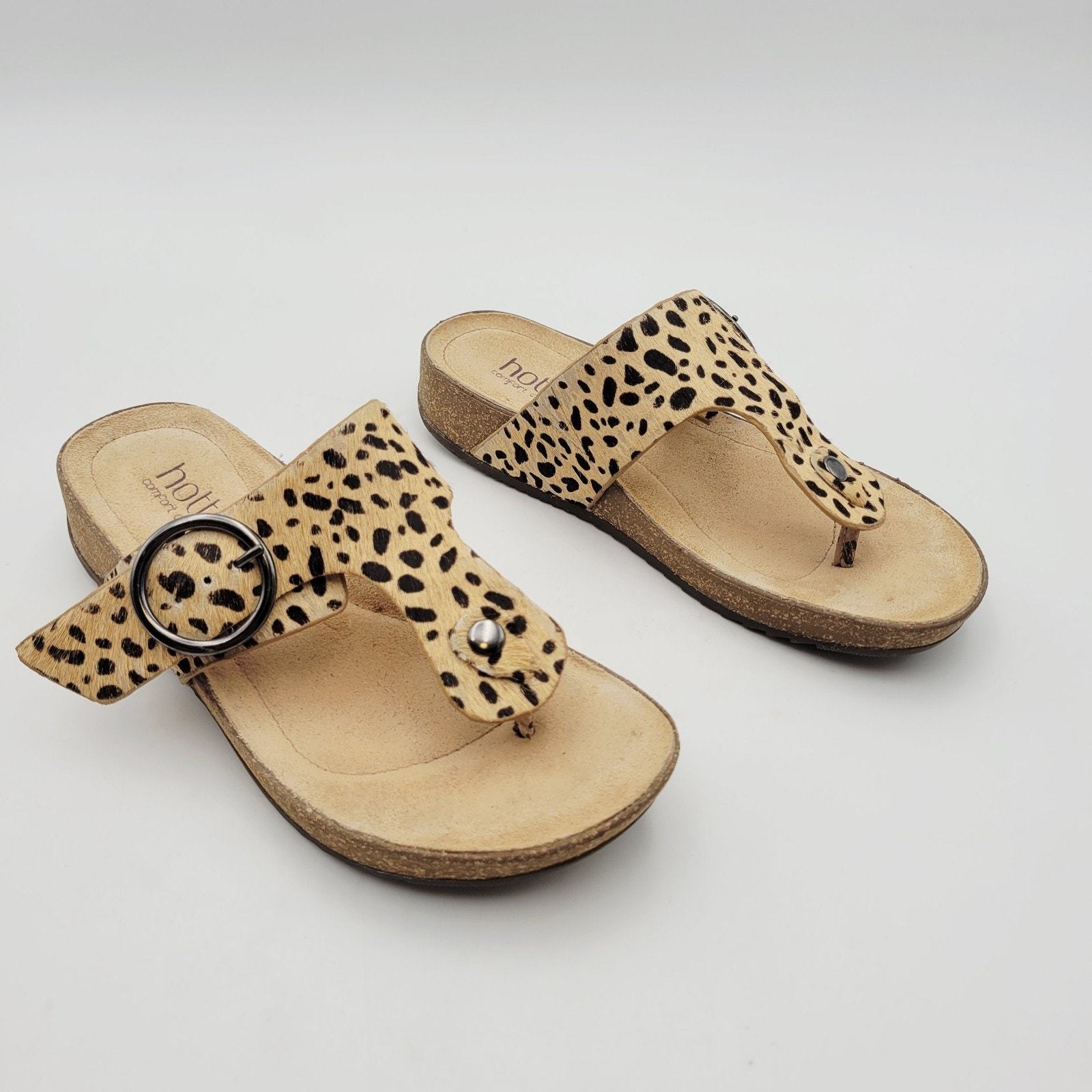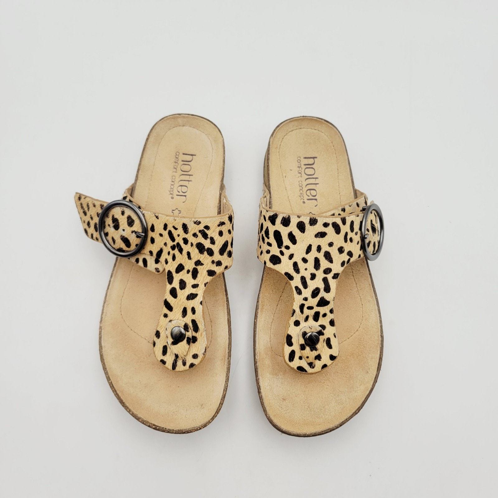 Hotter Resort Toe Post Wedge Sandals Size 5 EU 36 Cheetah Print