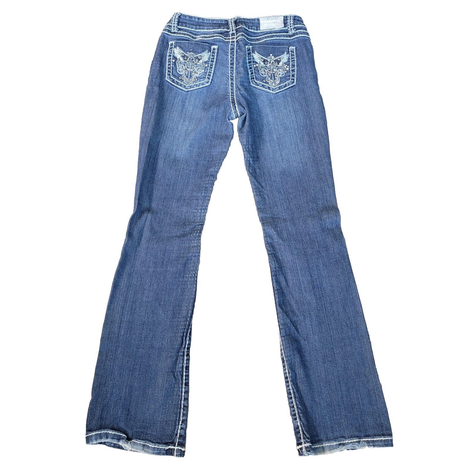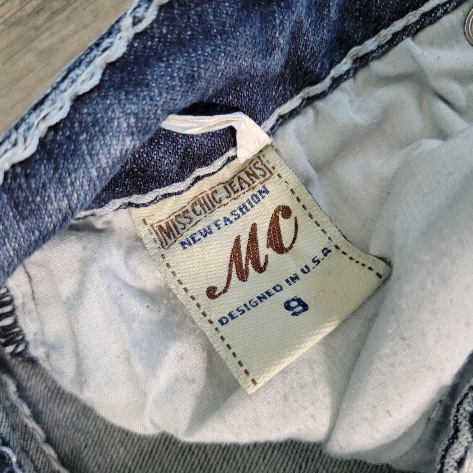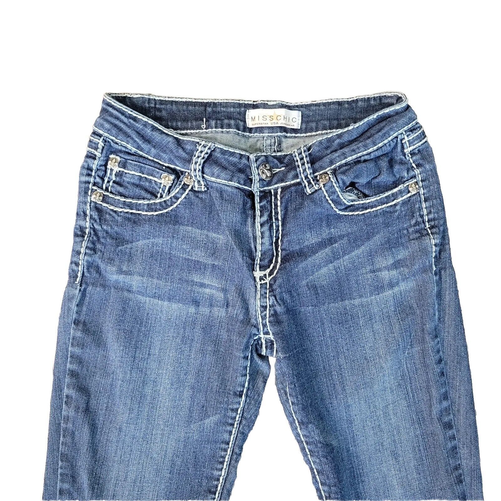 MISS CHIC USA Denim Women's Crystals Rhinestones Low Rise Boot Cut Jeans Size 9