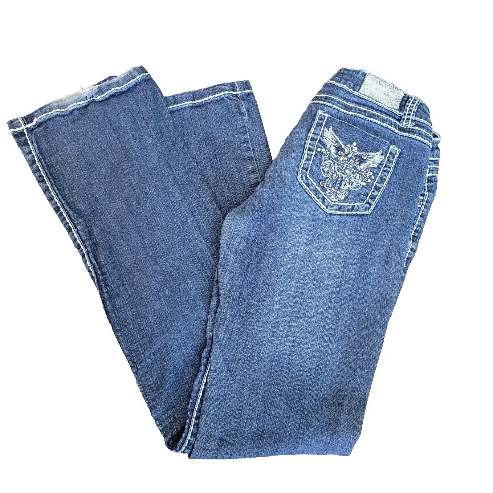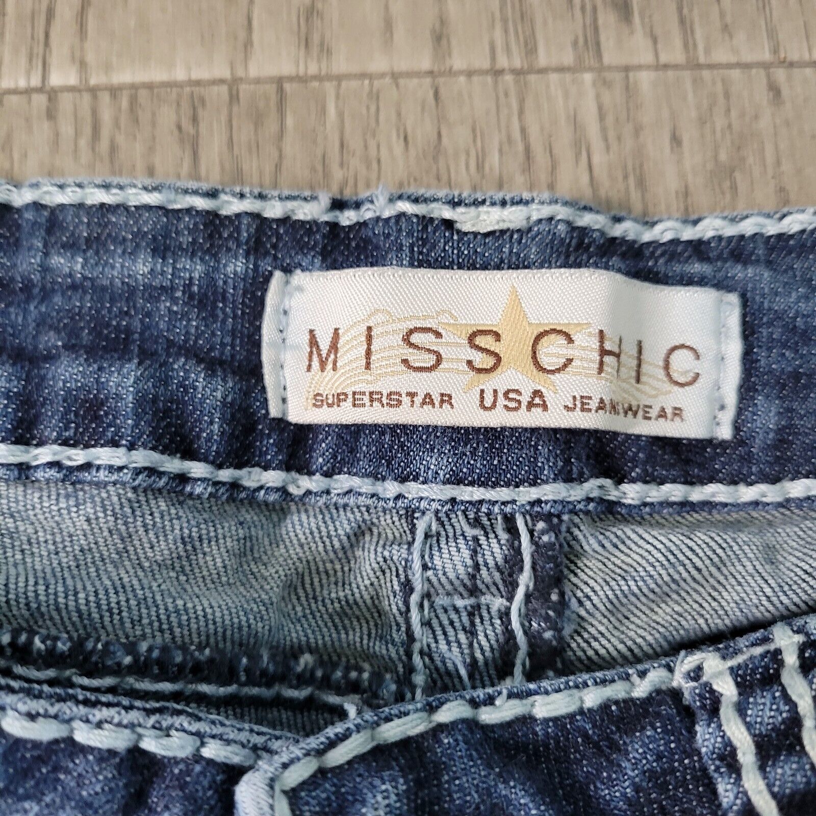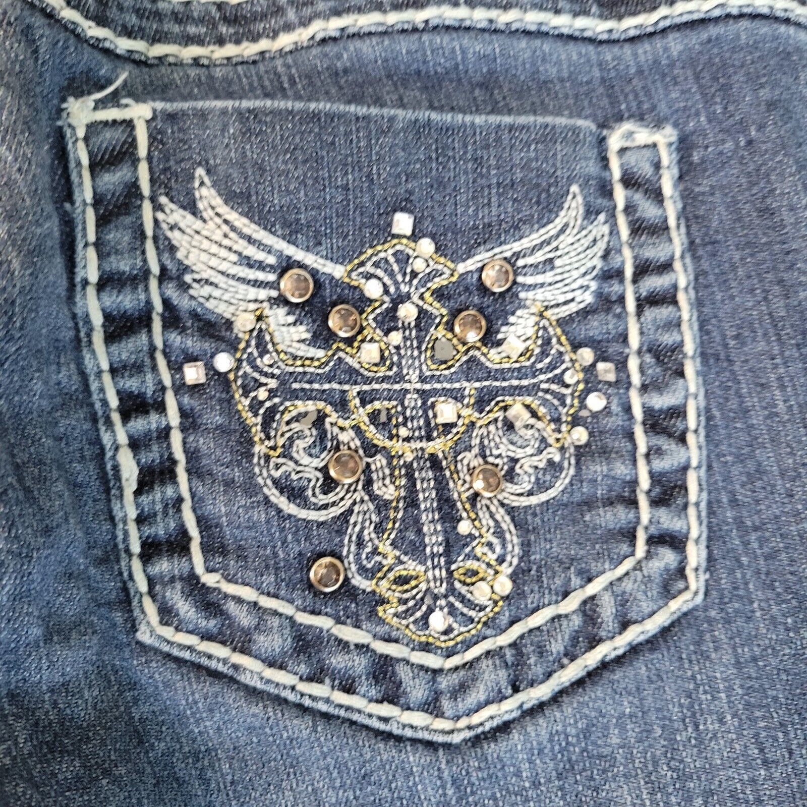 MISS CHIC USA Denim Women's Crystals Rhinestones Low Rise Boot Cut Jeans Size 9