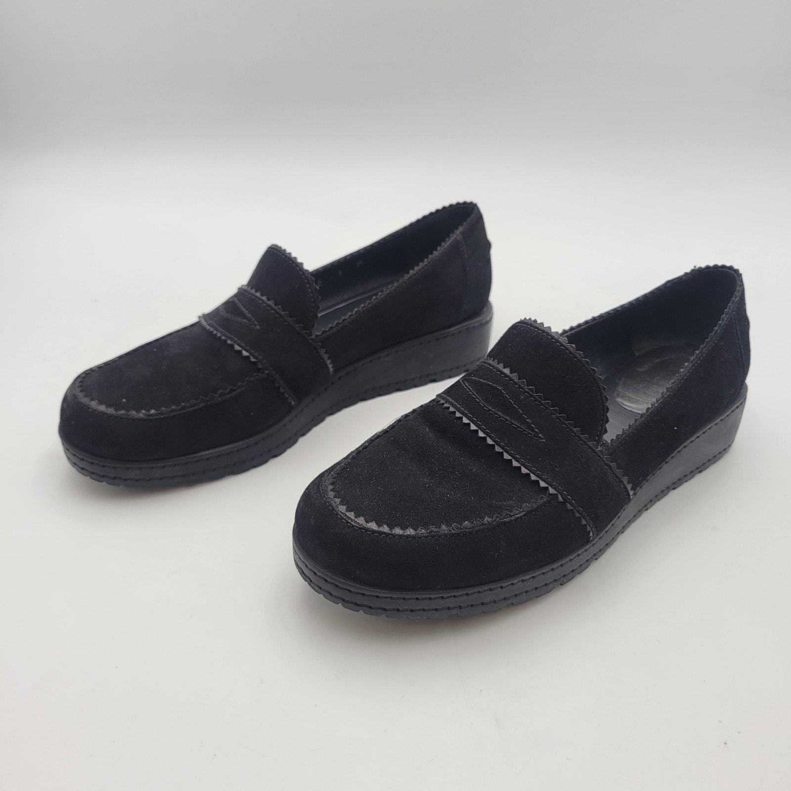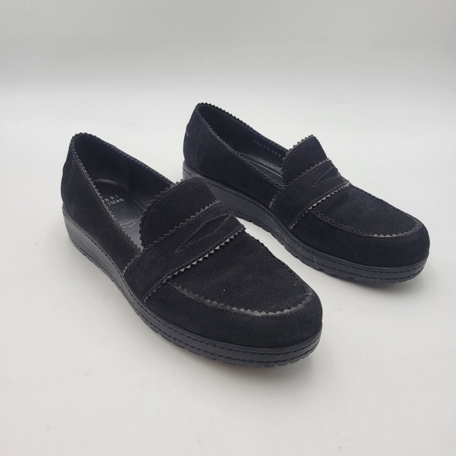 Stuart Weitzman Black Suede Platform Loafer Size 7 M Spain