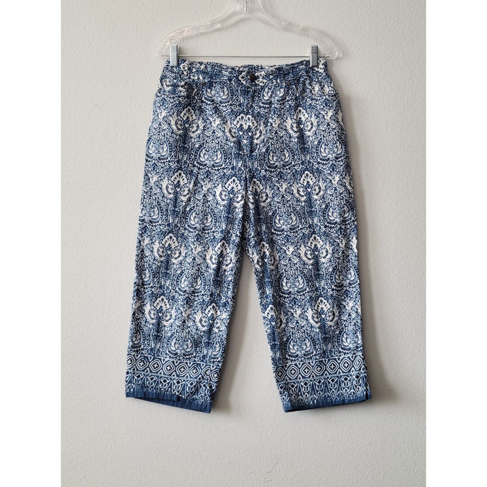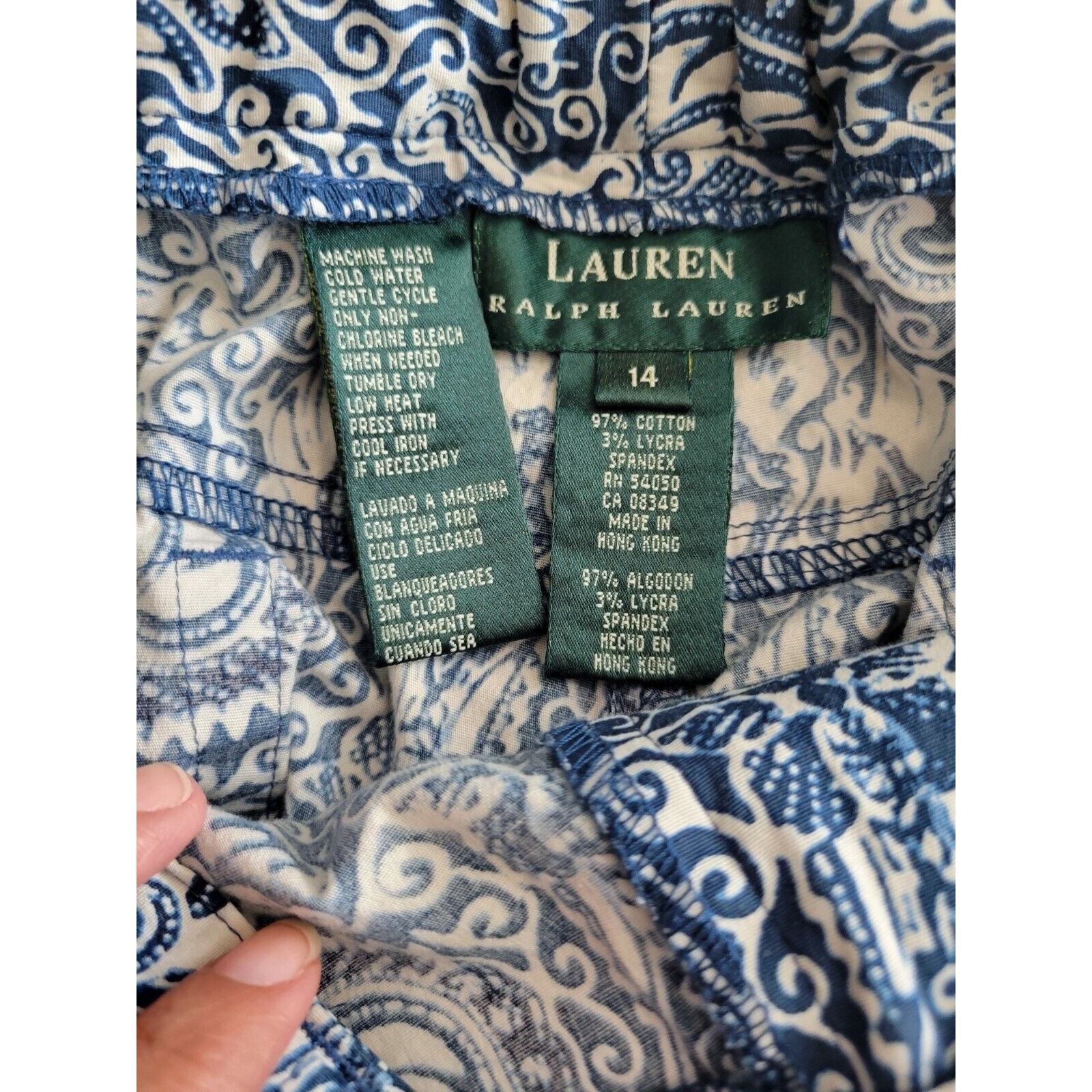 Lauren Ralph Lauren Womens Capri Pants Sz 14 Paisley Floral Blue Stretch Light