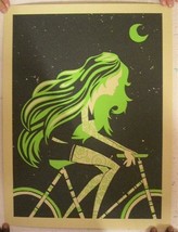 Vogli Poster Firmado Serigrafía Verde Chicas Encendido Bicicleta Con Luna