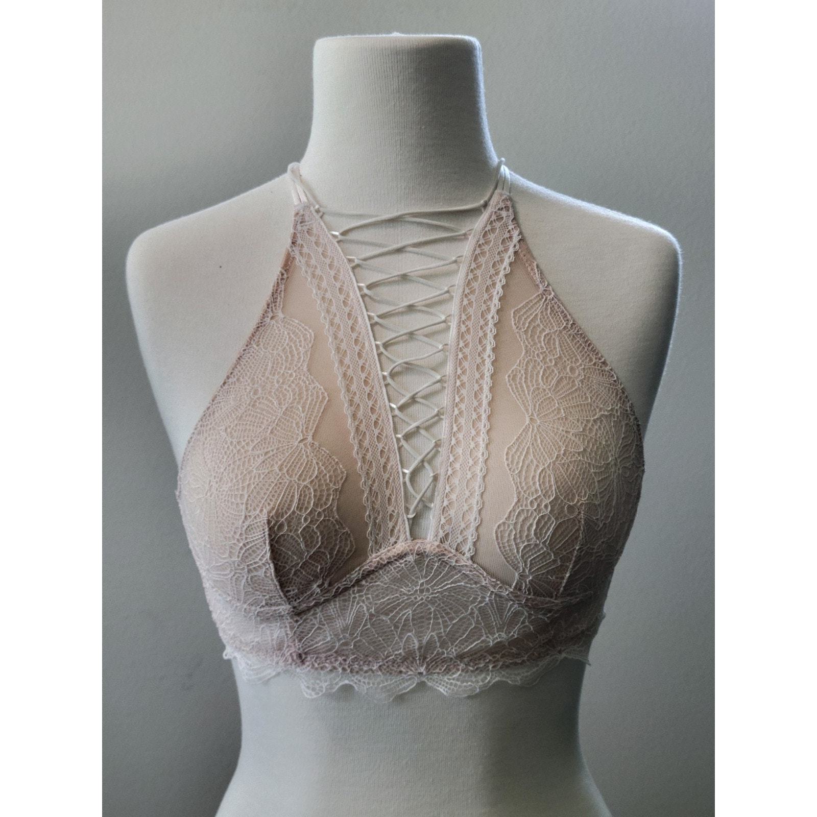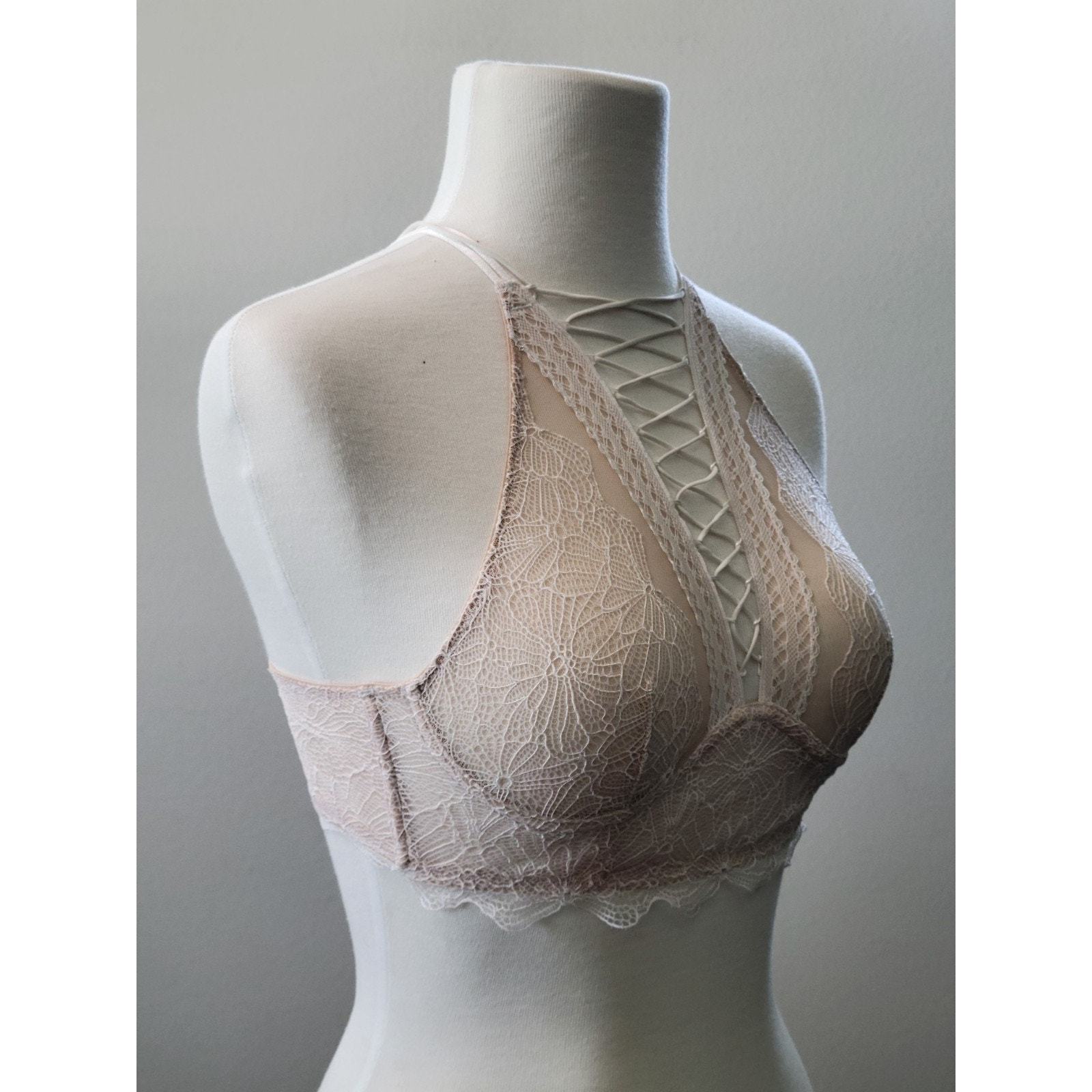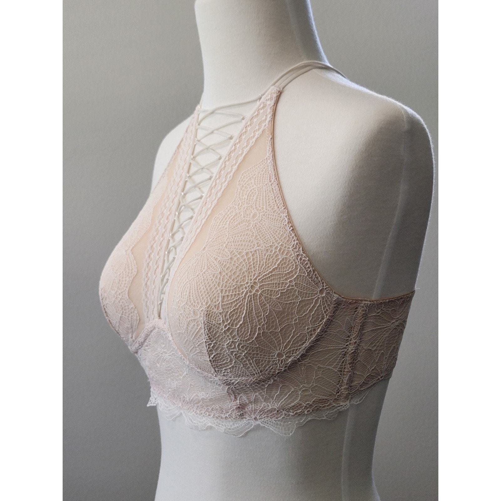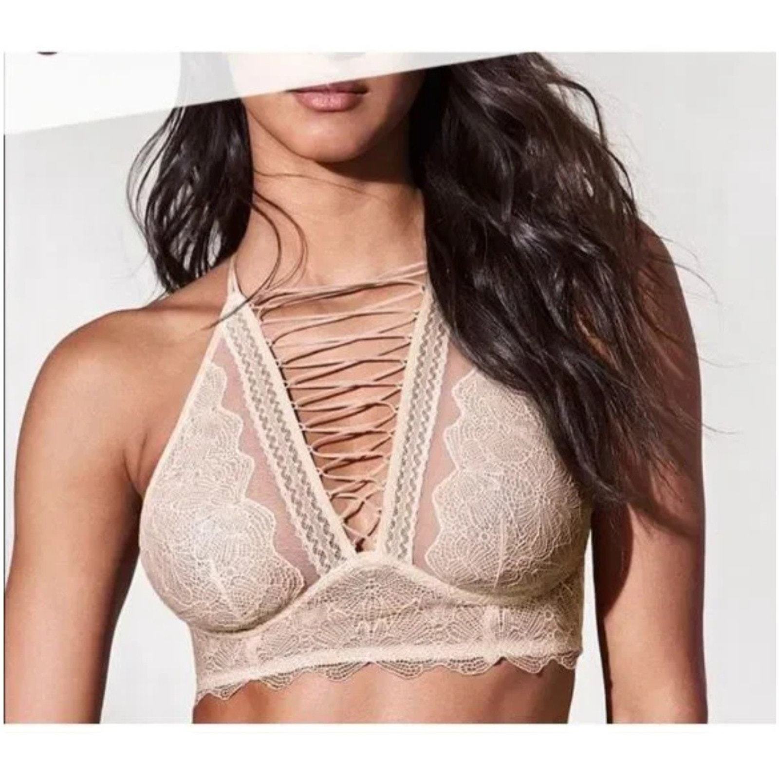Victoria’s Secret Very Sexy High Neck Unlined Lace Bralette Bra Pink Sz XS