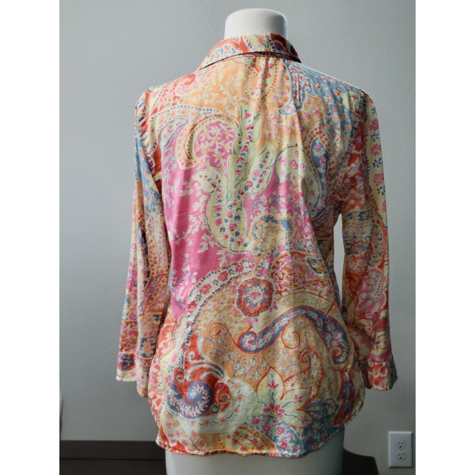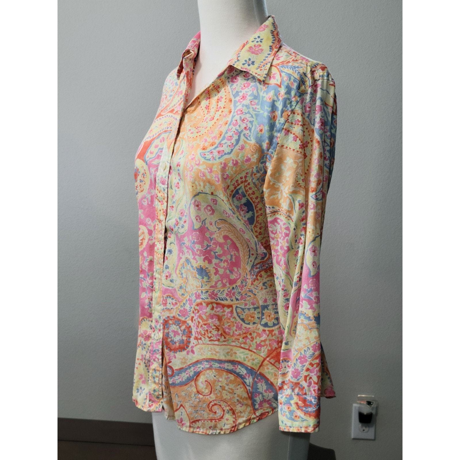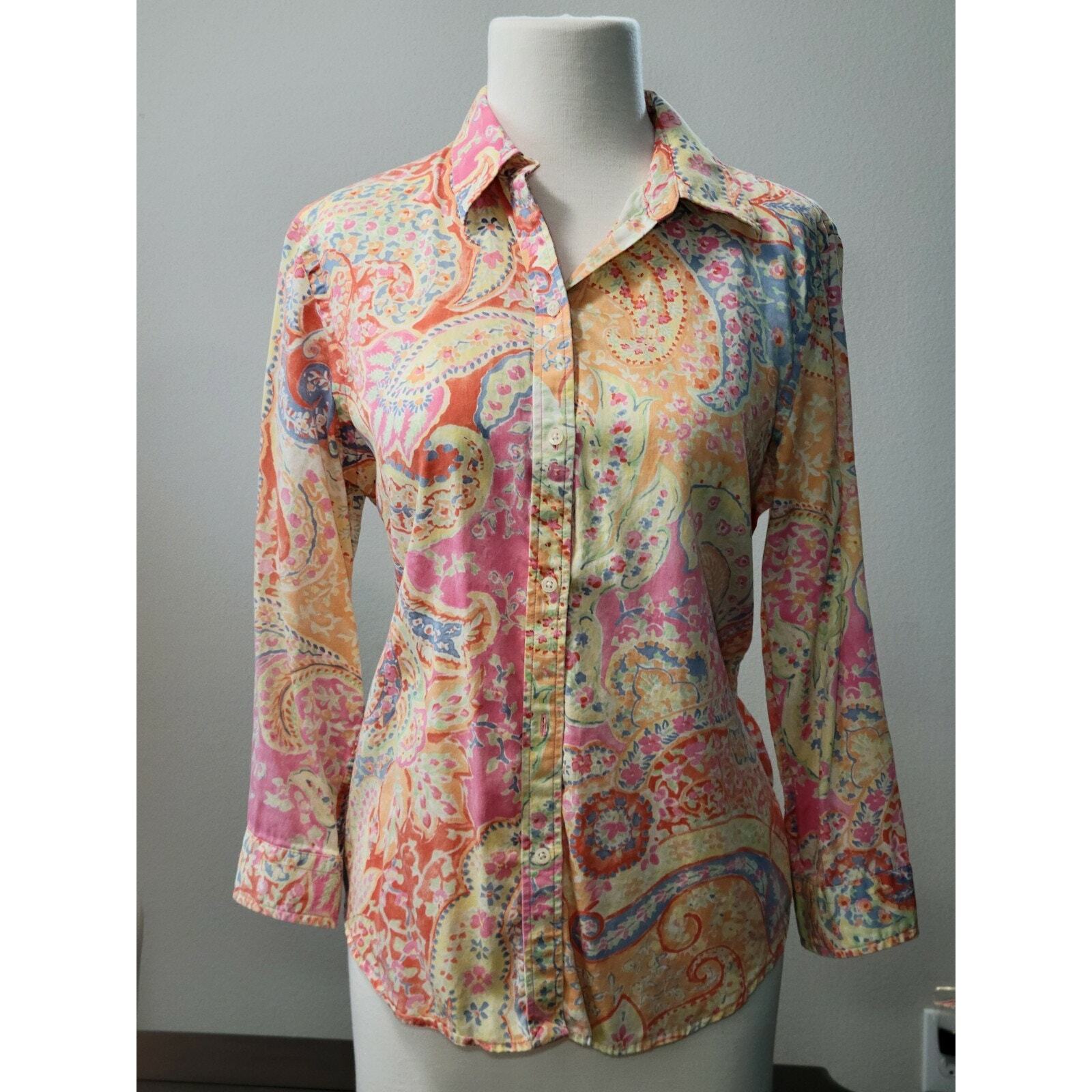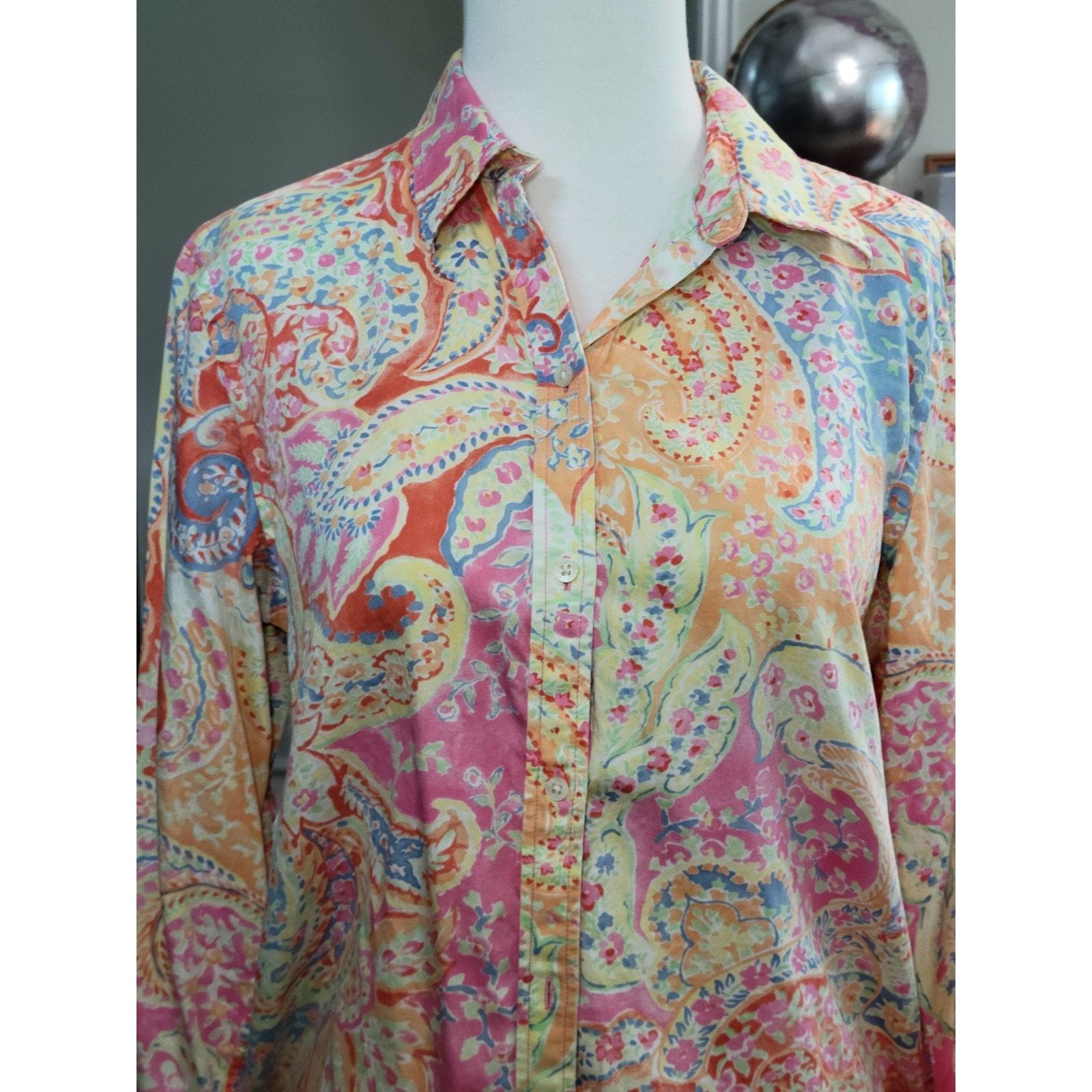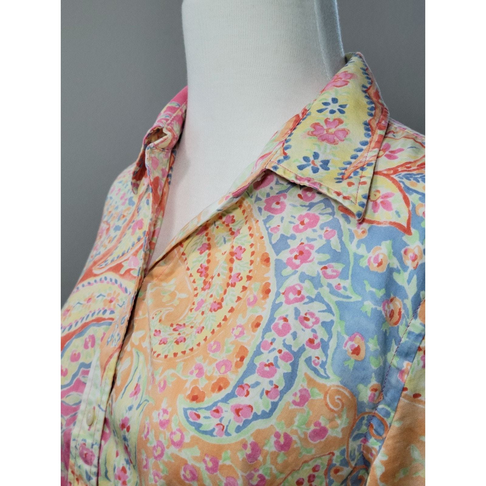 Lauren Ralph Lauren Multi Color Pastel Paisley Print Boho Button Up Size Medium