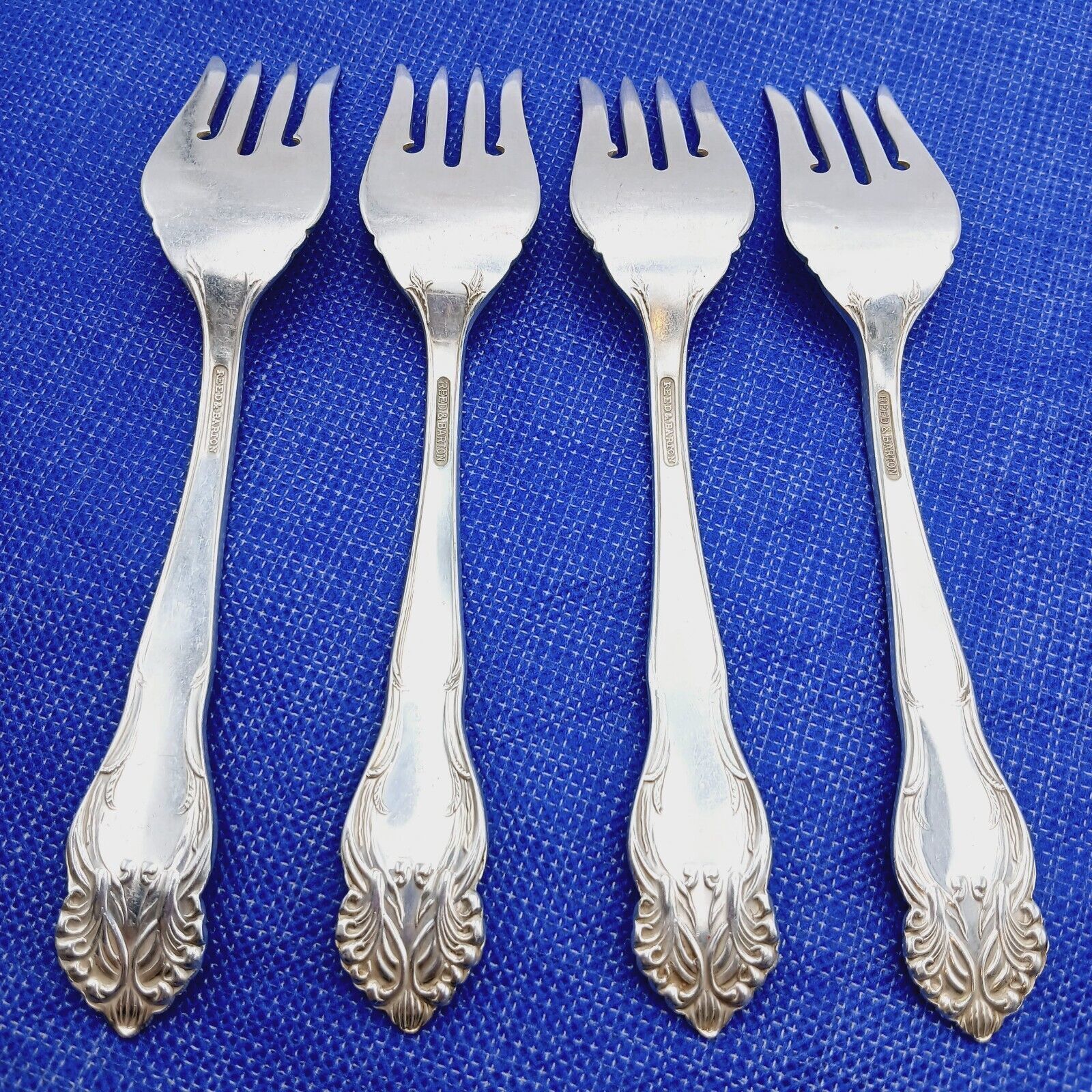 Reed Barton TIGER LILY Salad Dessert Forks 1945 Art Nouveau Silverplate 4Pc Set
