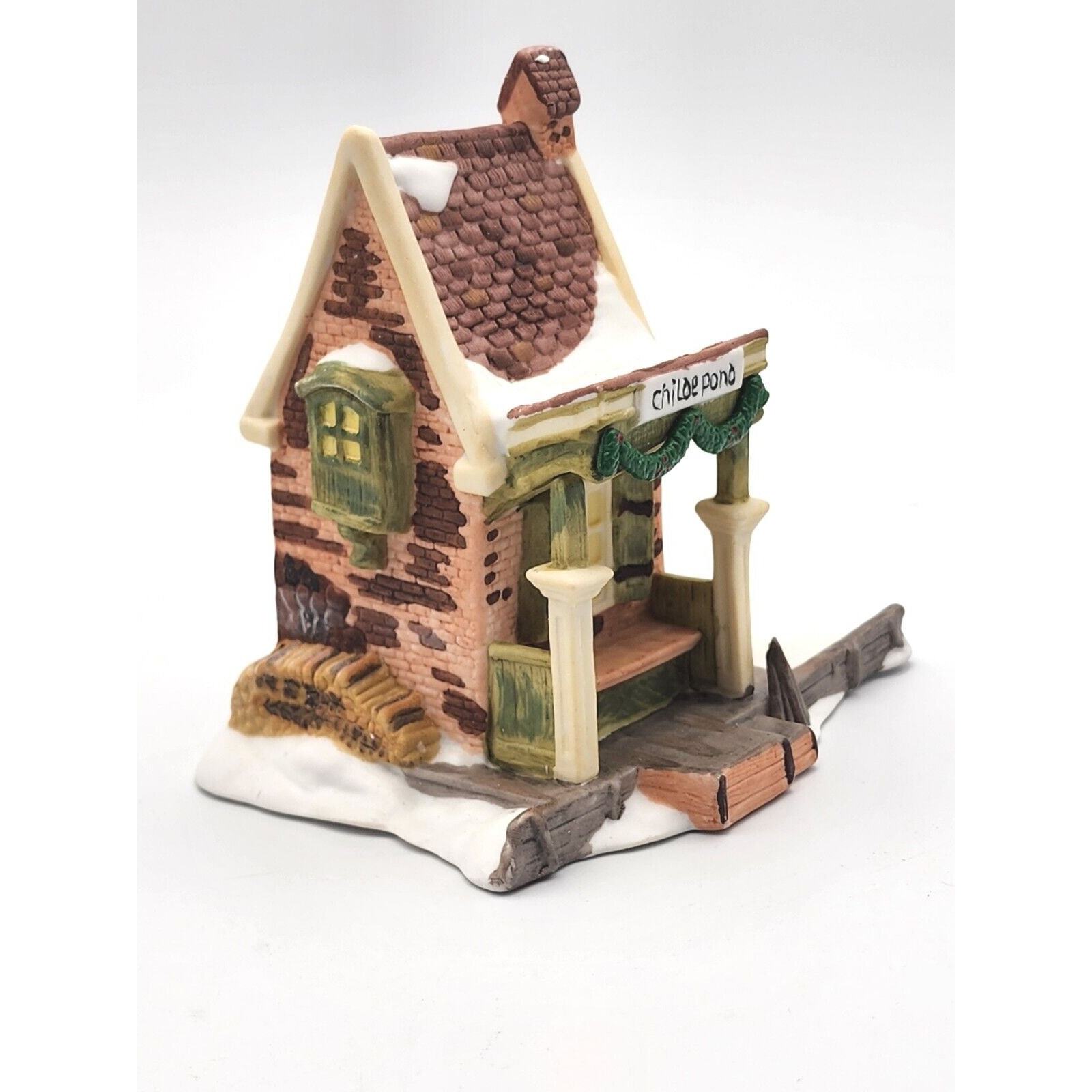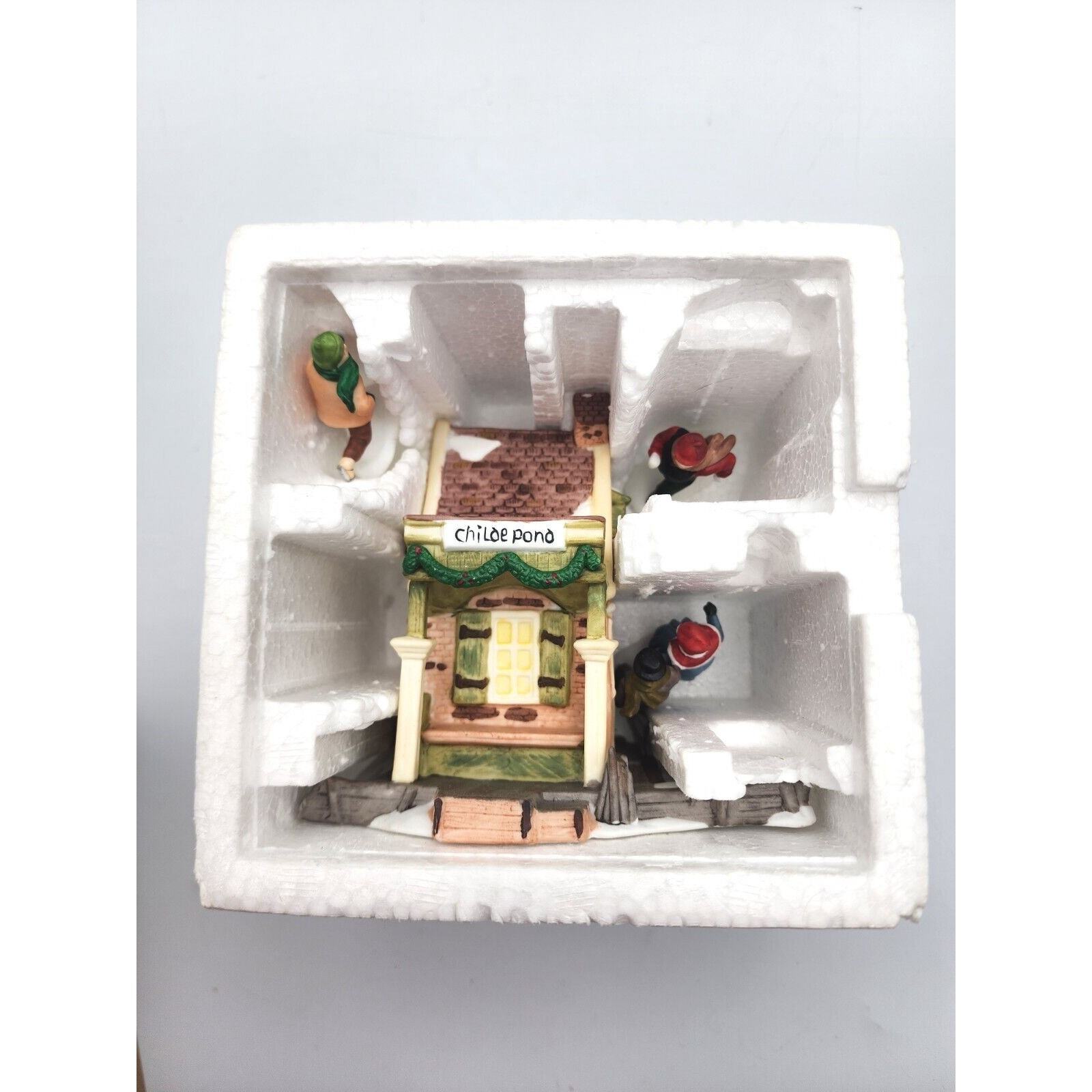 This Department 56 Christmas Village piece features a charming scene of skaters on Childe Pond, perfect for adding to any holiday decor. The hand-painted ceramic and porcelain piece was originally manufactured in 1988 and comes in its original boxed packaging. The multicolor design of the village adds a festive touch to any room and is sure to delight both teens and adults alike.