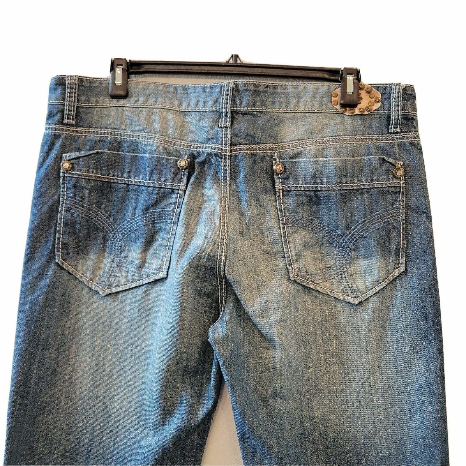 Do Denim Distressed Blue Jeans Tag 38 x 32 Medium Wash Straight Leg