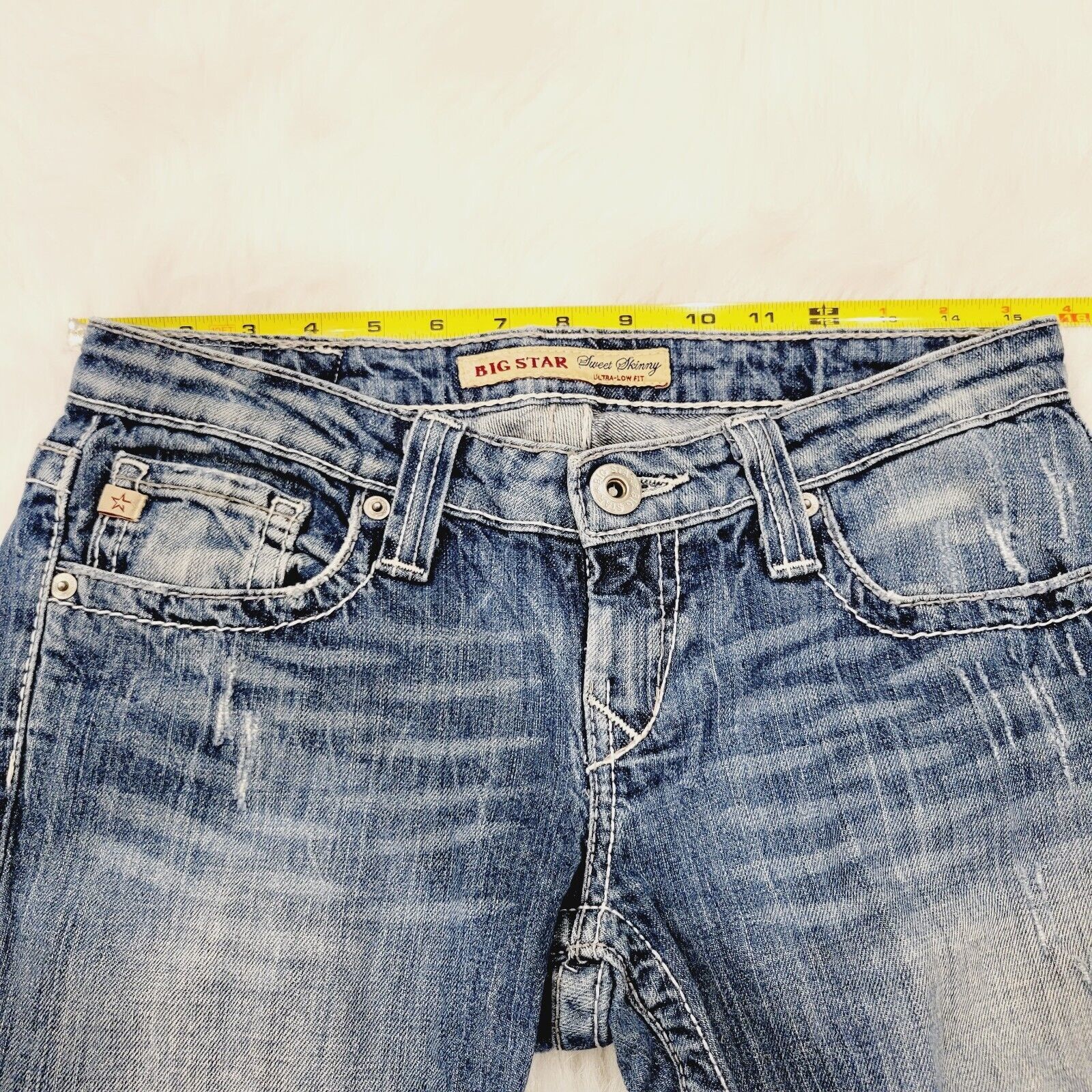 Big Star Womens Sweet Skinny Ultra Low Rise Distressed Faded Jeans 28