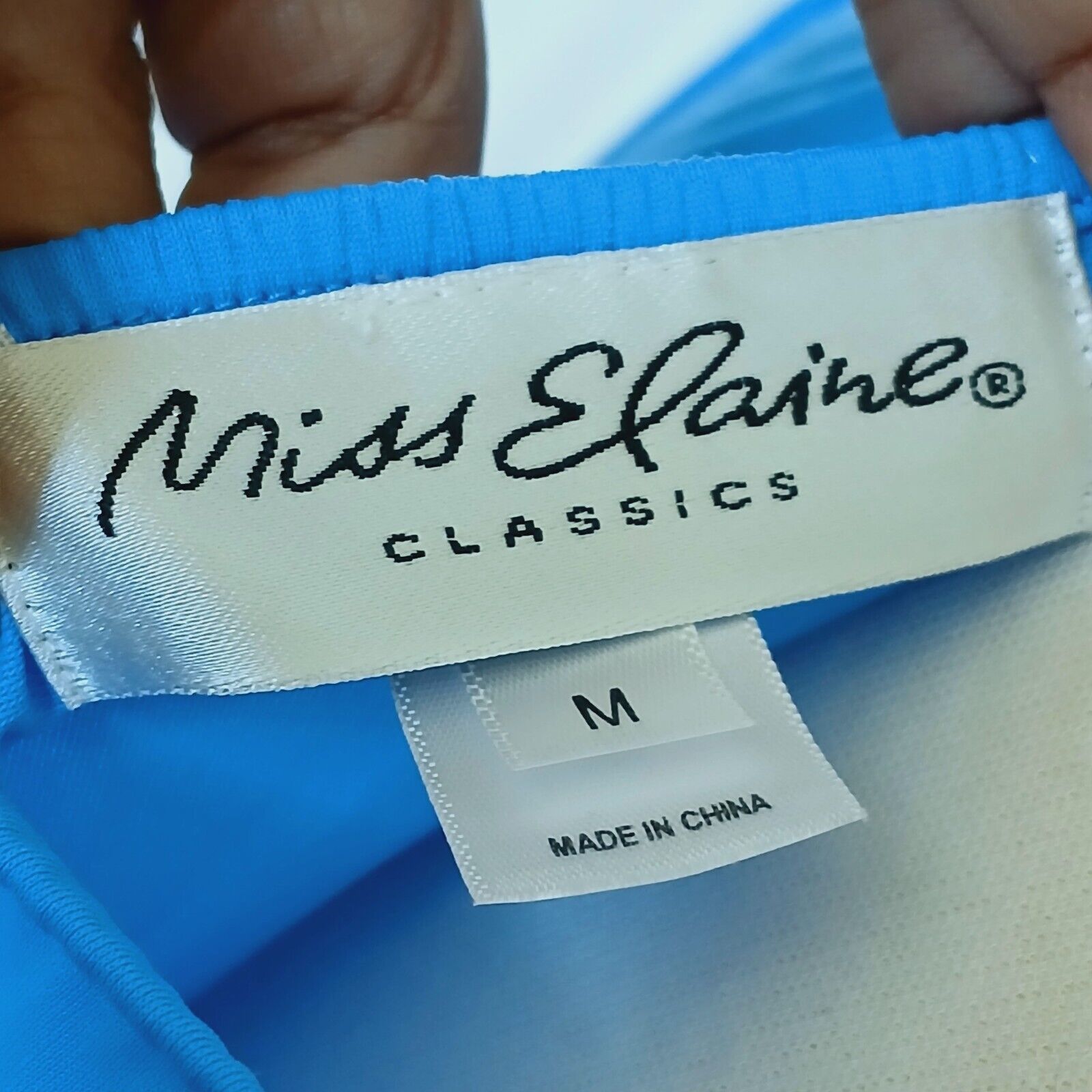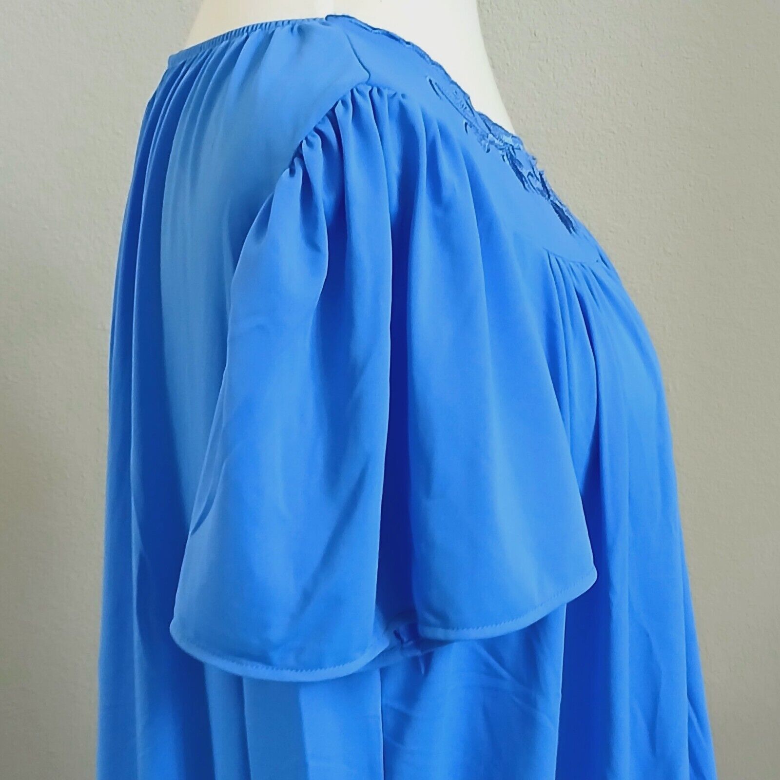 Miss Elaine Classic Nightgown Blue Floral Embroider Size Medium Nylon