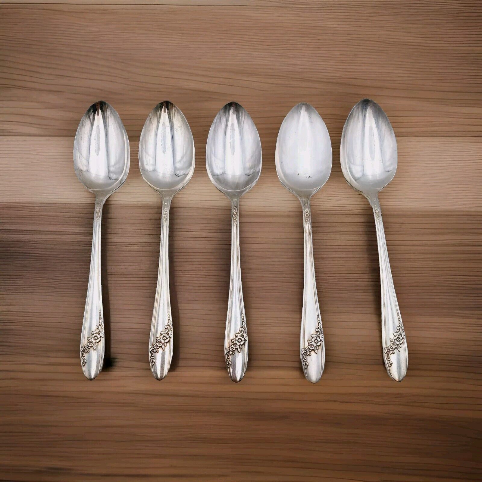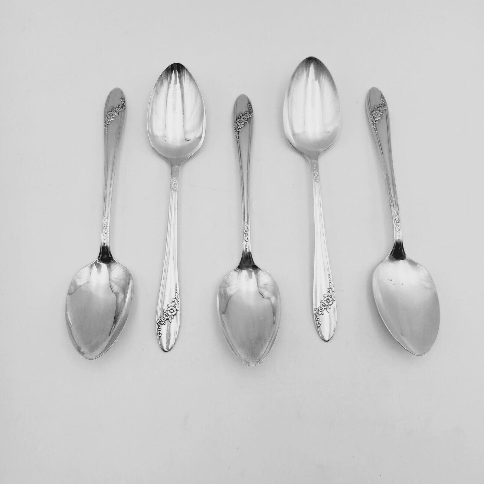 5 pcs Oneida Community Queen Bess II SERVING Spoon 8.25" Tudor Plate Flowers