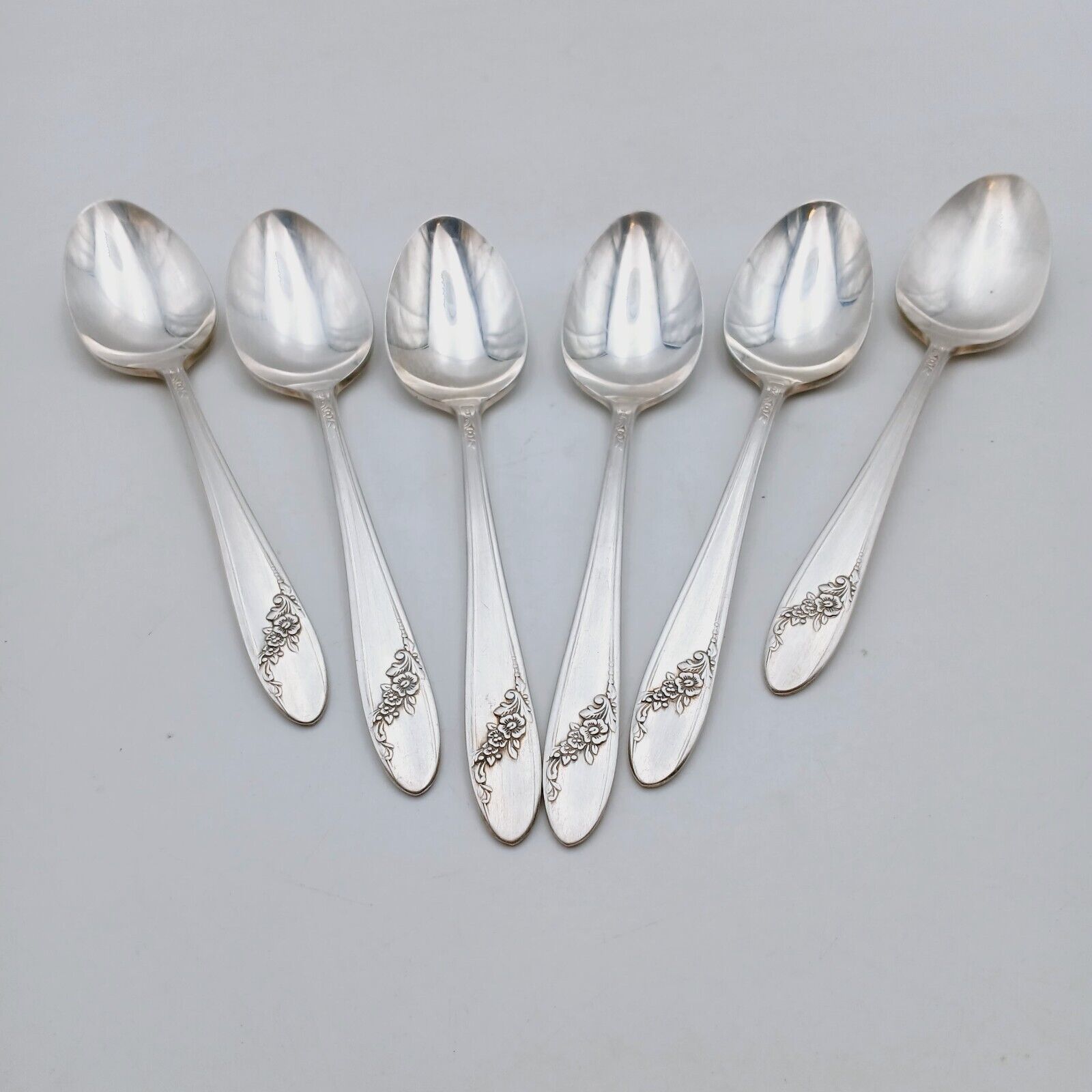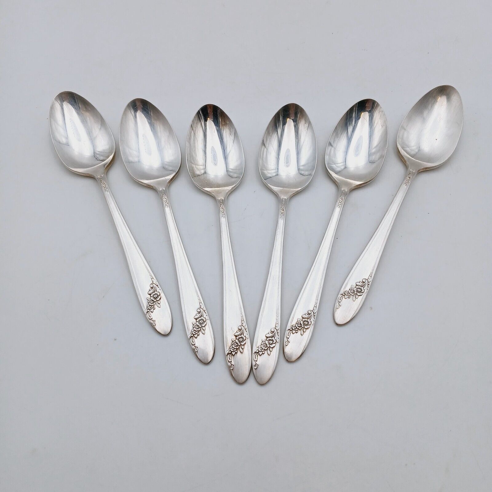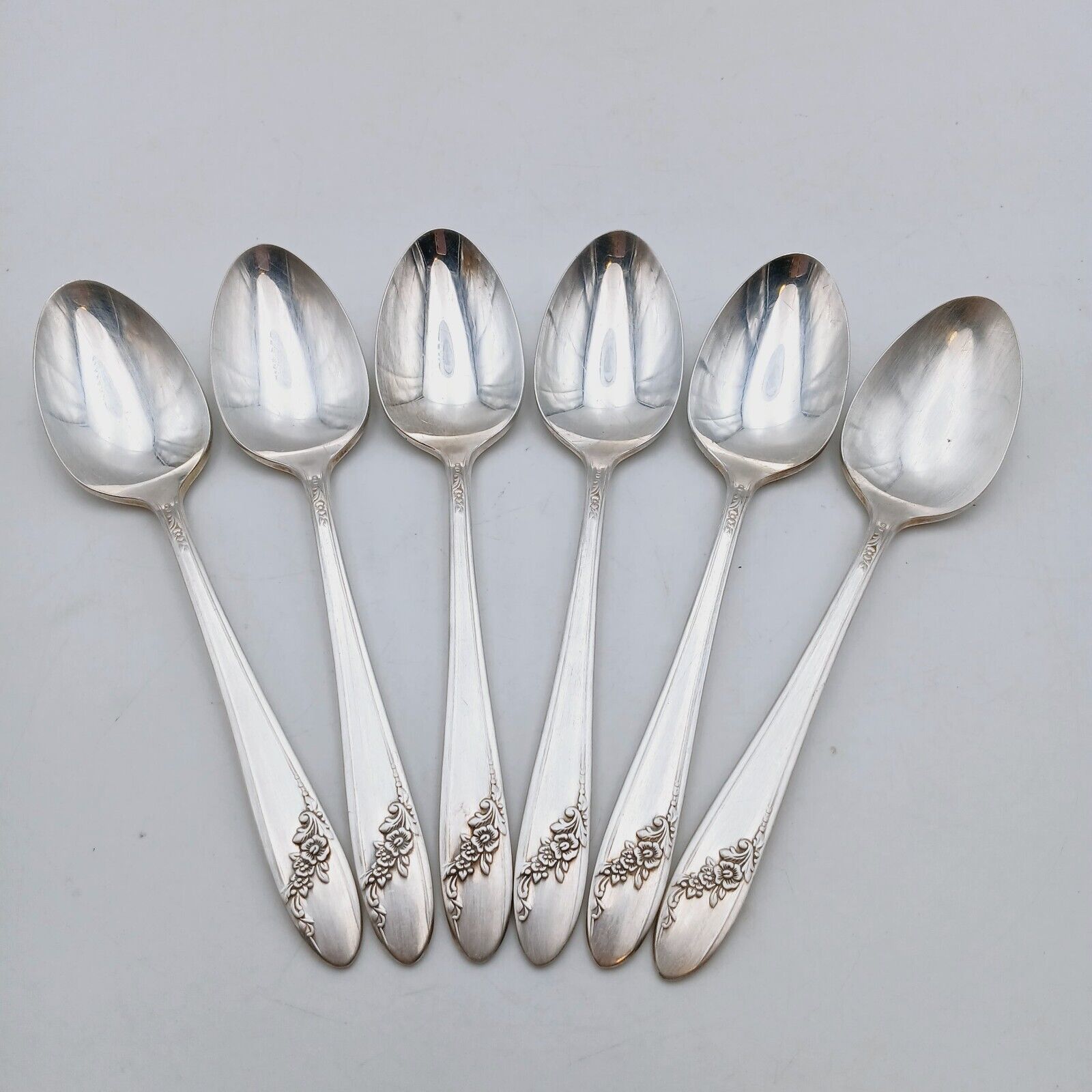 6 pcs Oneida Community Queen Bess II Teaspoon Silverplate Tudor Plate Flowers