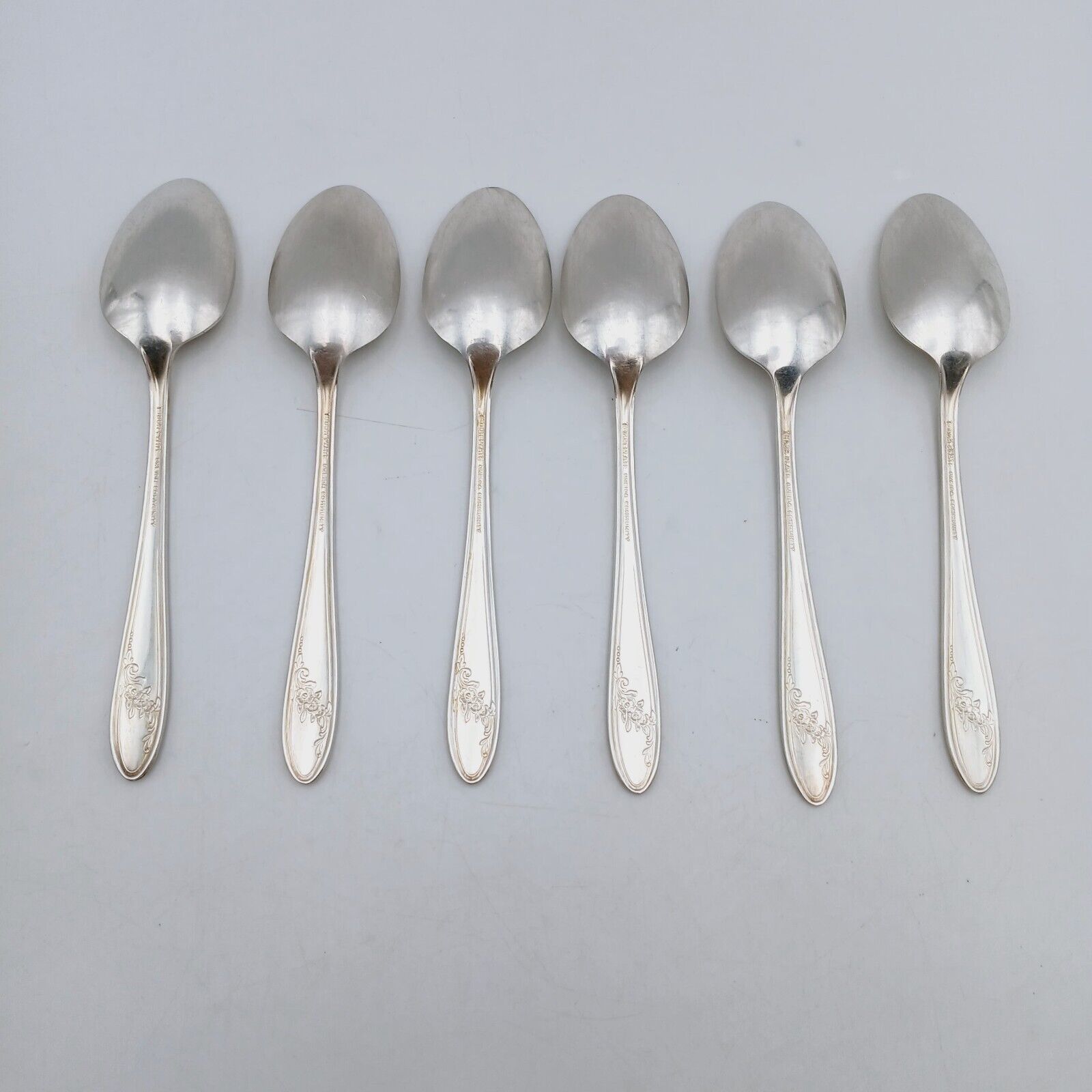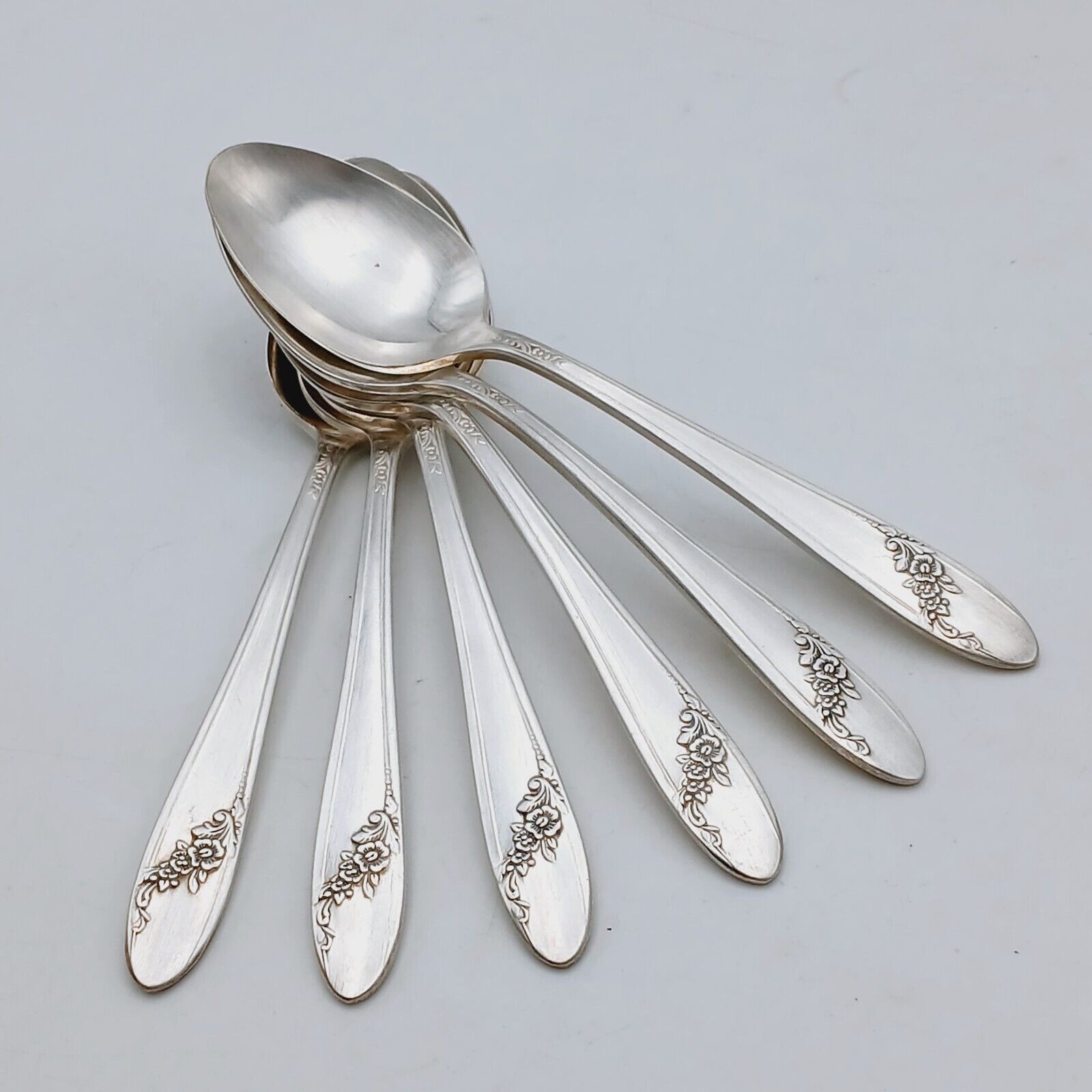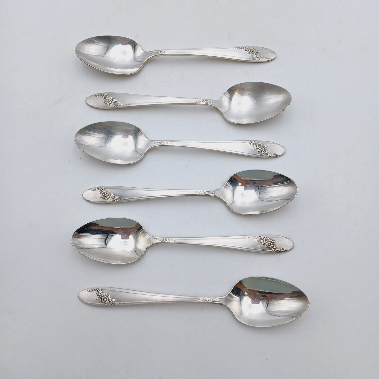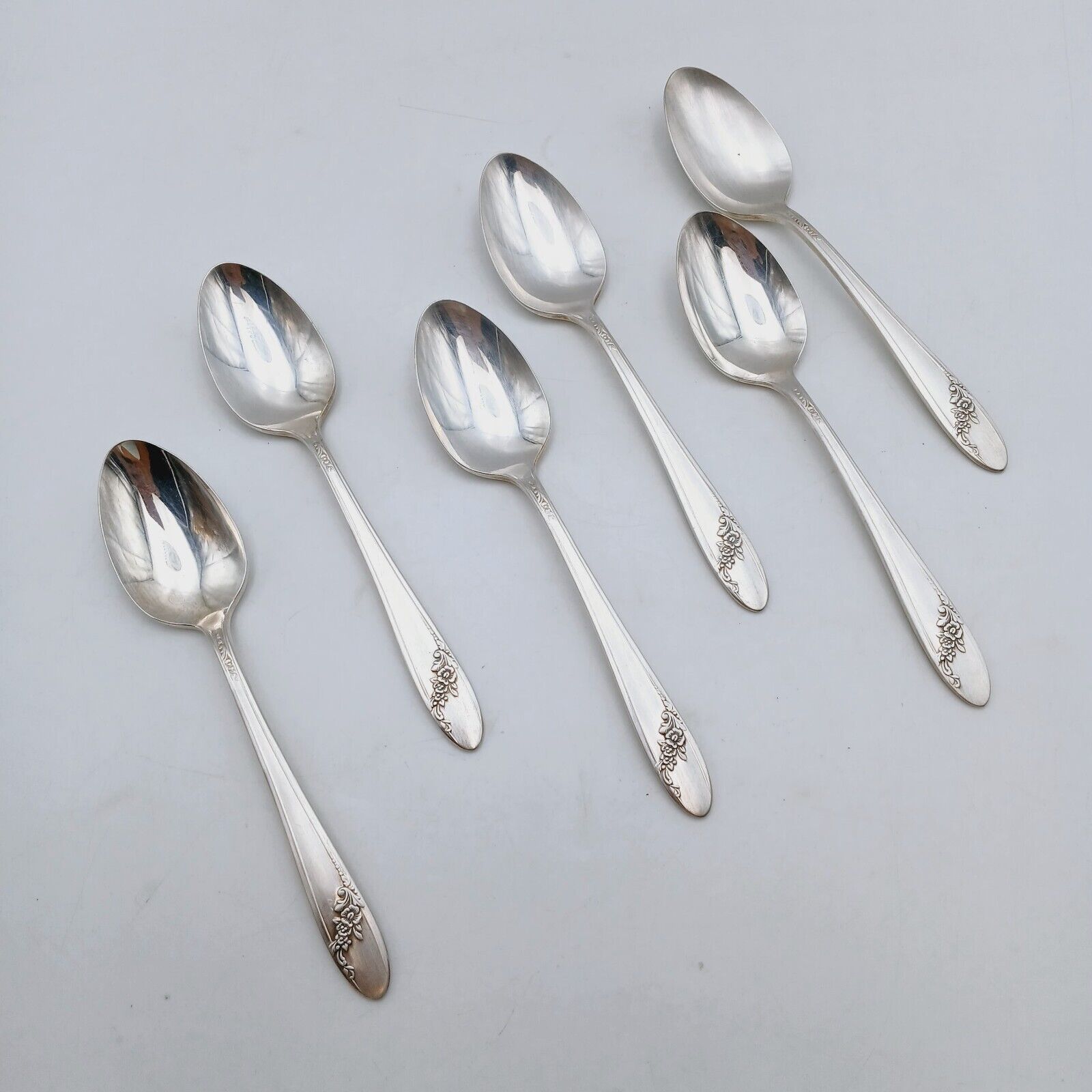 6 pcs Oneida Community Queen Bess II Teaspoon Silverplate Tudor Plate Flowers