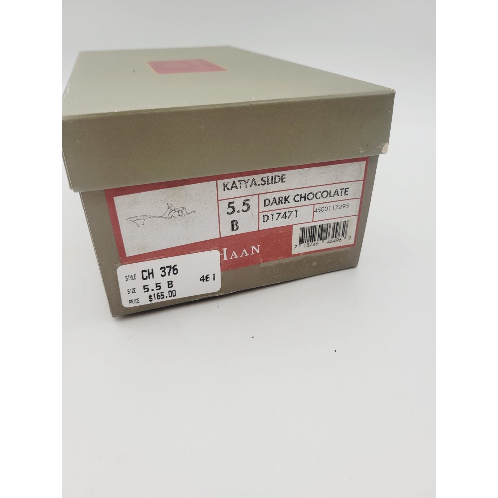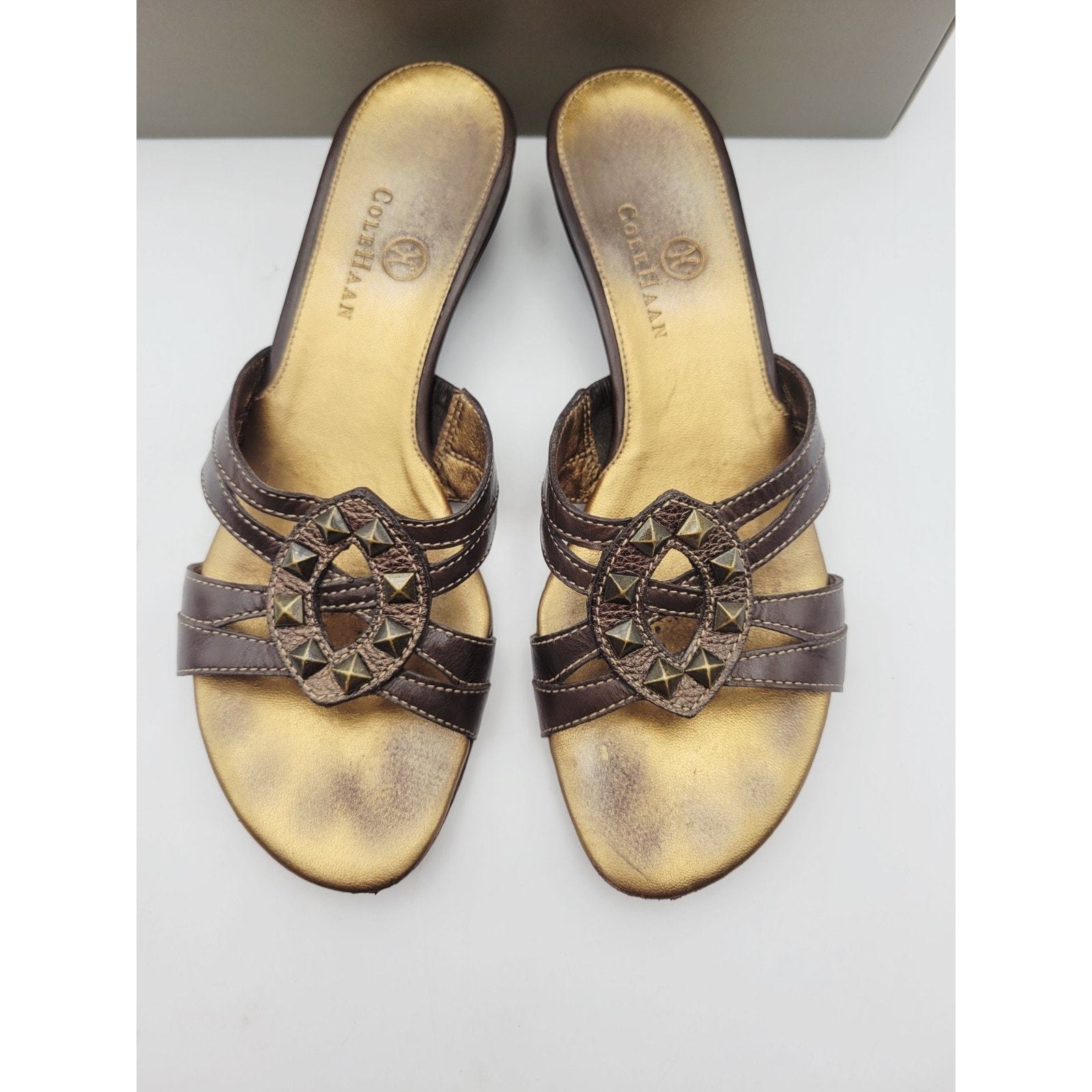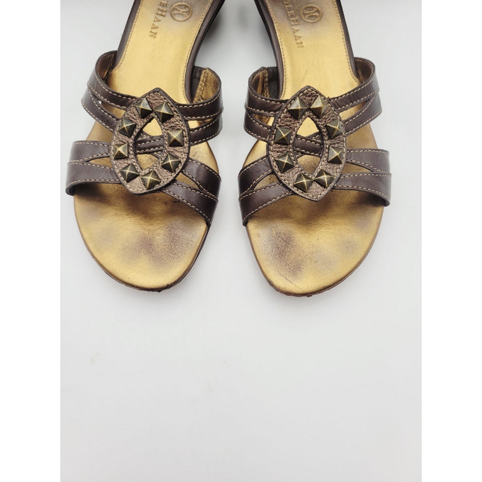 Cole Haan women's brown leather w stud open toe slide mule sandal shoes Sz 5.5 B