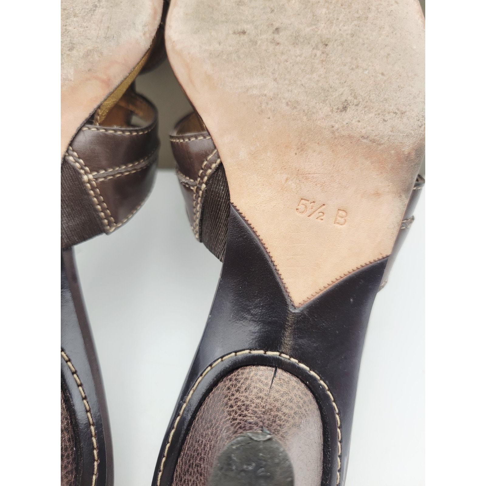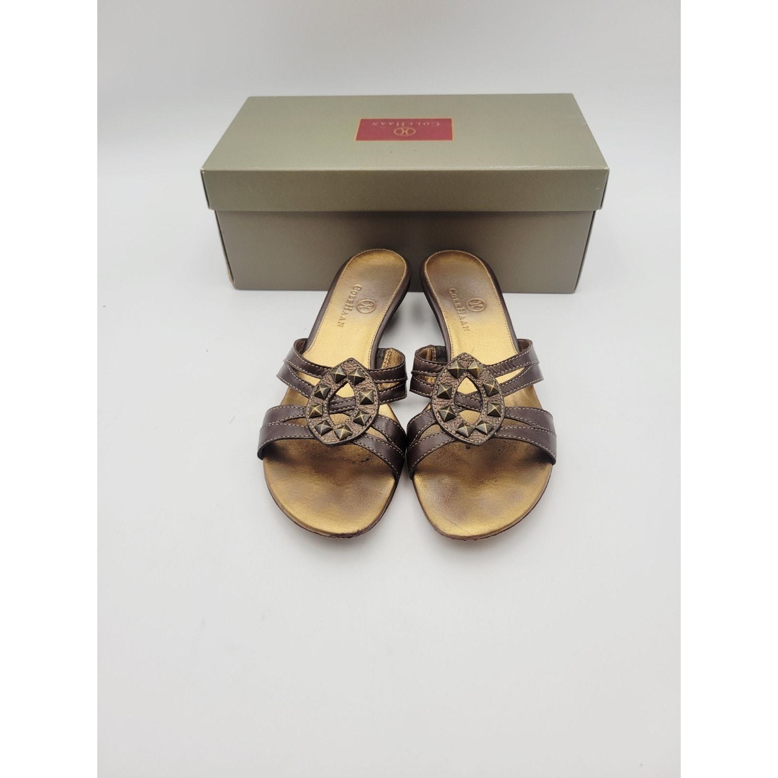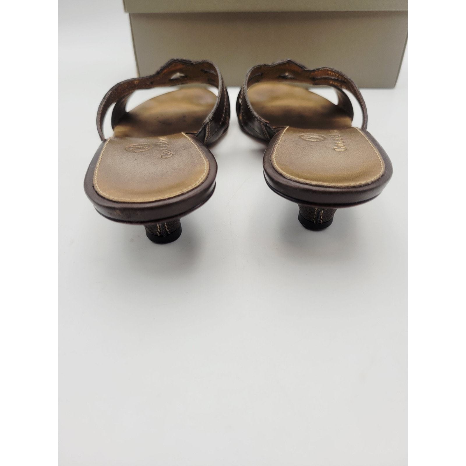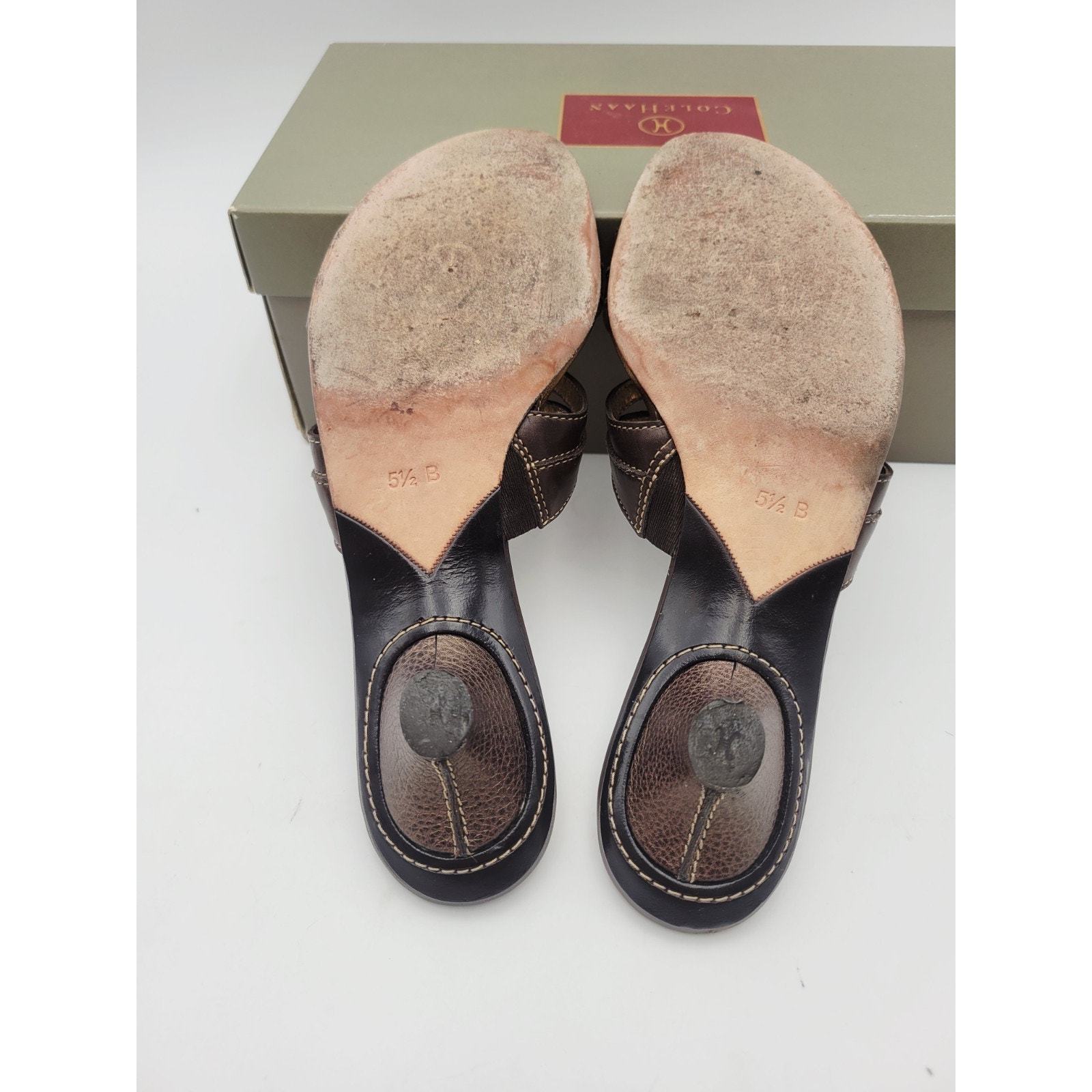 Cole Haan women's brown leather w stud open toe slide mule sandal shoes Sz 5.5 B