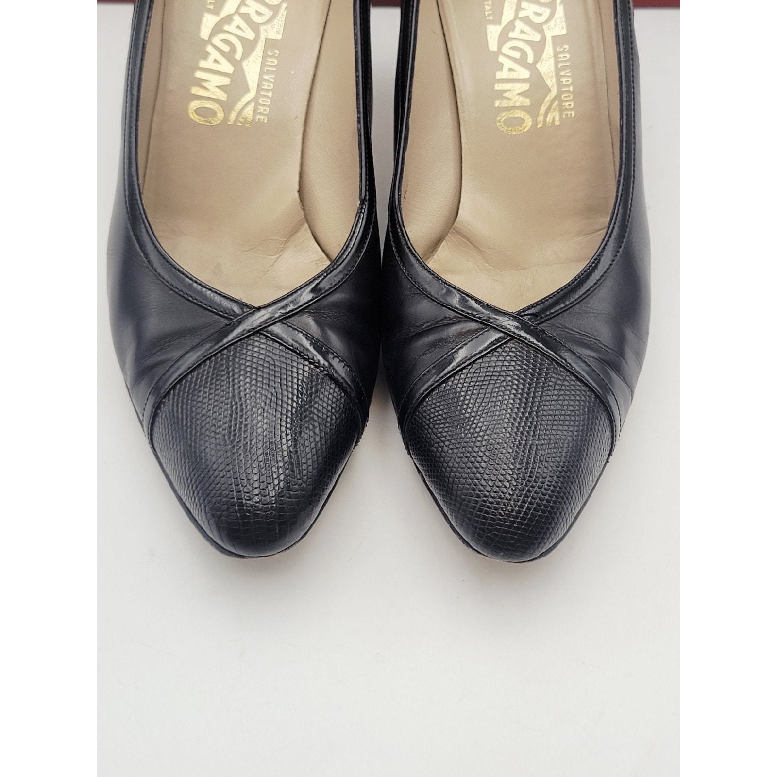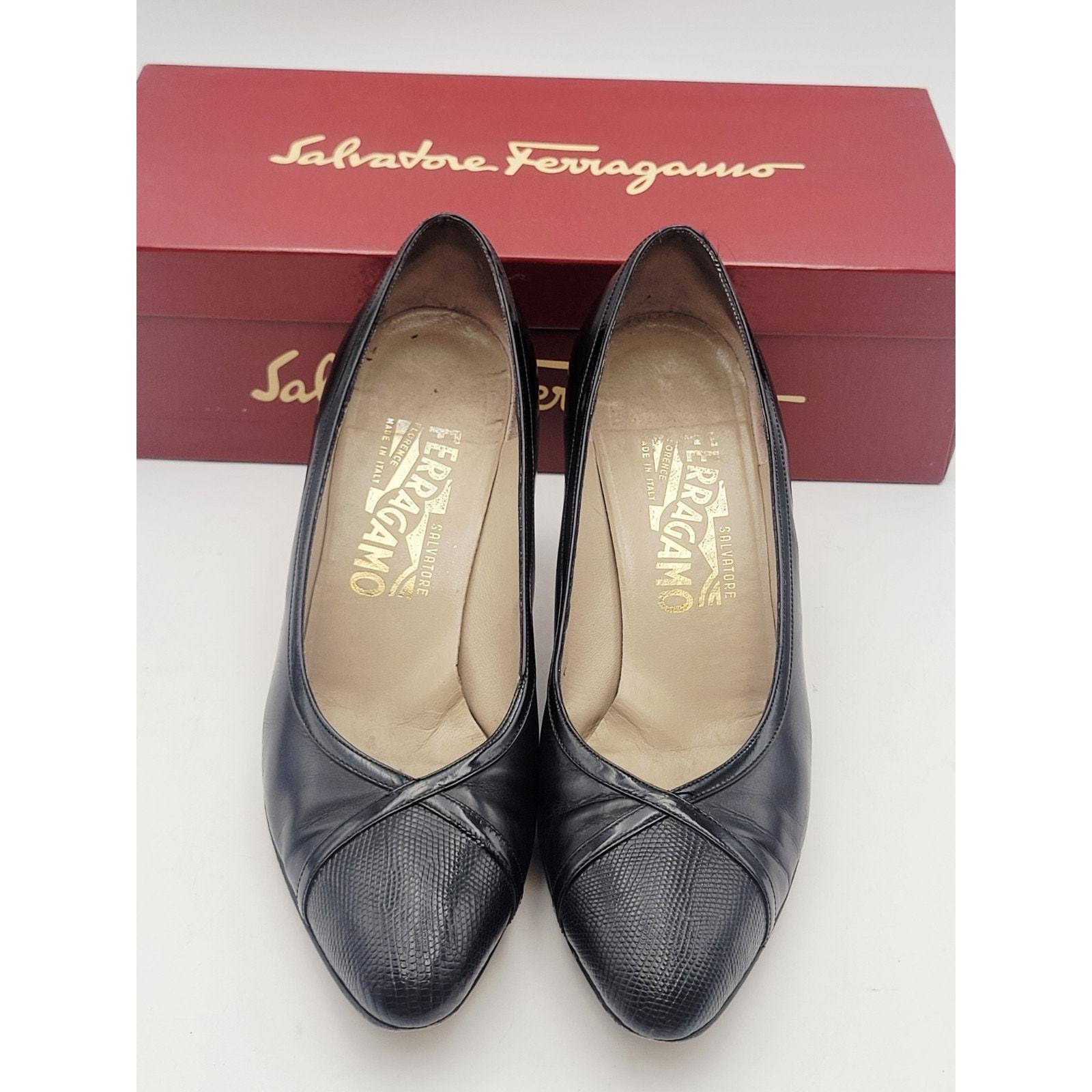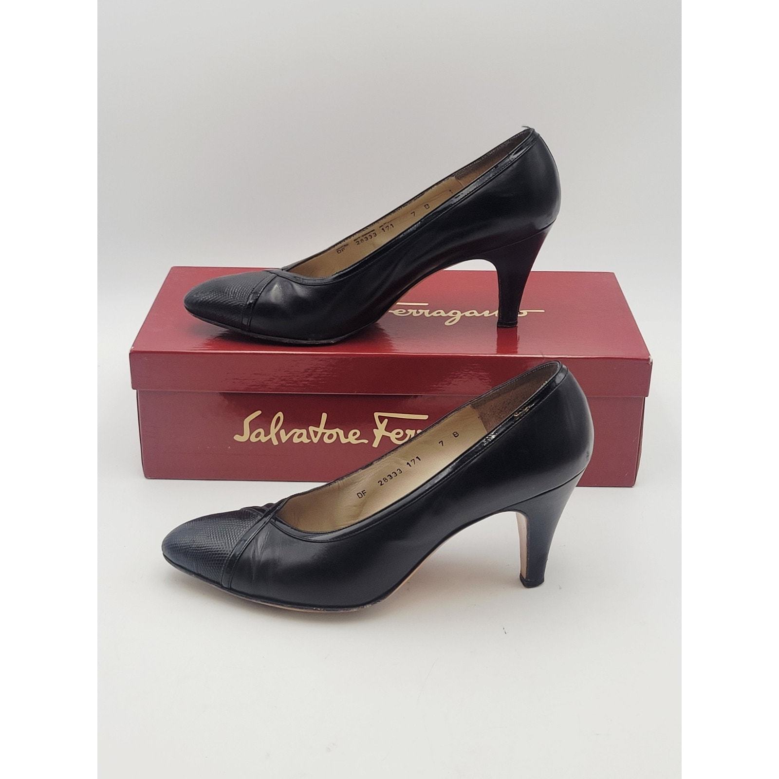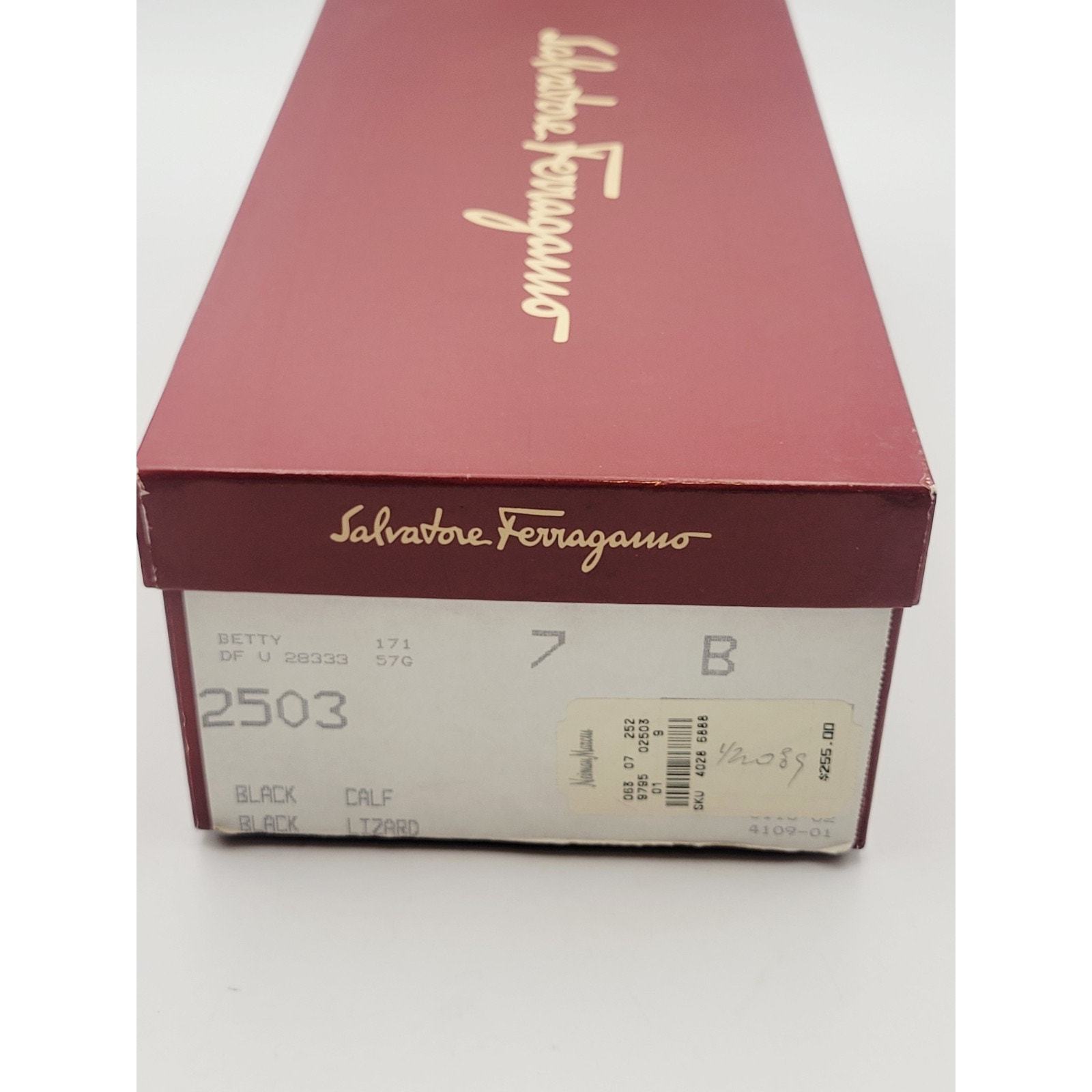 Salvatore Ferragamo Black Leather & Lizard Classic Heel Pumps Sz 7 B Women's Vtg