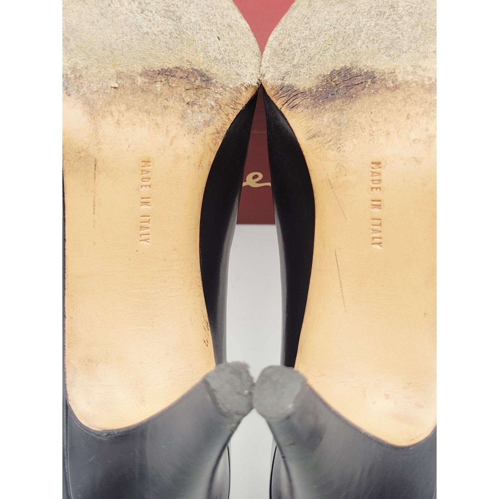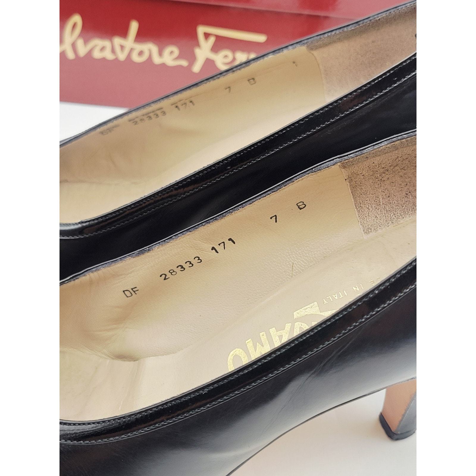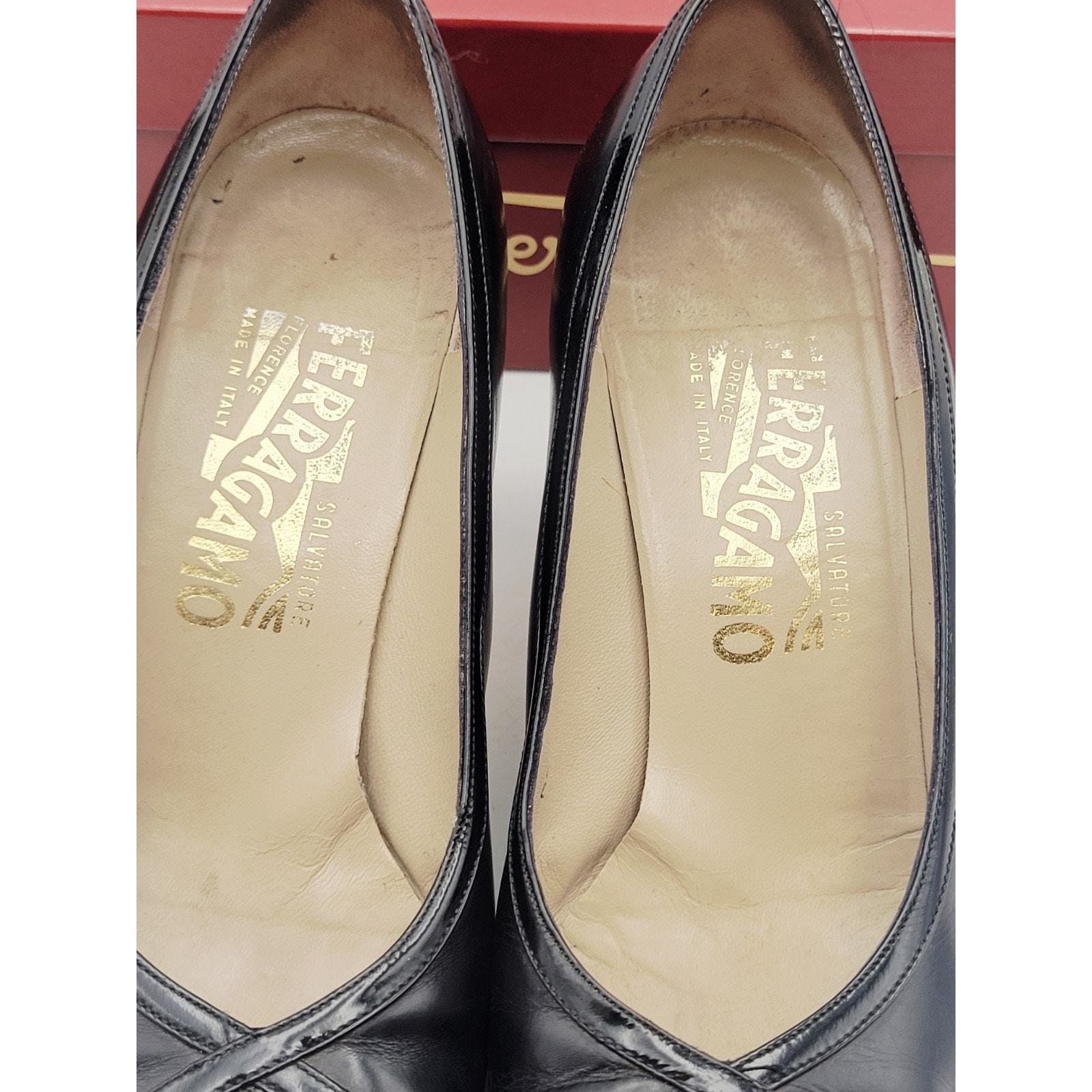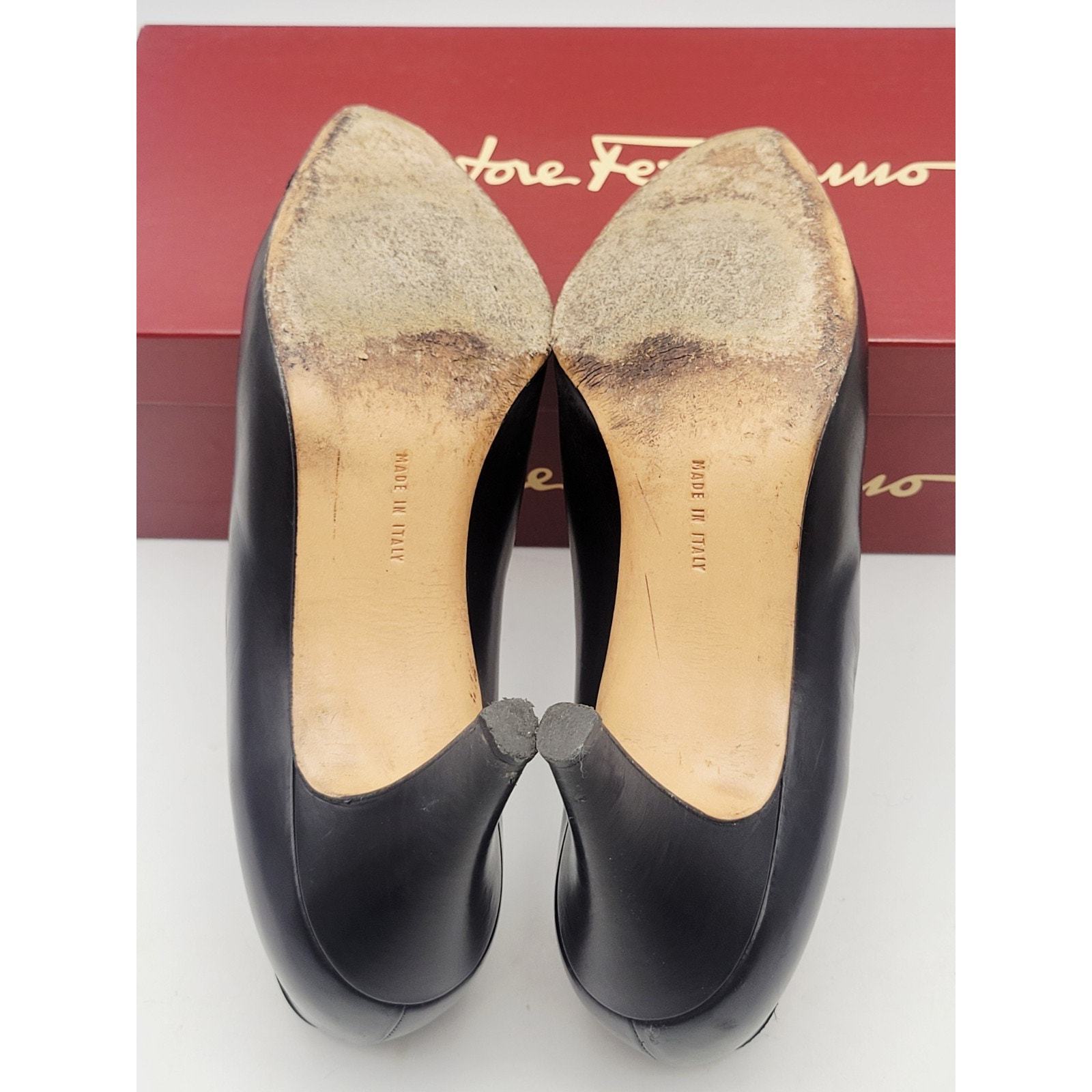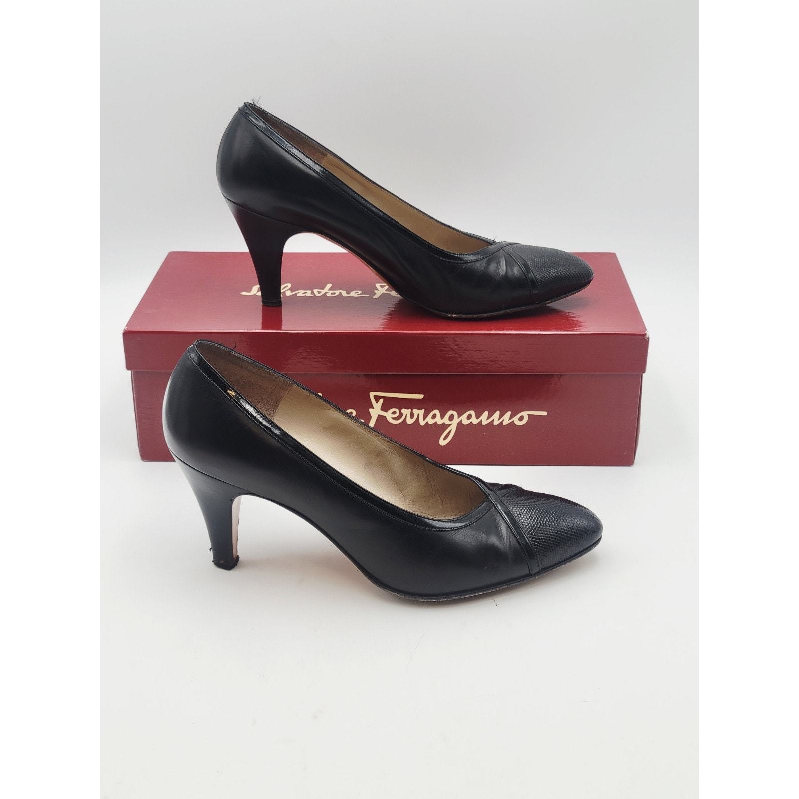 Salvatore Ferragamo Black Leather & Lizard Classic Heel Pumps Sz 7 B Women's Vtg