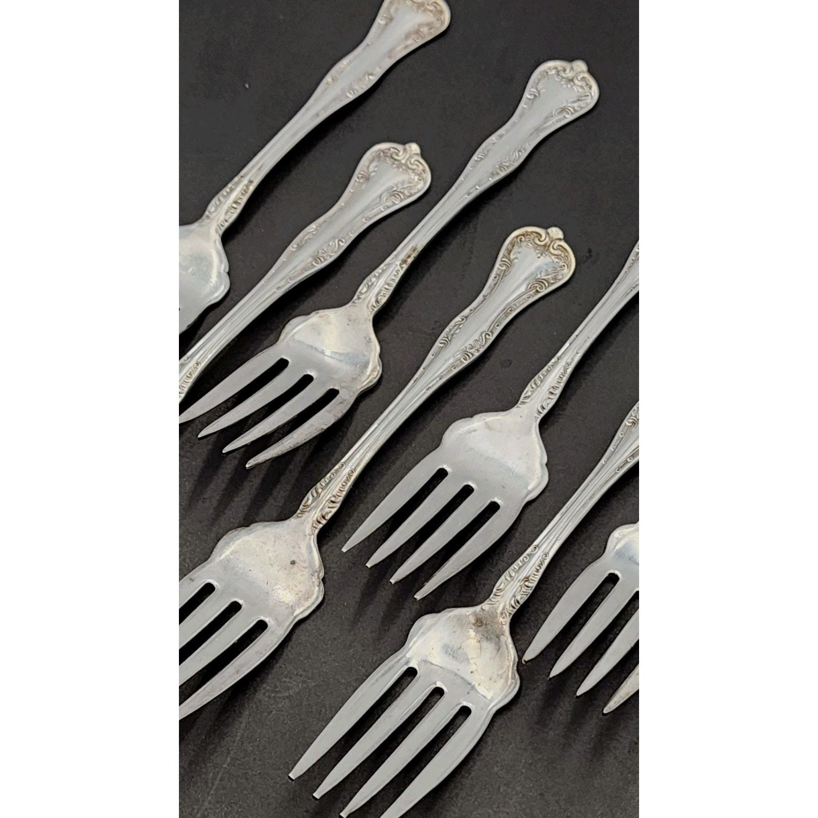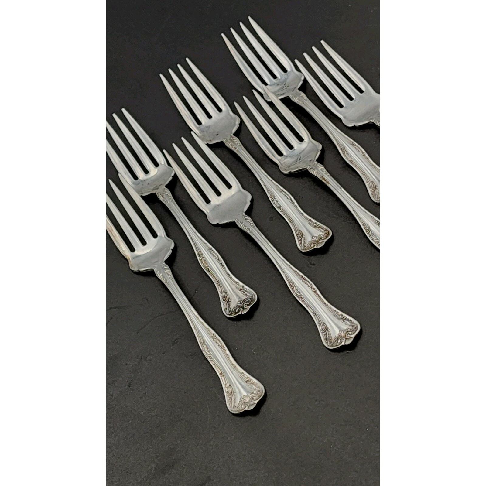The forks are in great vintage shape and have been well-maintained over the years. They are a great example of vintage silverware that can add a touch of elegance to your table setting. Whether you're a collector or just looking for a unique piece to add to your flatware collection, these salad forks are a must-have.
