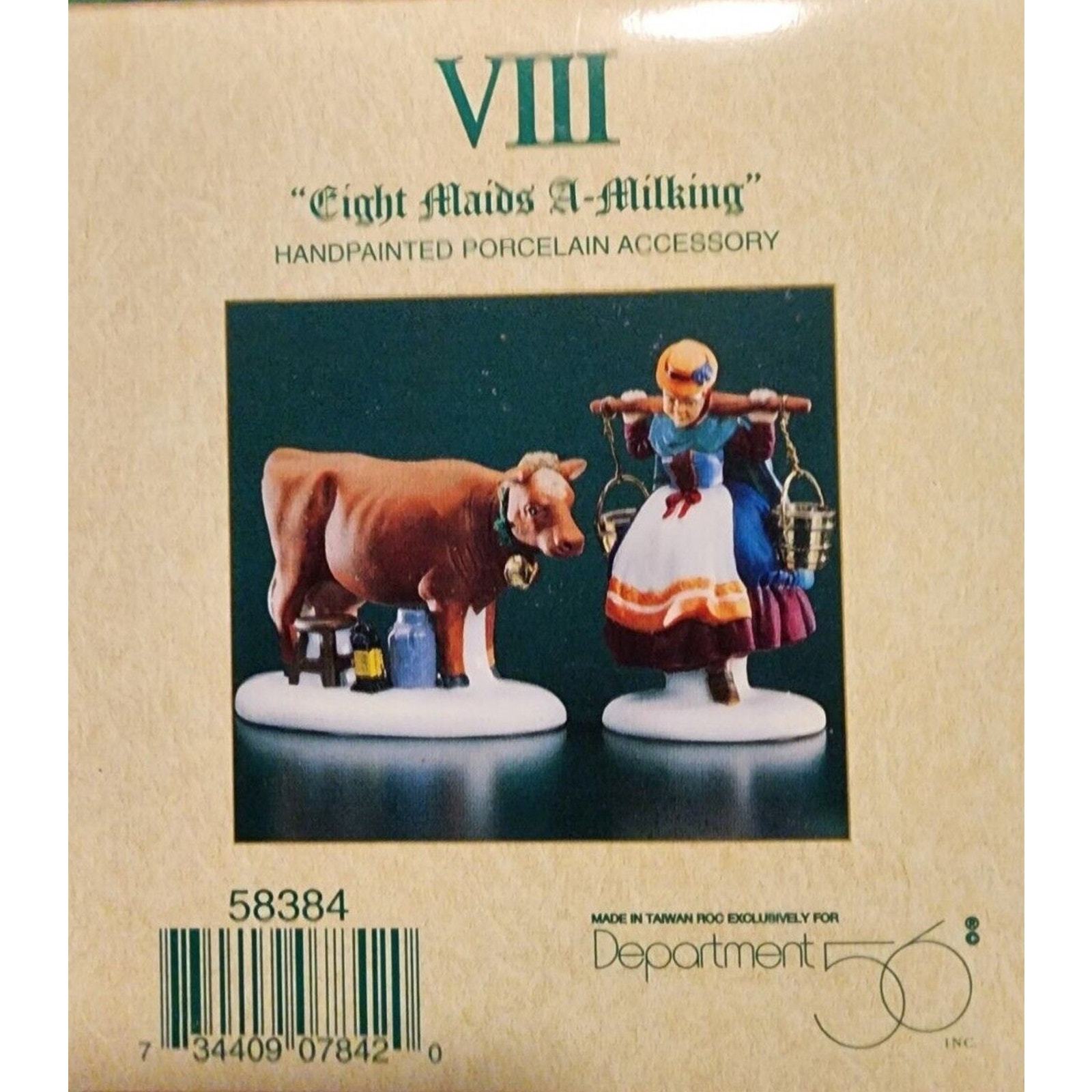 Dept 56 EIGHT MAIDS A- MILKING Dickens Village Twelve Days of Christmas In Box