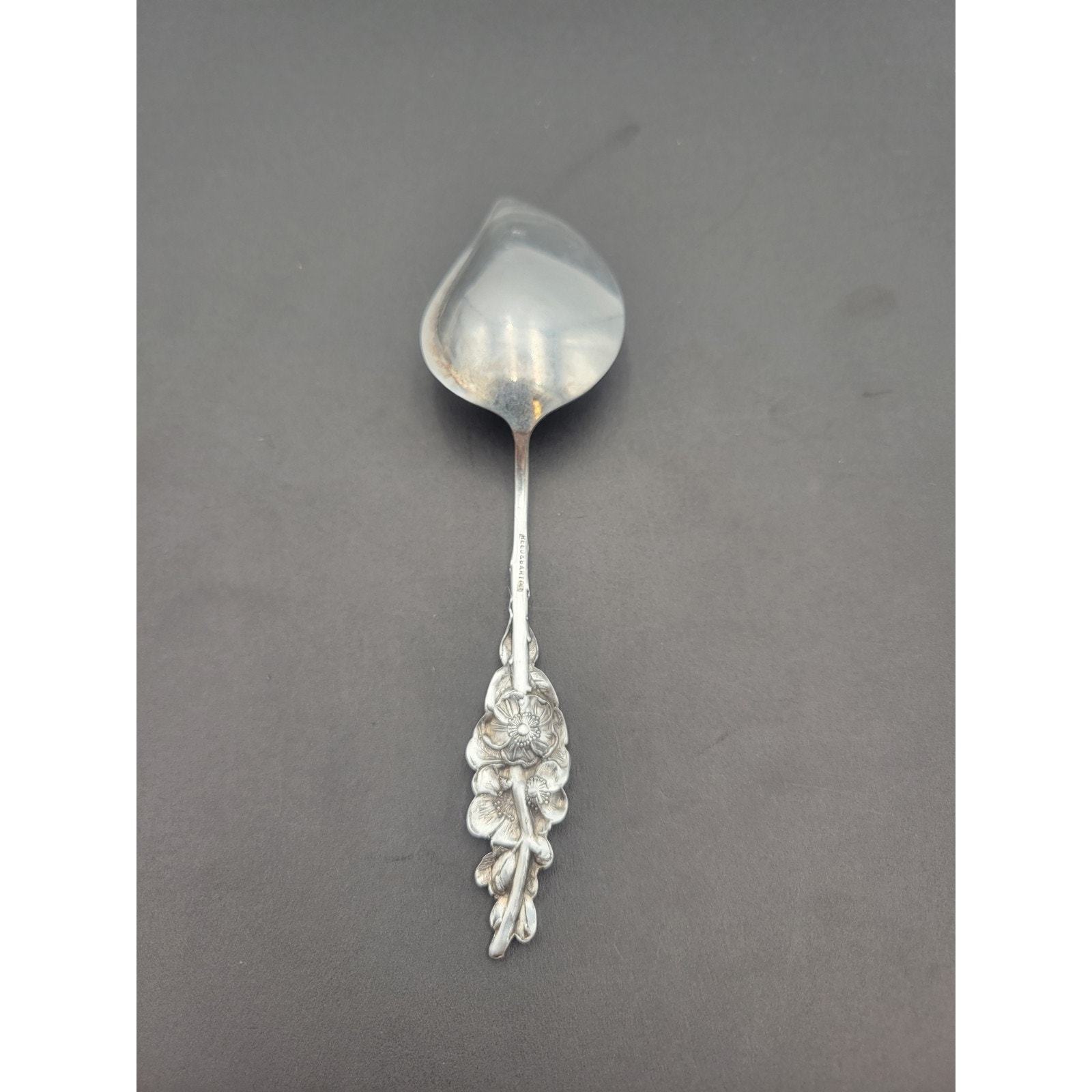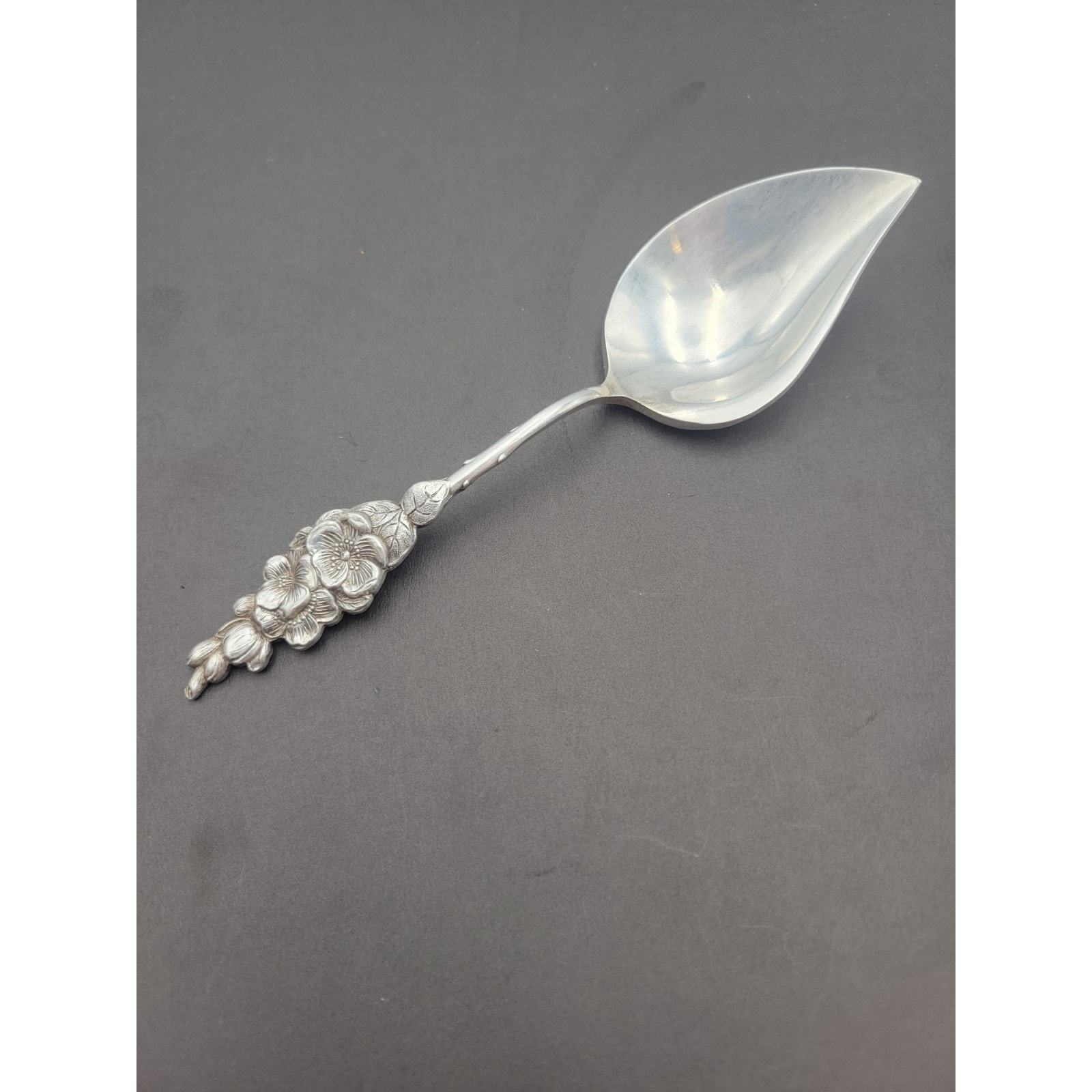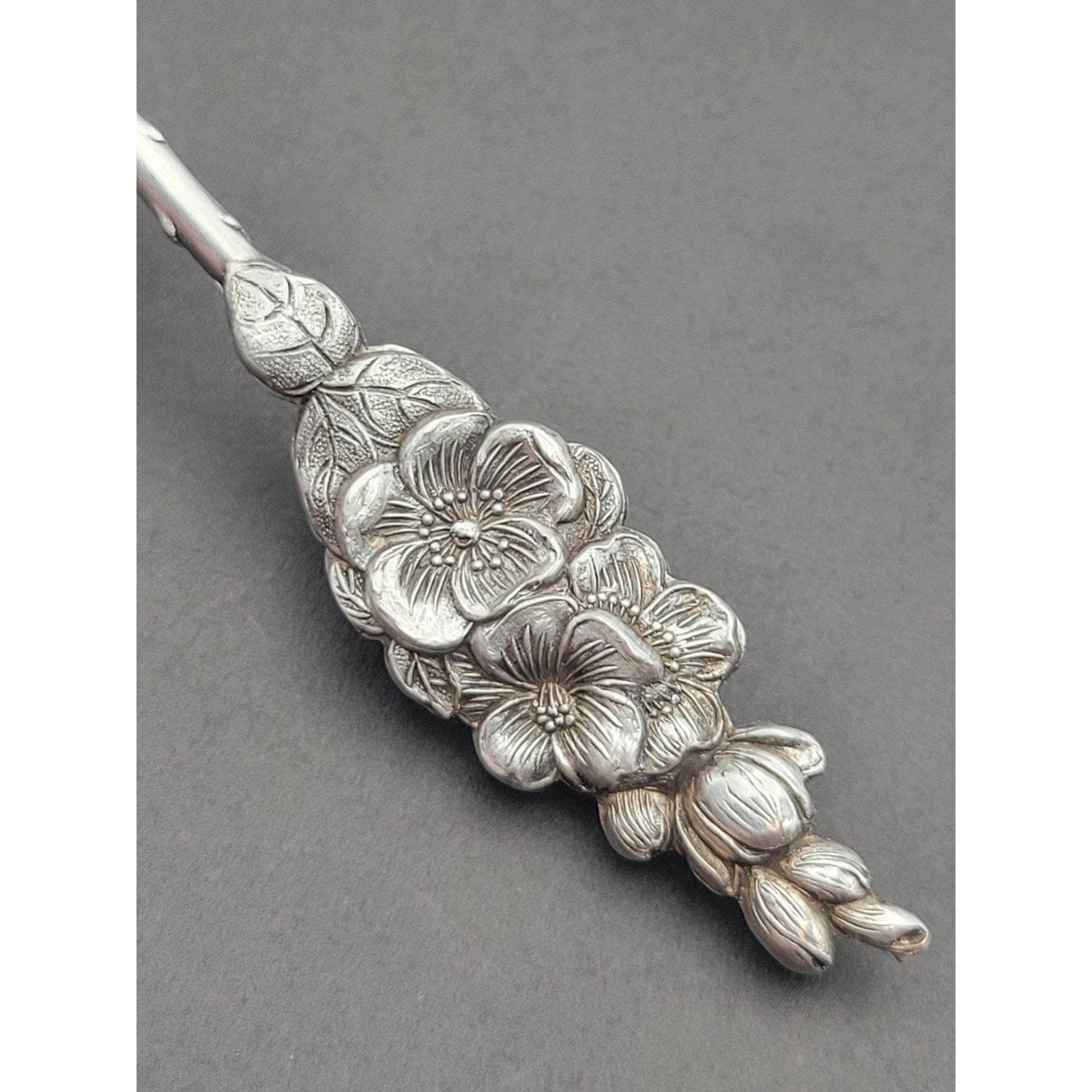 This beautiful Reed Barton Silver Plate Harlequin Apple Blossom Floral Handle Jelly Server is a must-have for any antique silver plated flatware collection. The intricate Apple Blossom pattern and silverplate composition make it a unique and valuable piece. The server is perfect for serving jelly and other condiments, and its floral handle adds a touch of elegance to any table setting.