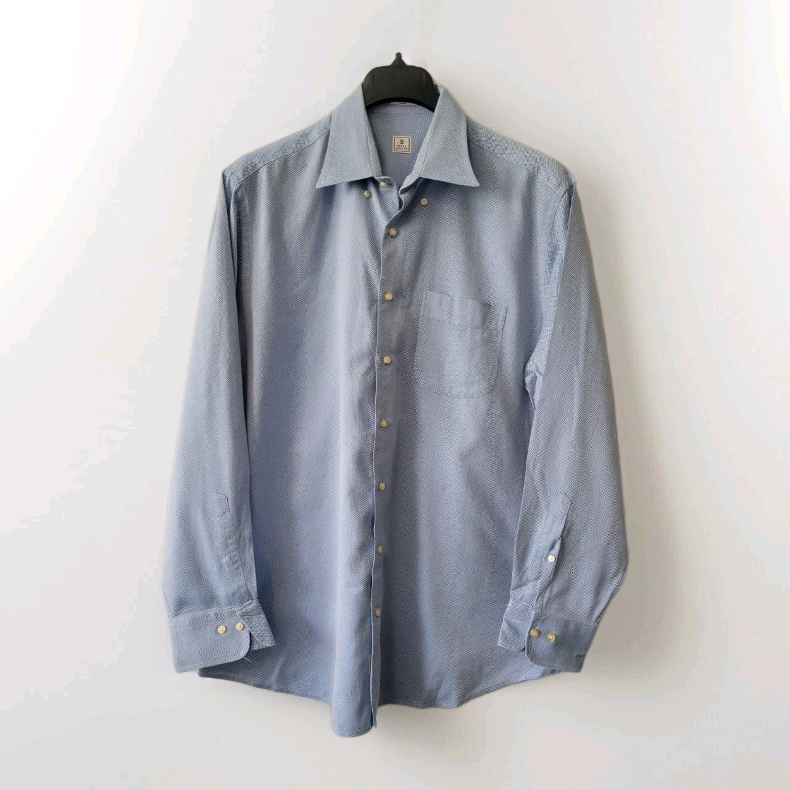 Peter Millar Mens Crown Cool Shirt Sz X Large Blue Pattern Long Sleeve Linen