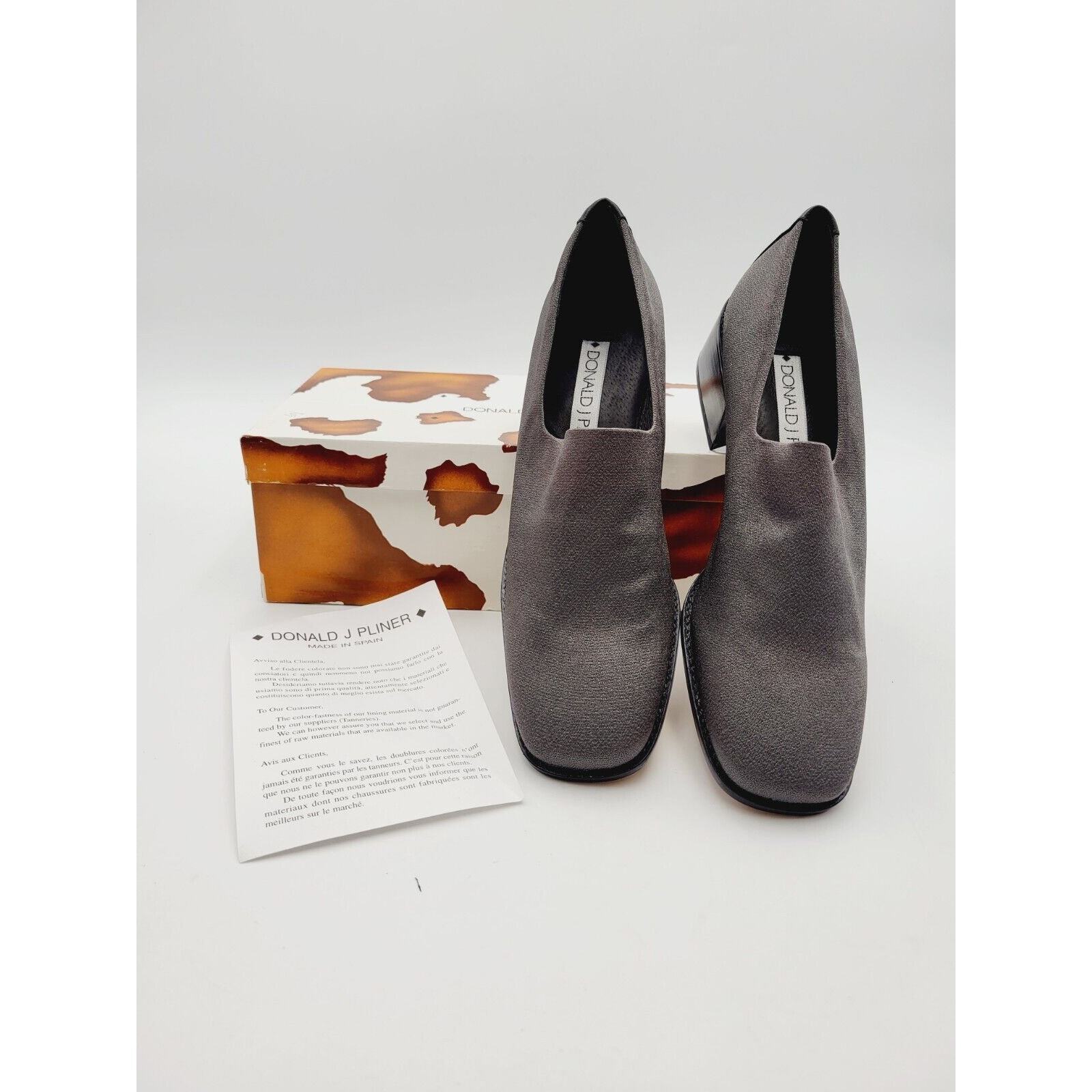 Donald J Pliner Heels Womens 8.5 M Pumps Block Gray Fabric Square Toe Casual Ita