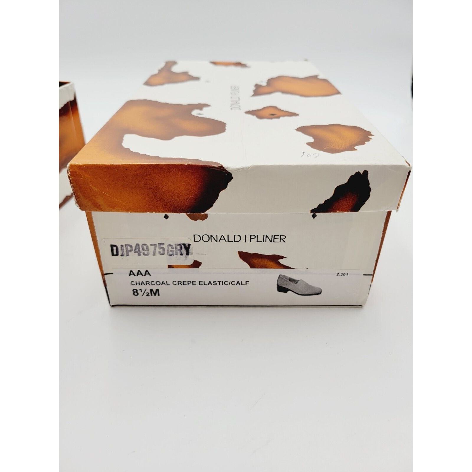 These Donald J Pliner heels are stylish pumps designed for women in size 8.5 with a square toe shape and a high block heel, ideal for casual occasions. The gray fabric upper material and Italian craftsmanship give these shoes a modern yet classic appeal, perfect for the summer, fall, and spring seasons. They feature a slip-on closure, synthetic outsole, and comfortable, breathable synthetic lining, making them a fashionable and comfortable choice for any outfit.