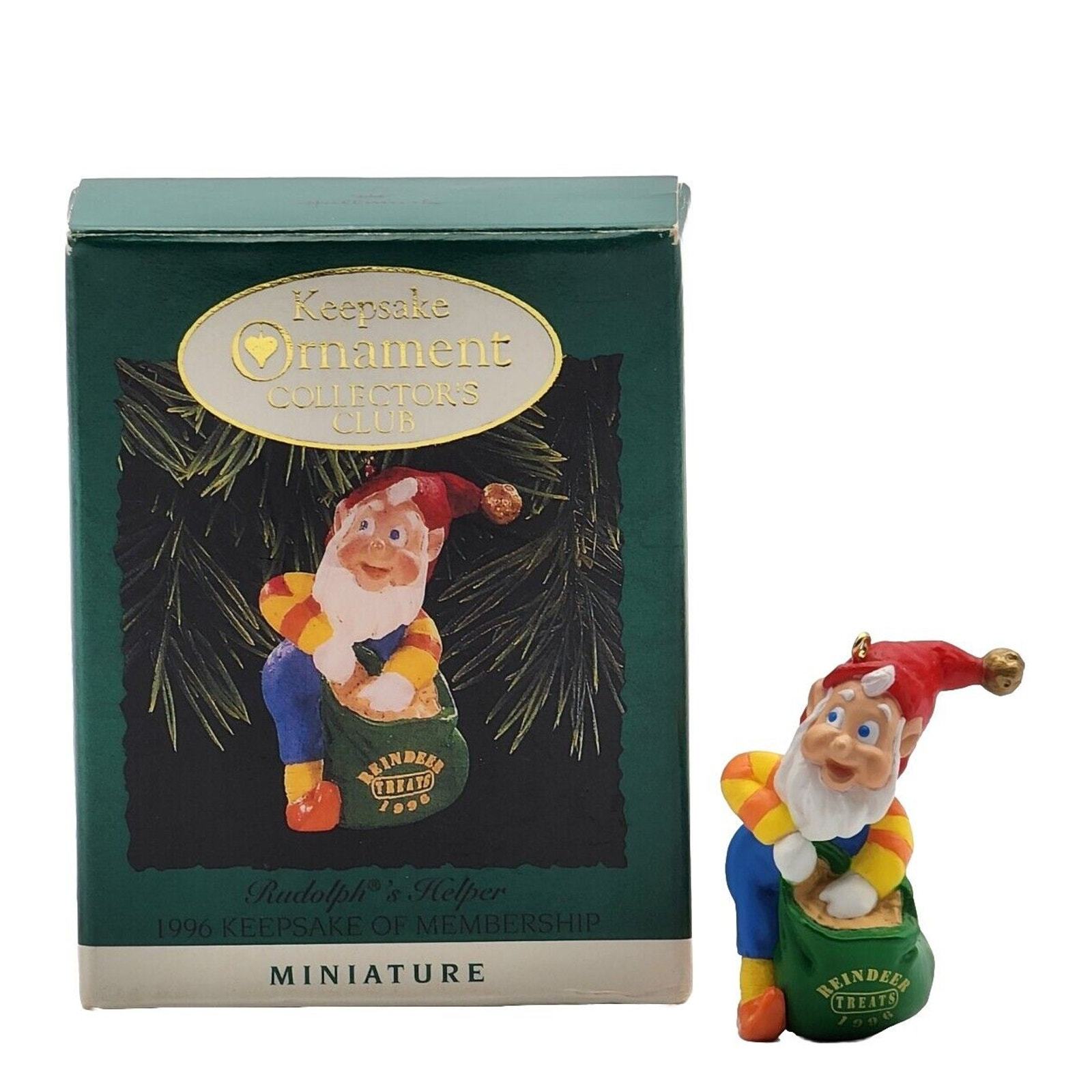 1996 Hallmark Keepsake Rudolph's Helper Miniature Ornament In Original Box