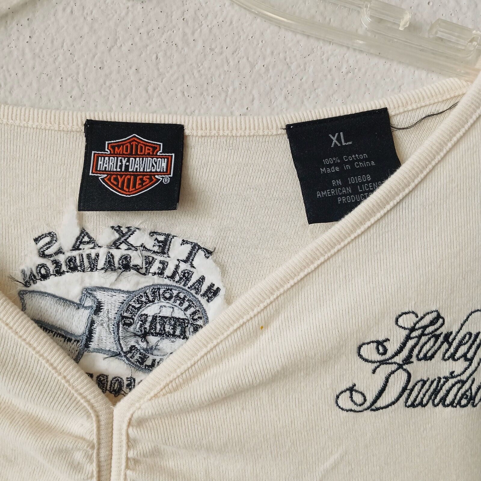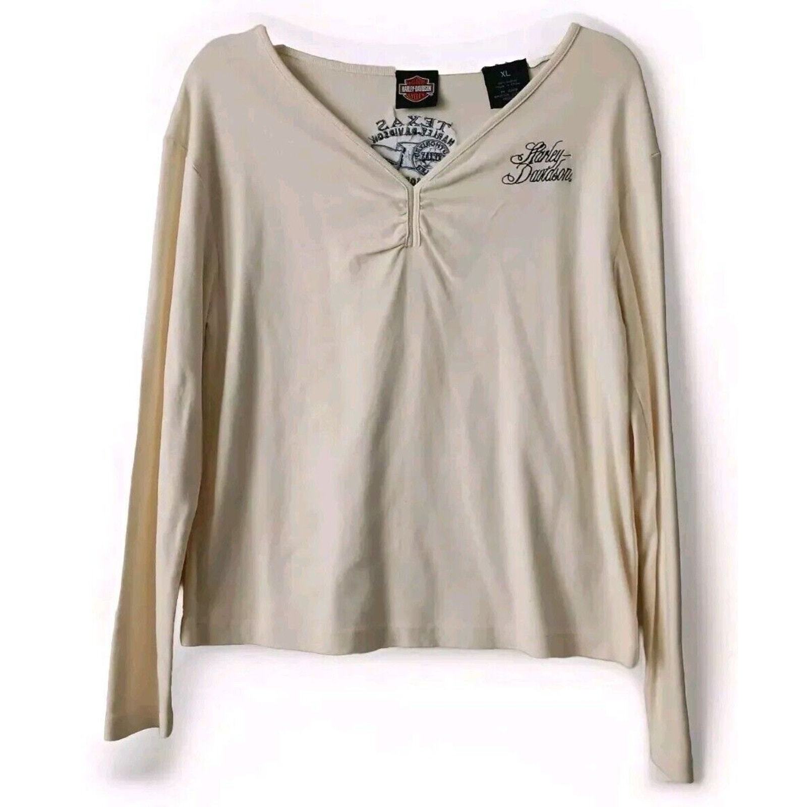 Harley Davidson Shirt Women's XL Cream Long Sleeve 100% Cotton Texas