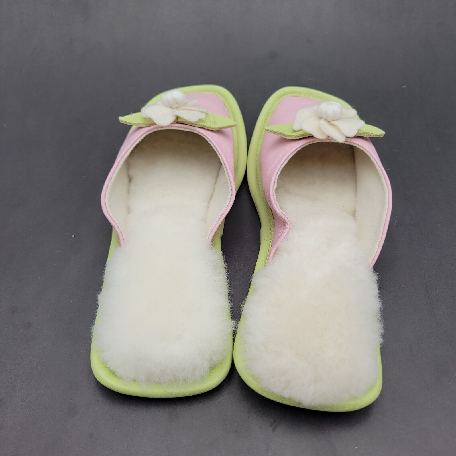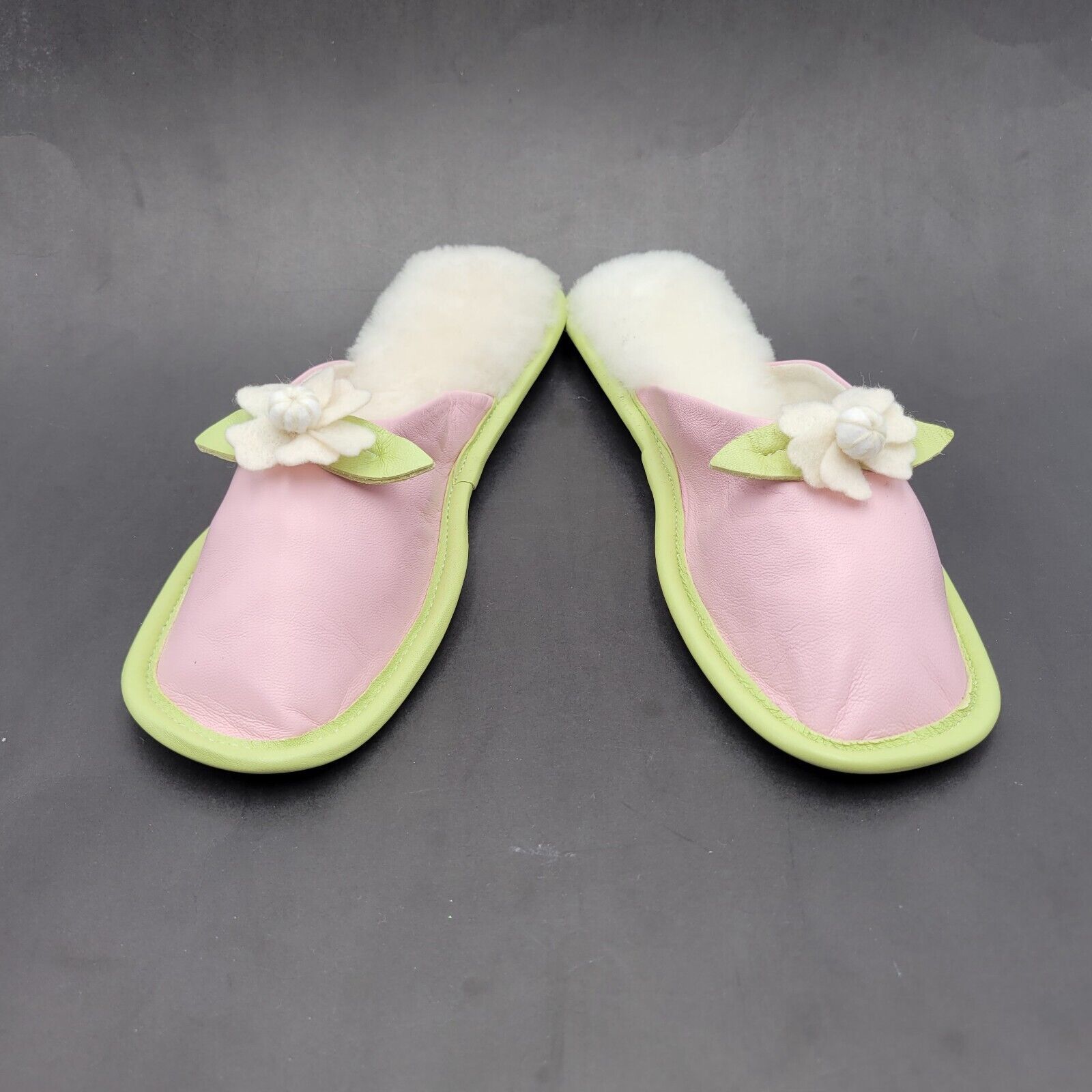 Vtg Amy Jo Gladstone Pink & Green Slide Slippers Size M Leather