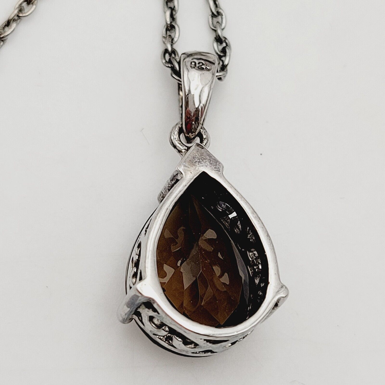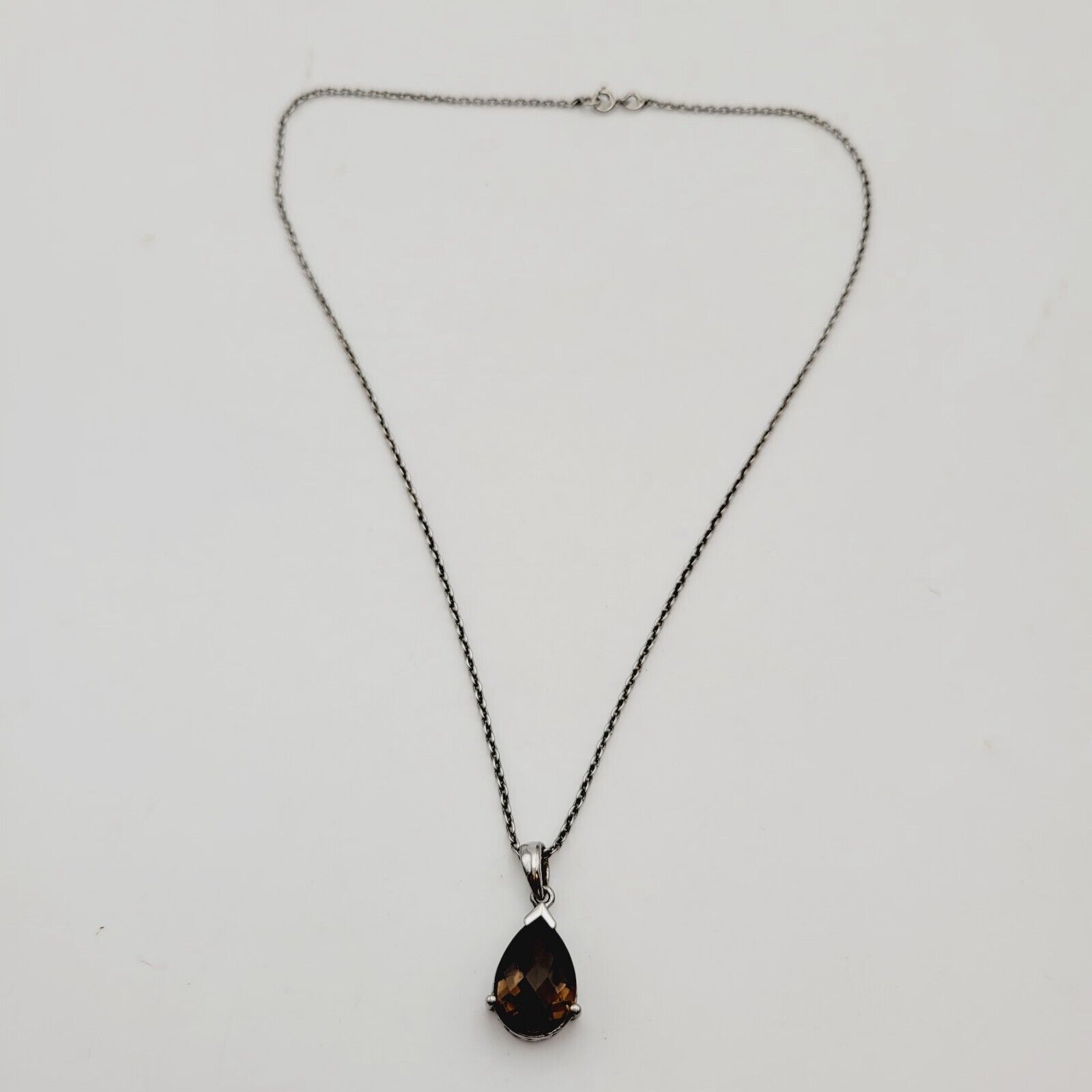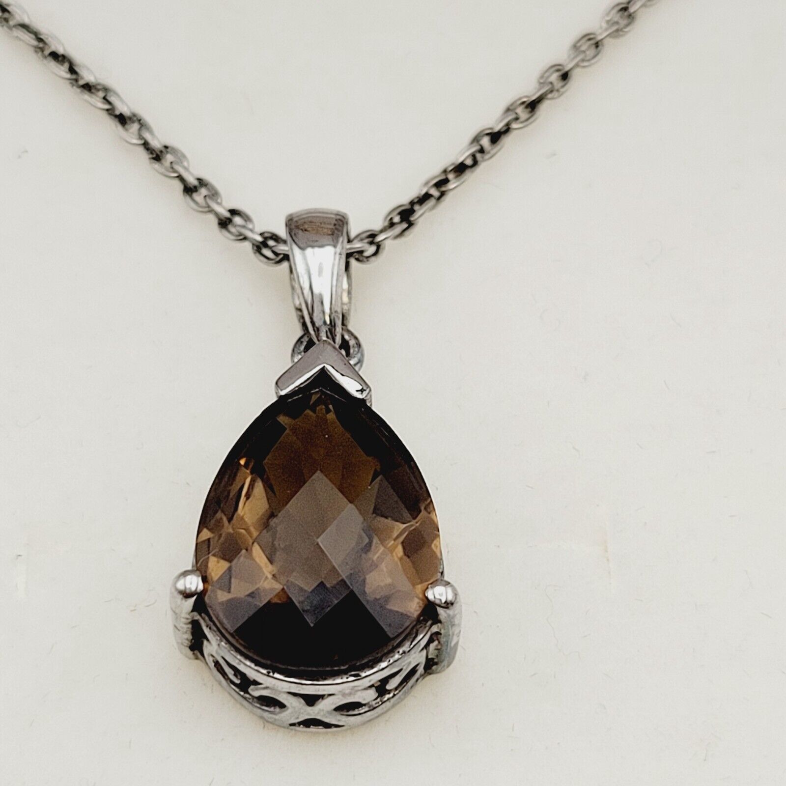 Vtg Sterling Silver Smoky Quartz (Pear 7.75 Ct) Pendant W/Chain Necklace