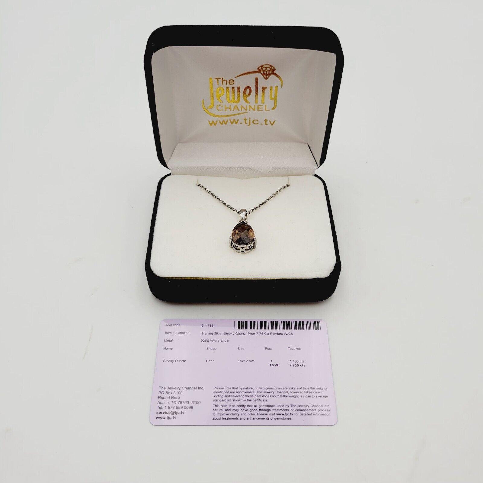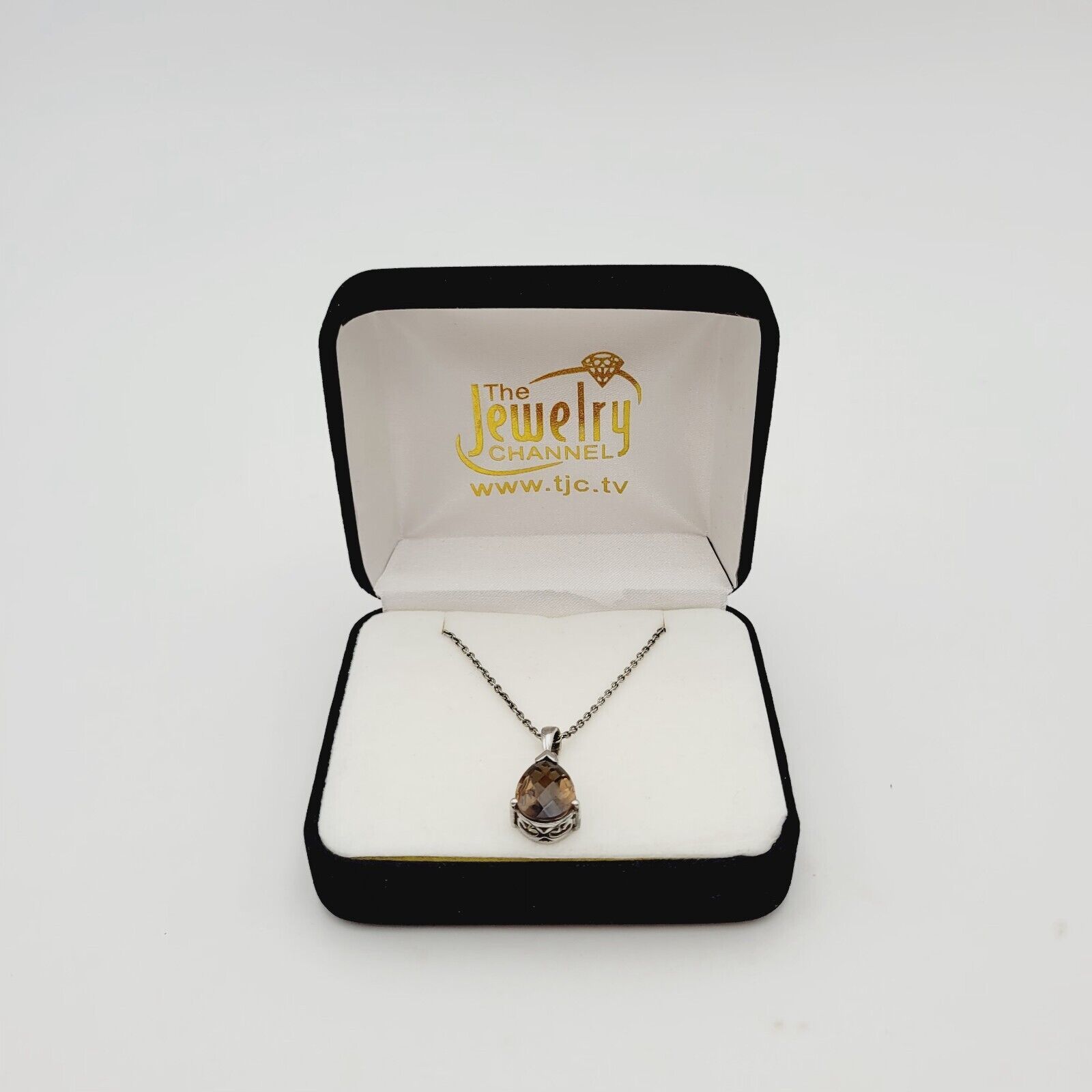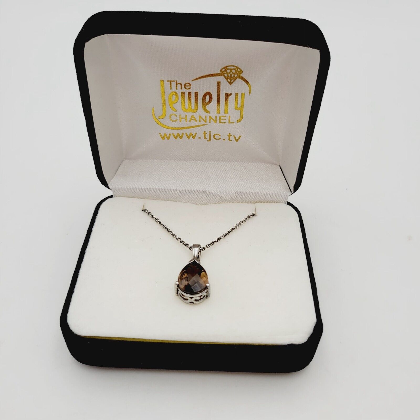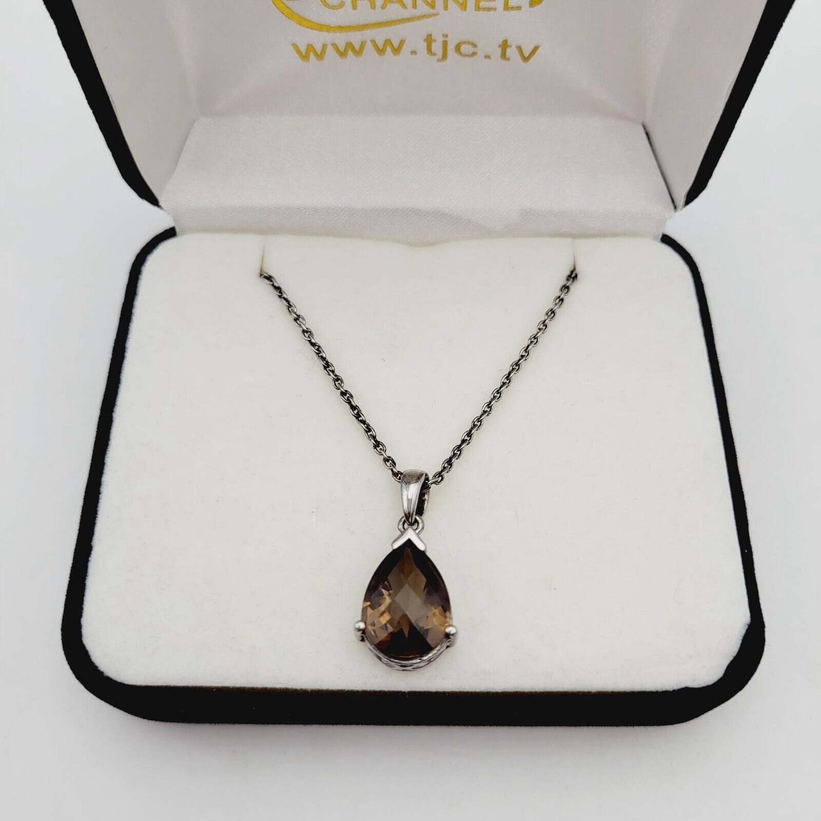 Vtg Sterling Silver Smoky Quartz (Pear 7.75 Ct) Pendant W/Chain Necklace