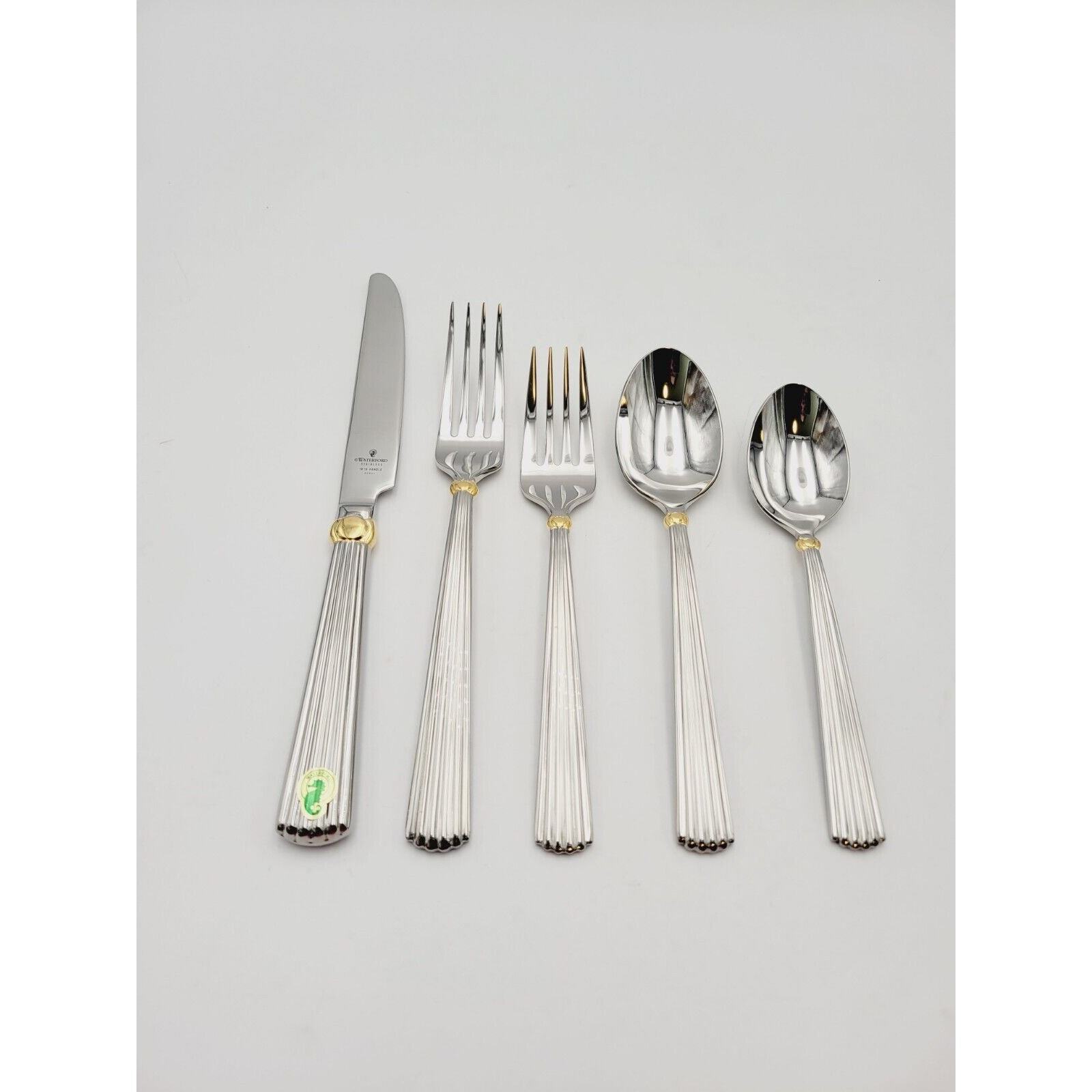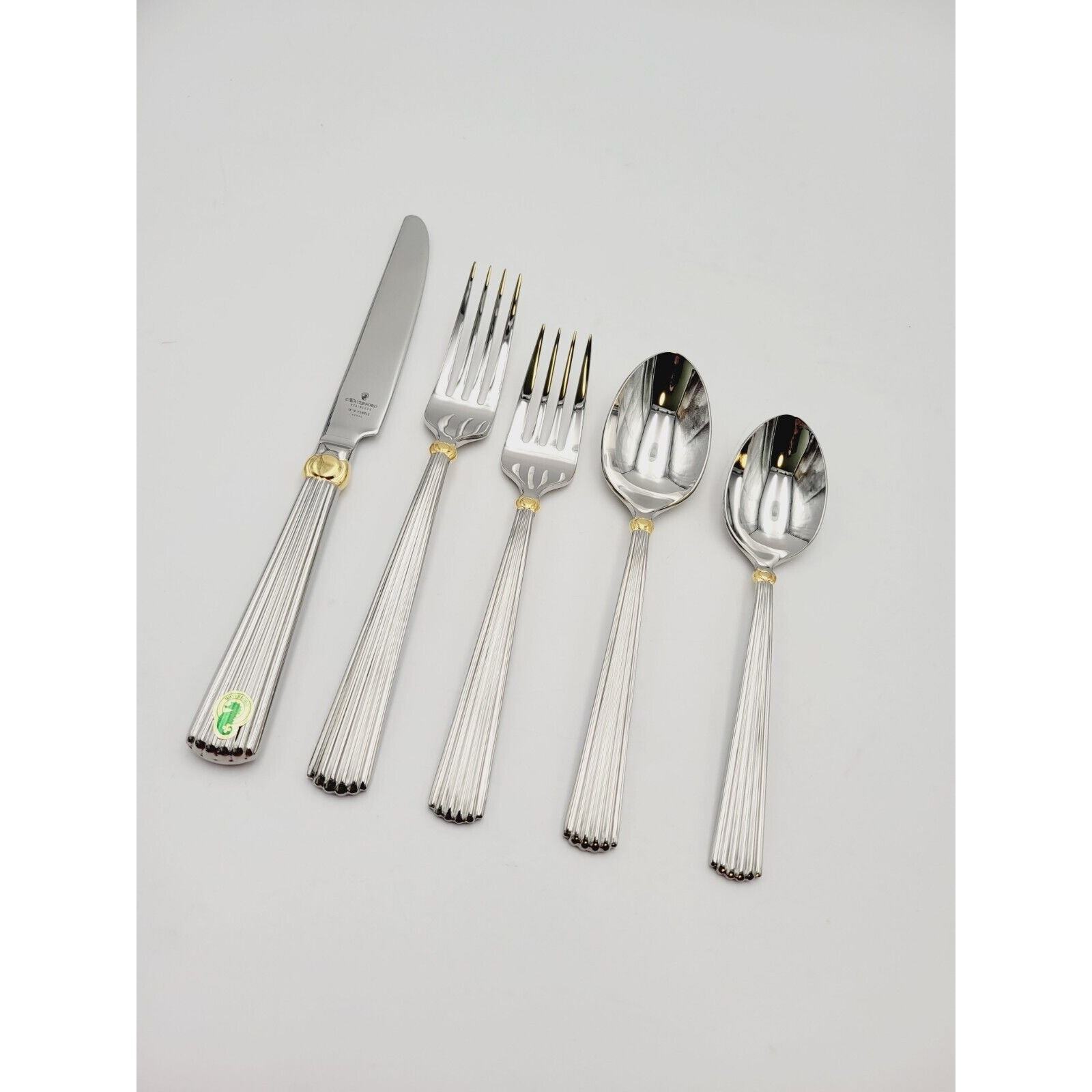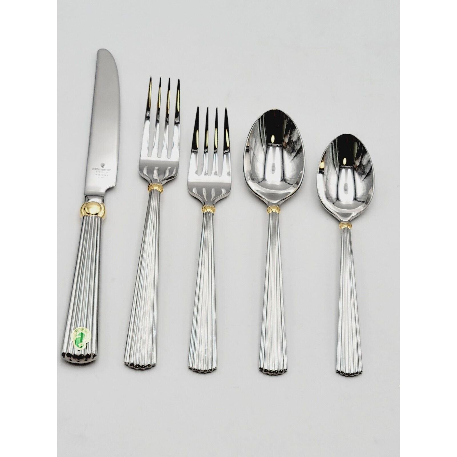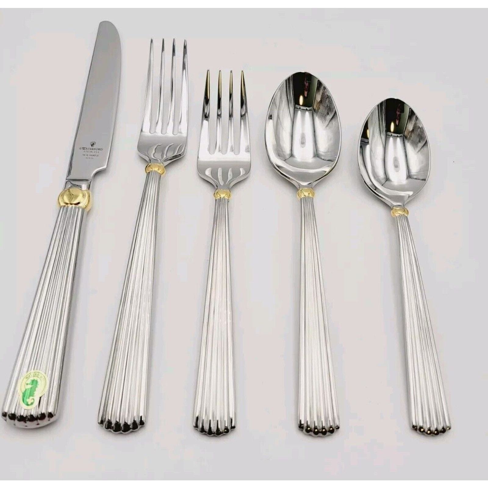 Waterford Carleton Flatware 18/10 Stainless Place Setting Gold Accent 5 Pcs