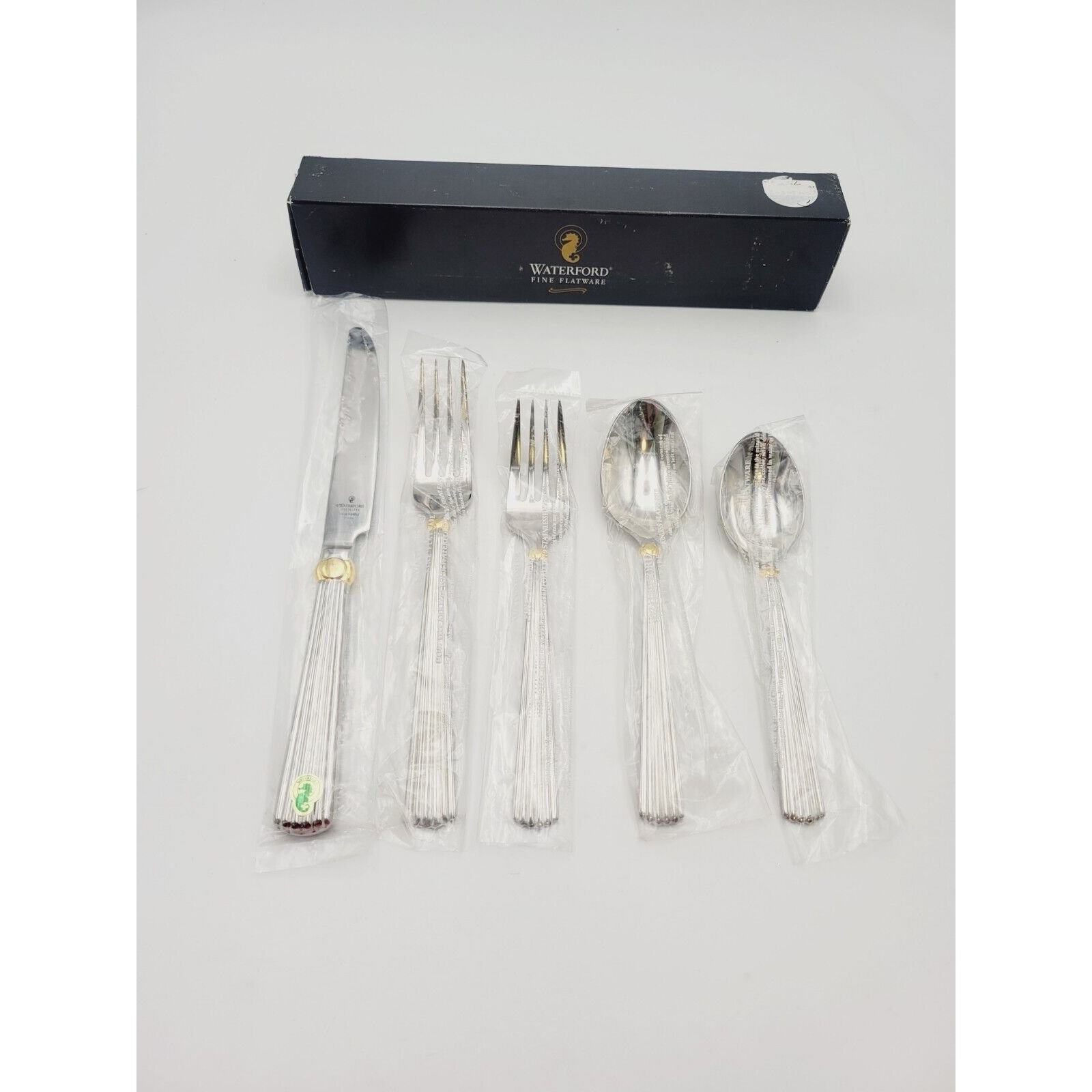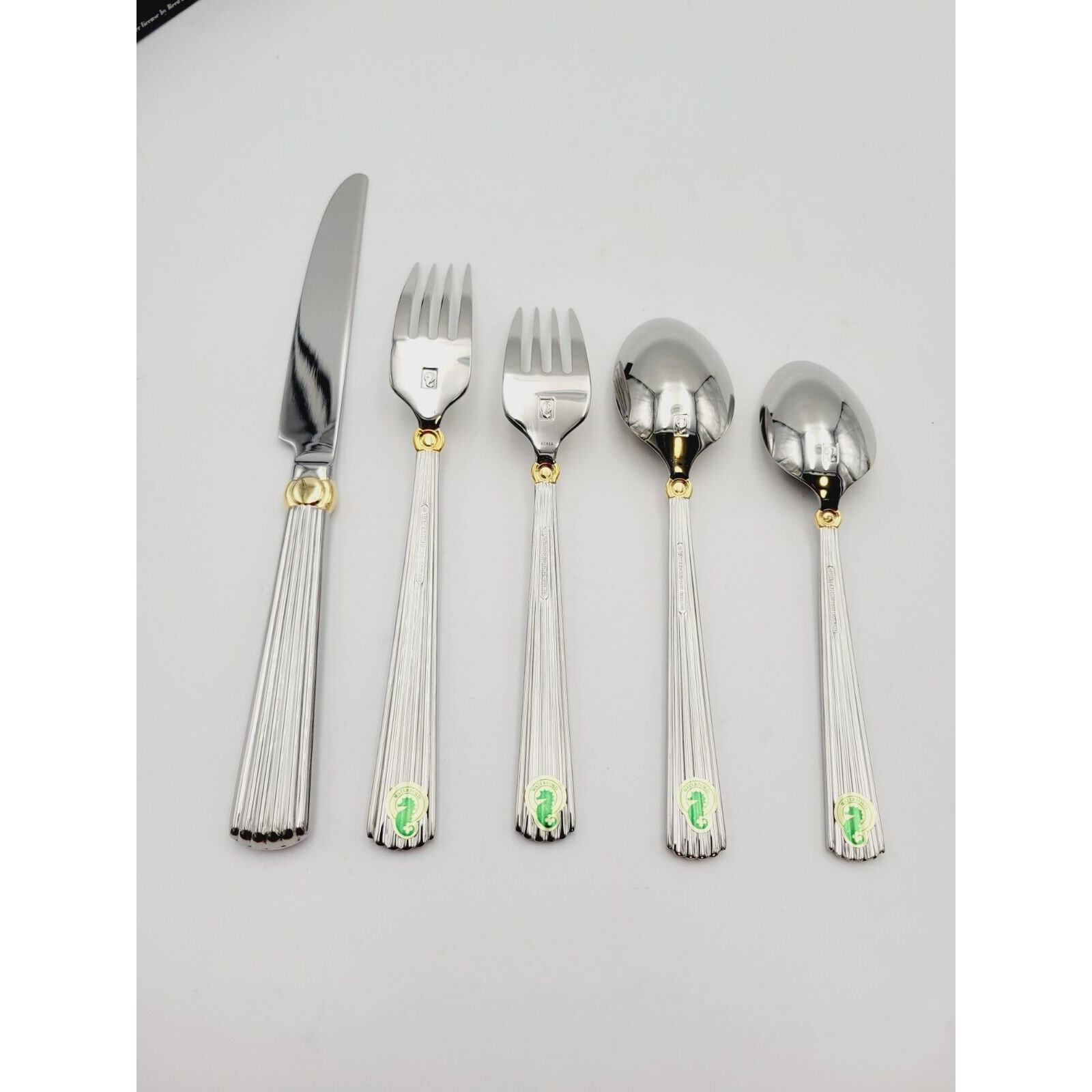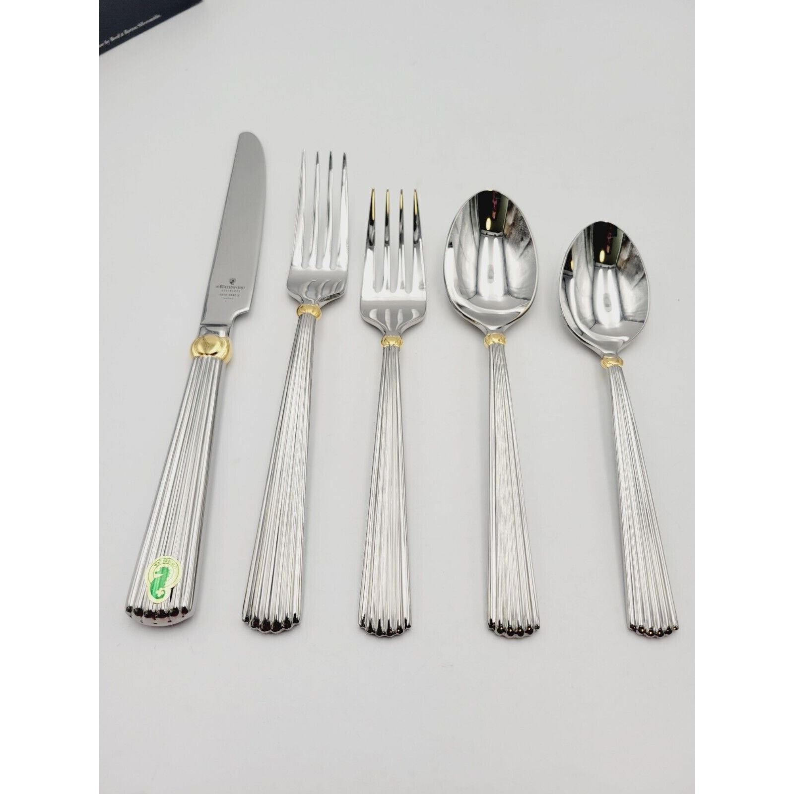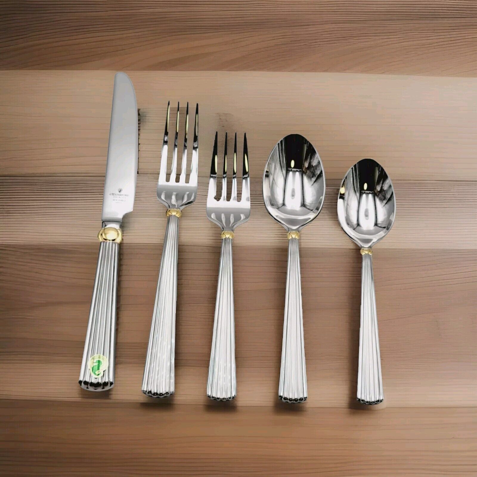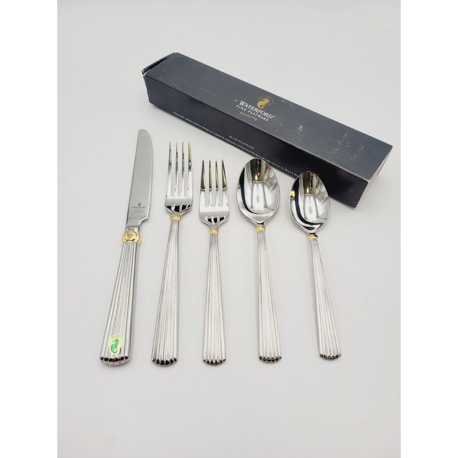 Waterford Carleton Flatware 18/10 Stainless Place Setting Gold Accent 5 Pcs