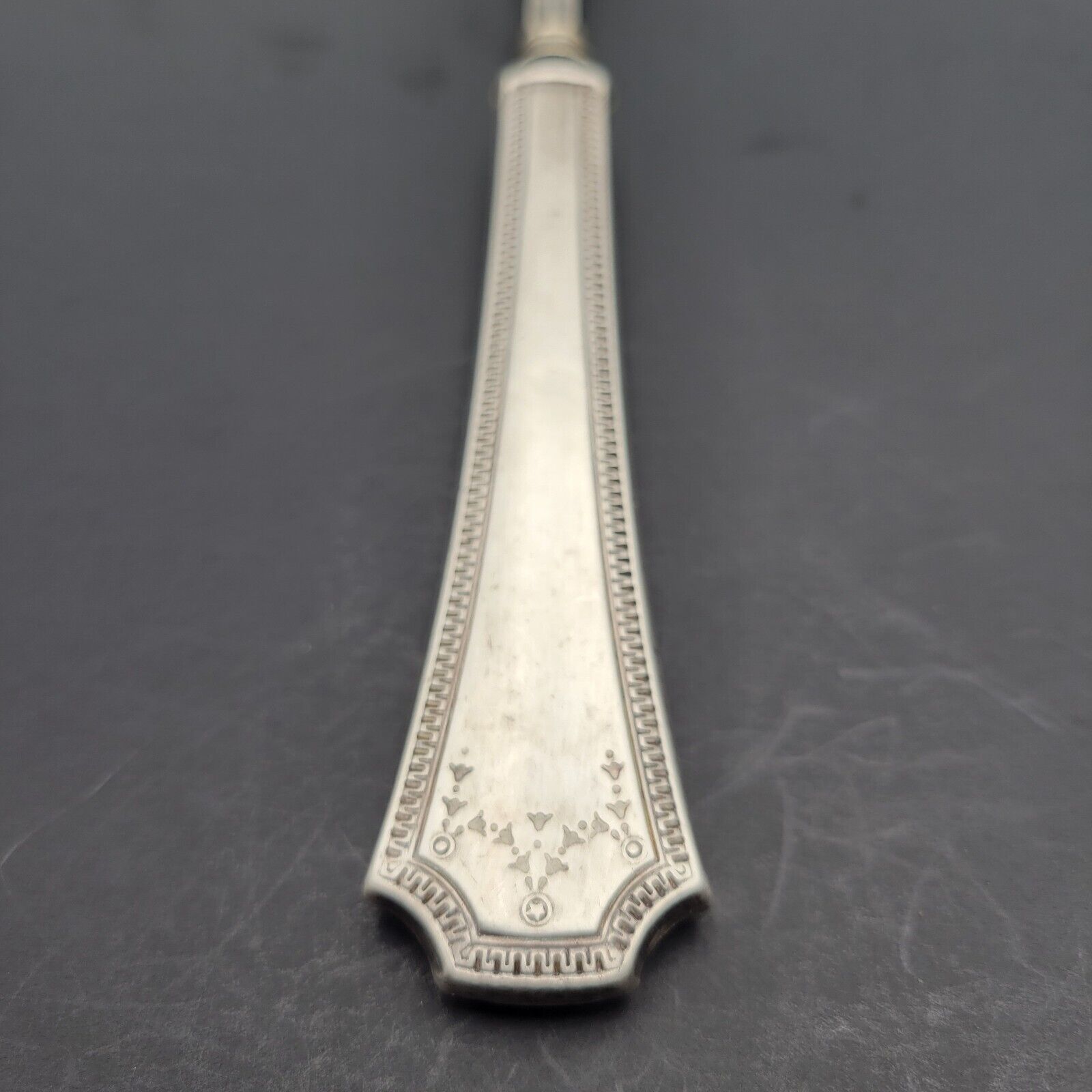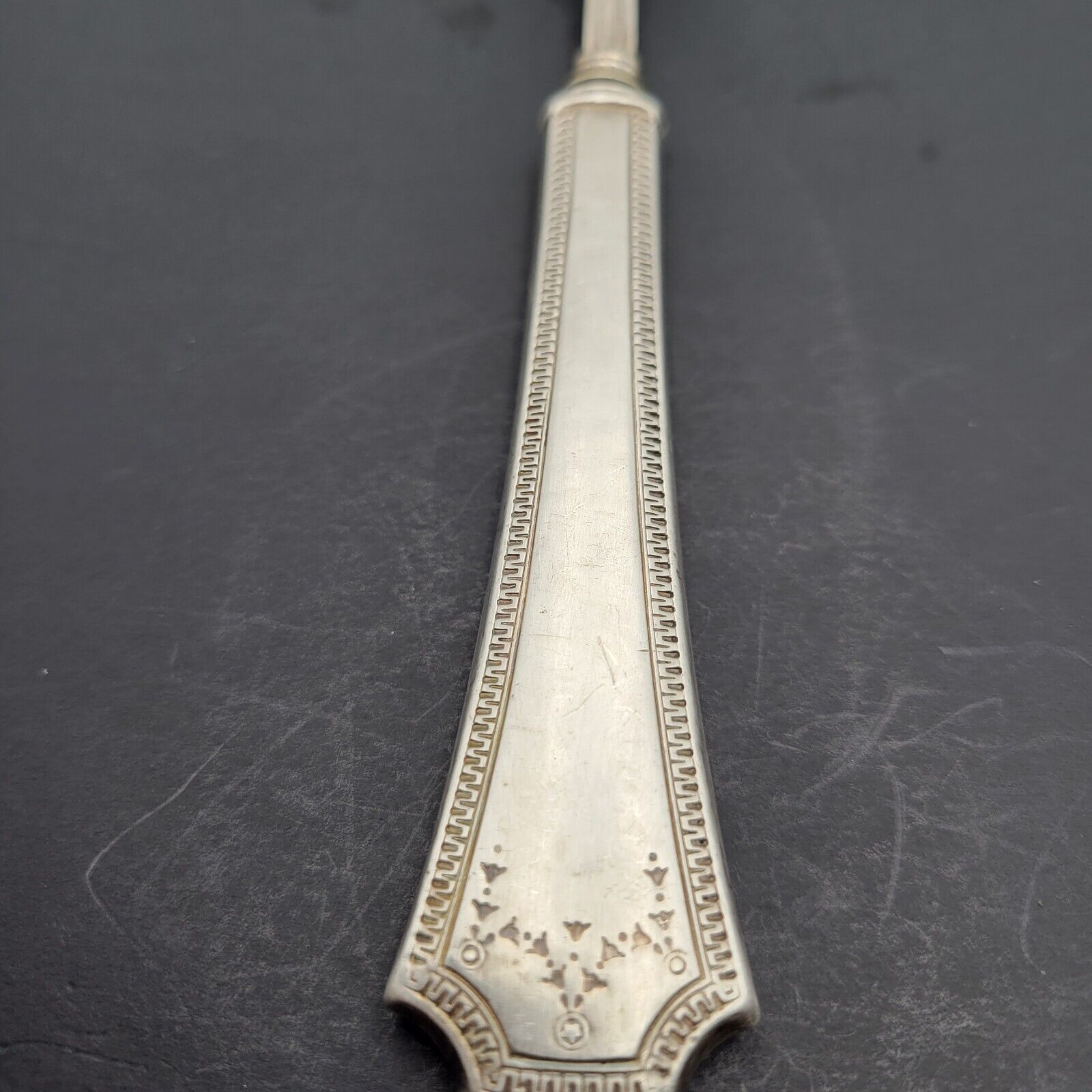 This sterling silver serving fork is the perfect addition to any collection. With an art deco style and unknown age, it is sure to be a conversation starter. Made of high-quality sterling silver, it is a durable and elegant serving piece. The fork weighs 61 grams and is perfect for any occasion. Whether you are hosting a formal dinner party or a casual get-together, this serving fork is sure to impress. Add it to your collection today.