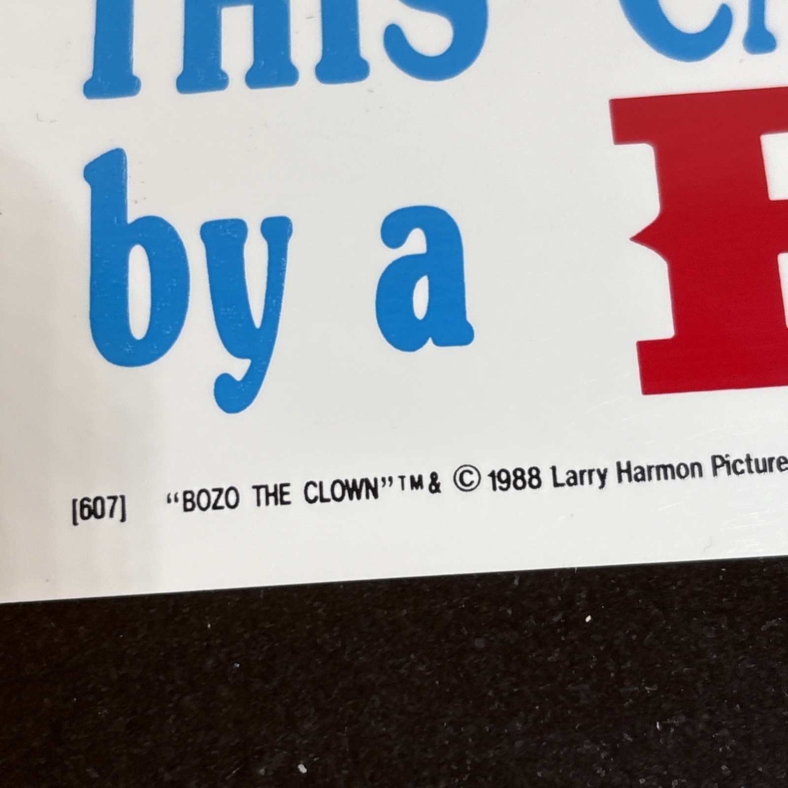Vintage BOZO the Clown Bumper Sticker 1988 Larry Harmon Pictures Corp Sign