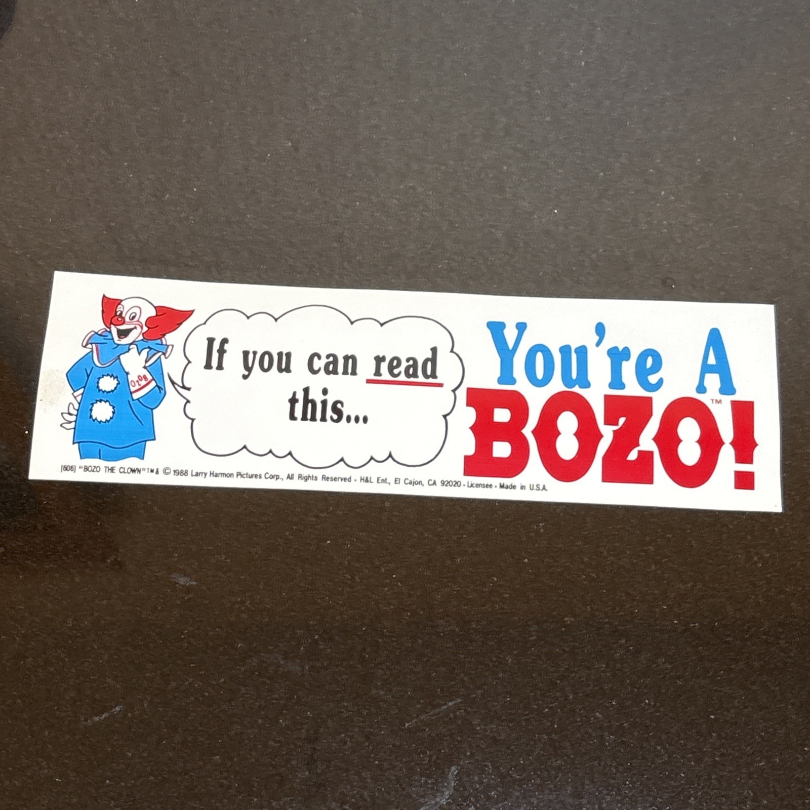 Vtg Bumper Sticker If You Can Read This Youre A Bozo Clown Original 1988 USA