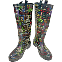 DKNY womens New York City Big Apple NYC Graffiti Tall Rain Boots Galoshes size 7